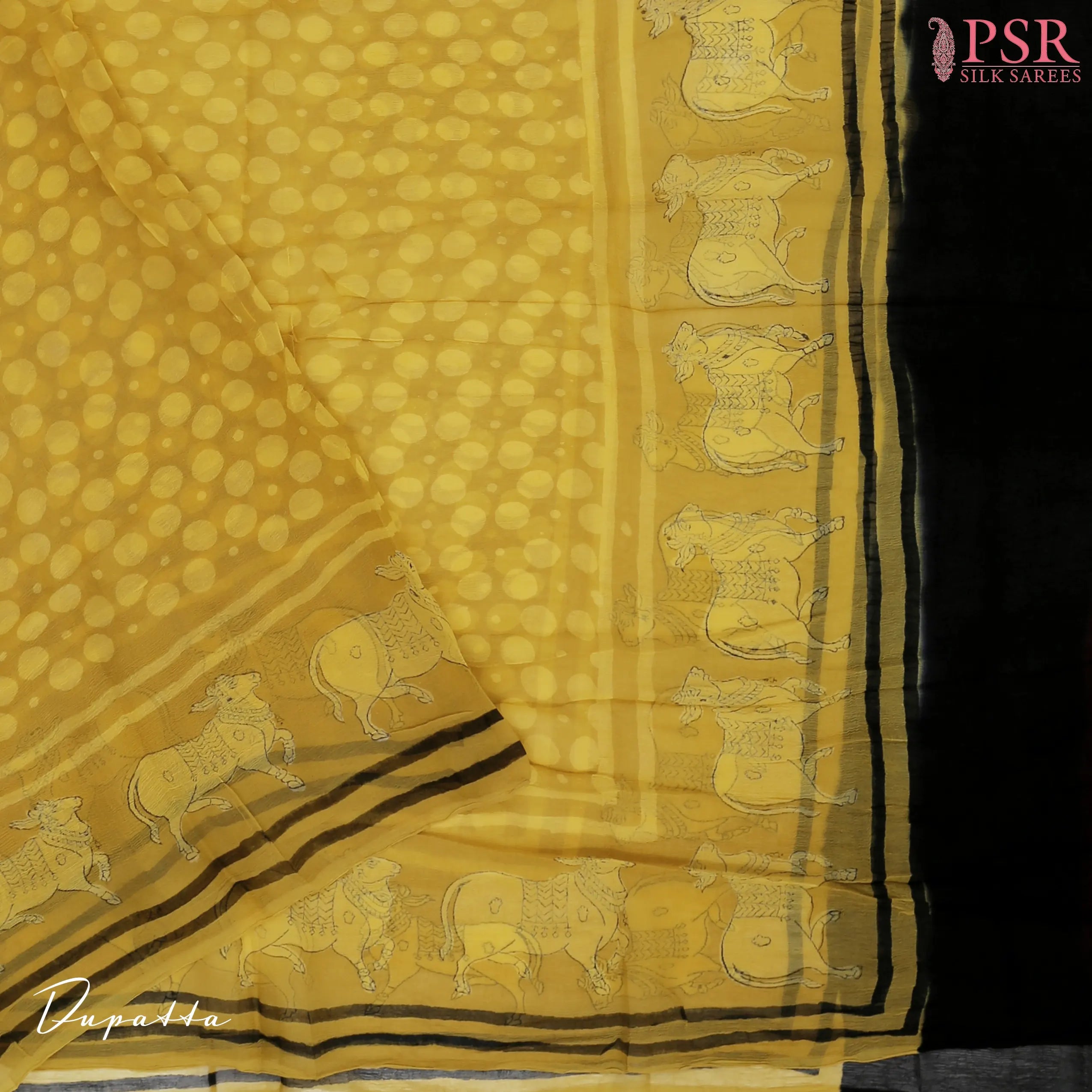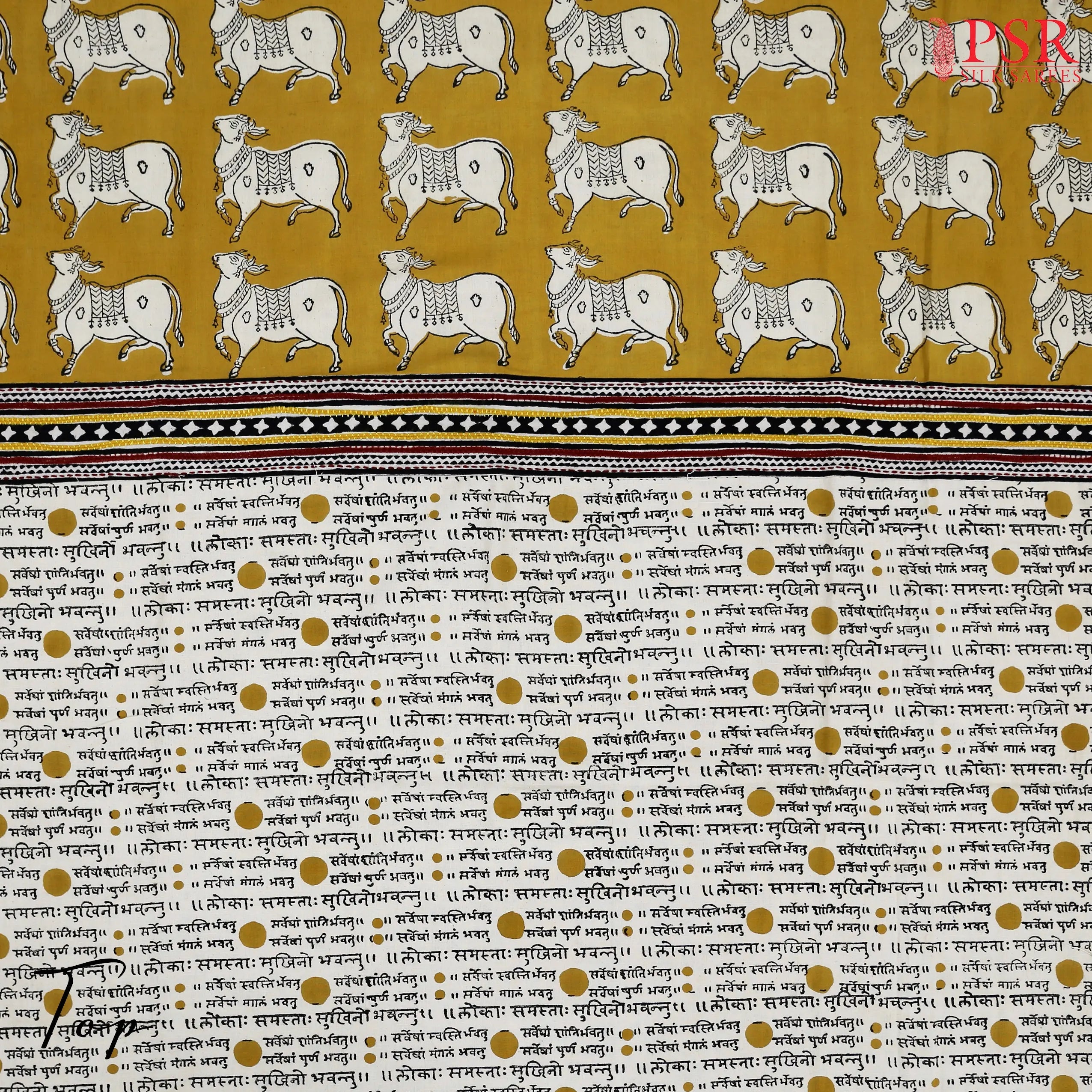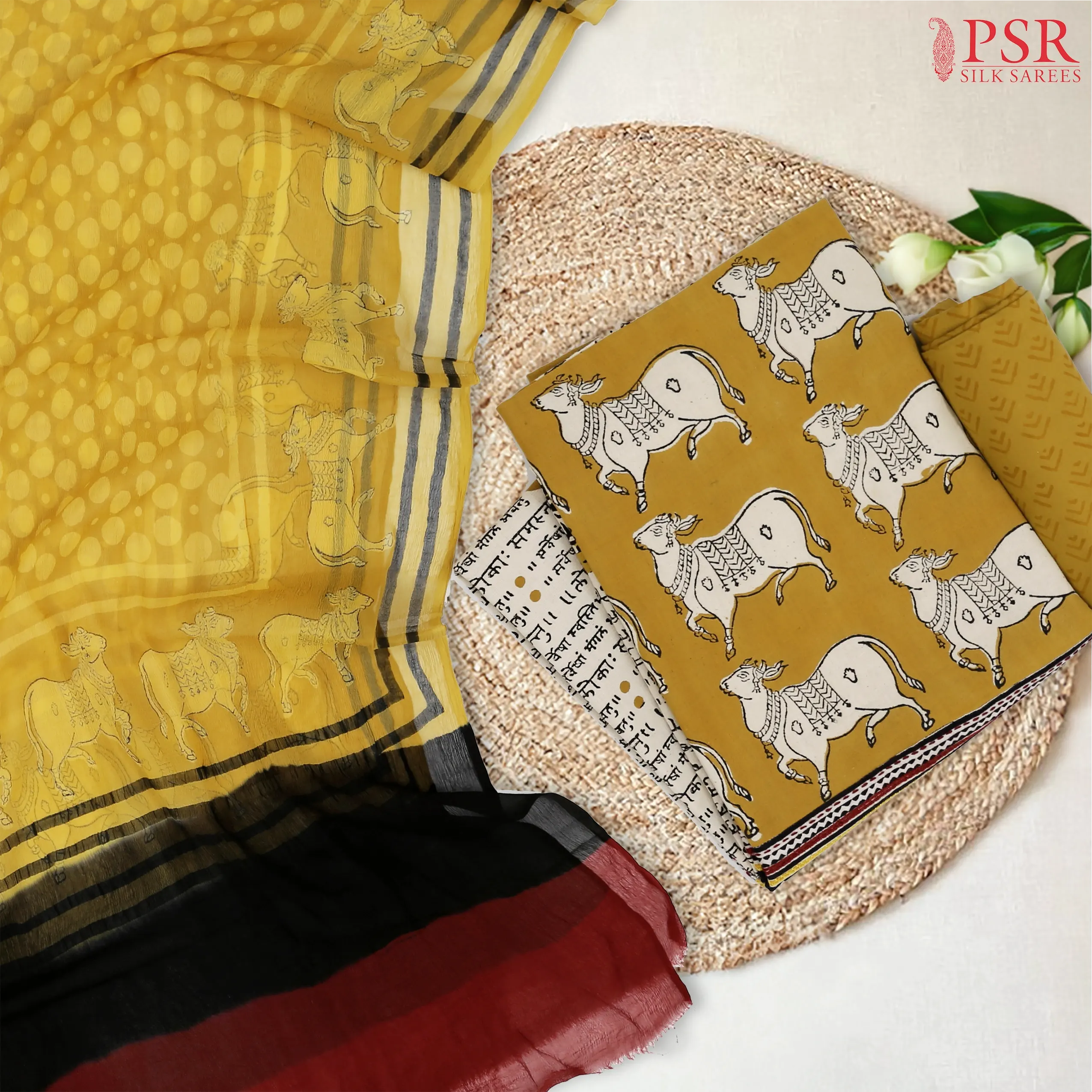 PSR Silks presents Beige pure cotton dress material with combination of Mustard color.