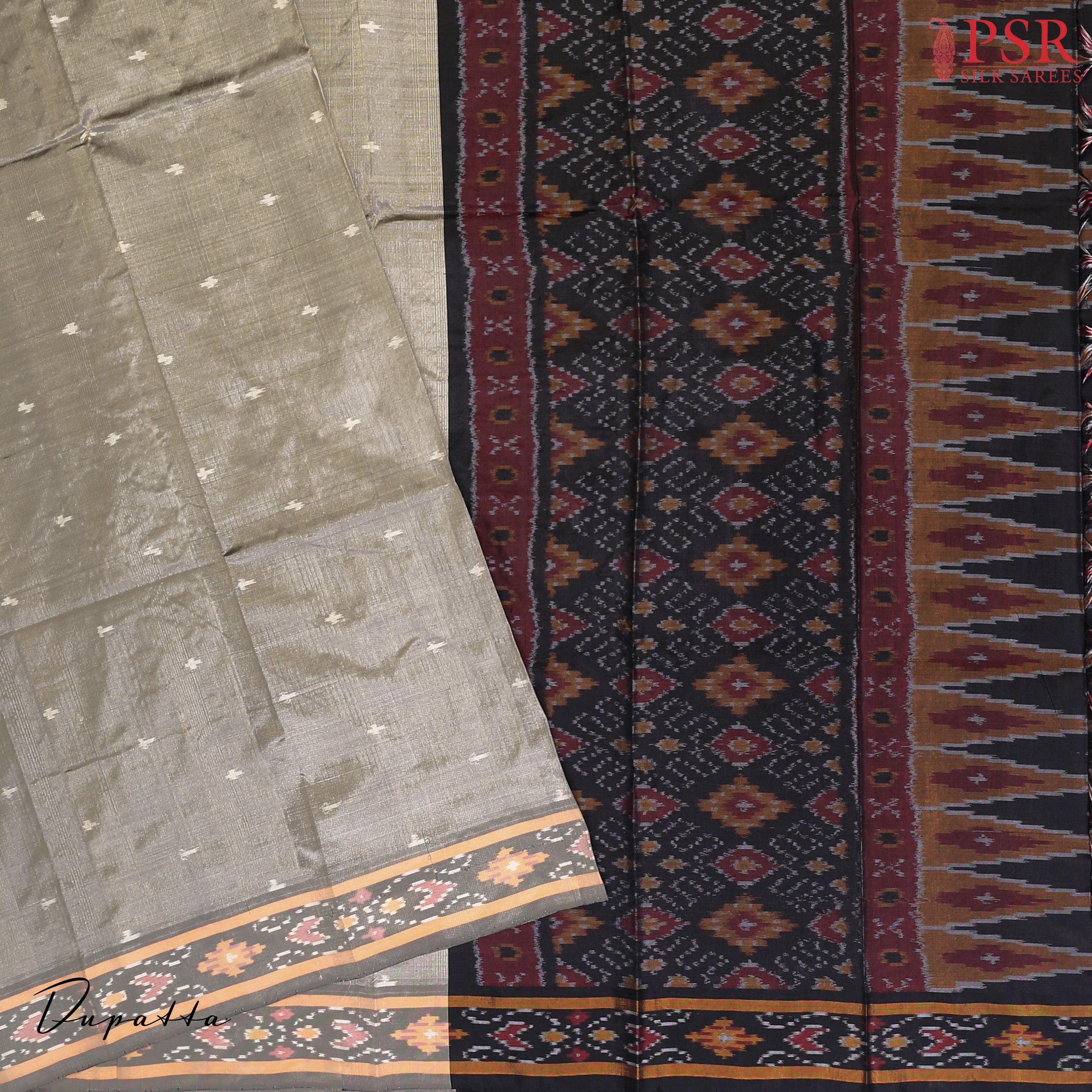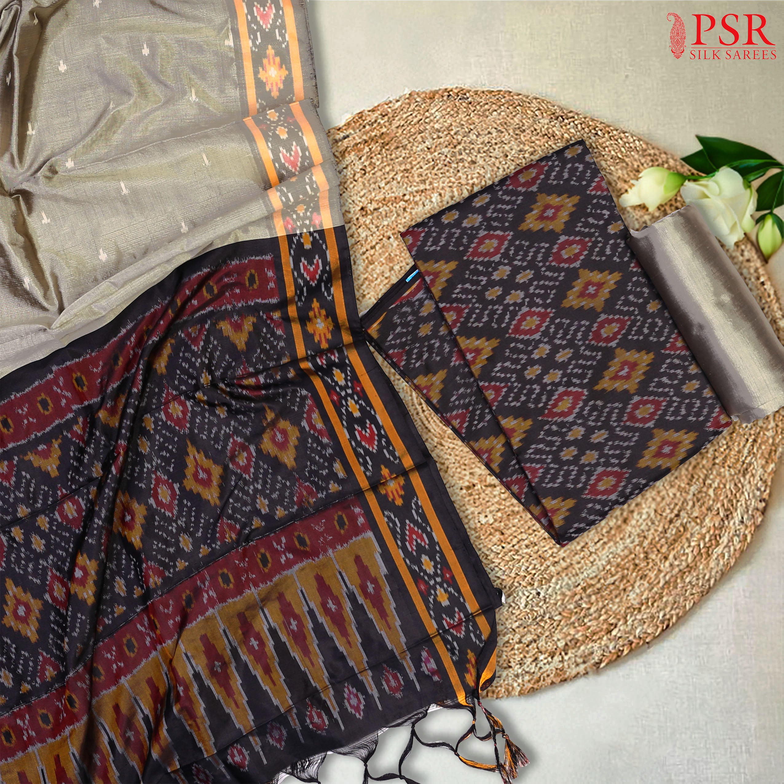 PSR Silks presents Black colored Pochampally Pure Silk dress material with combination of Grey color.