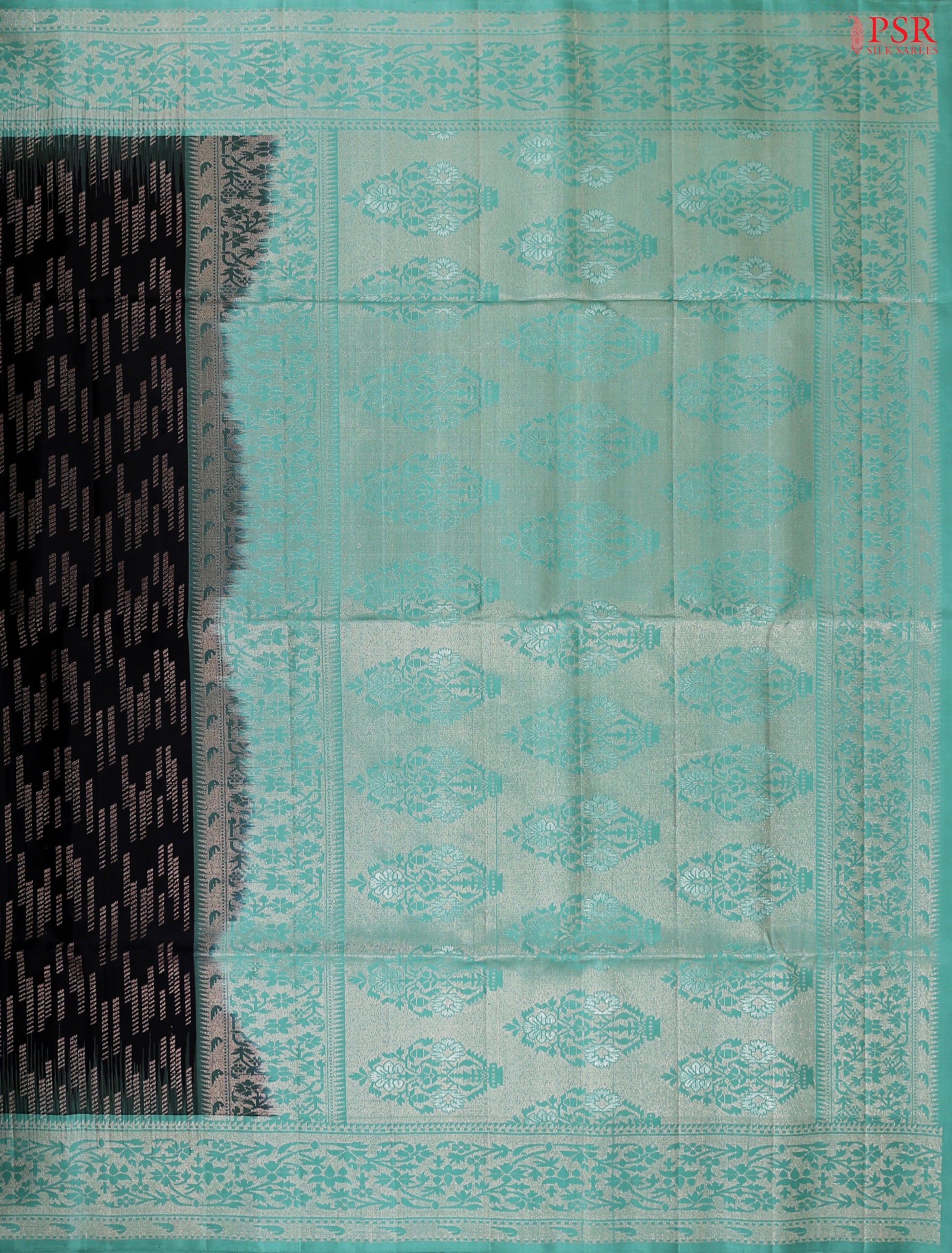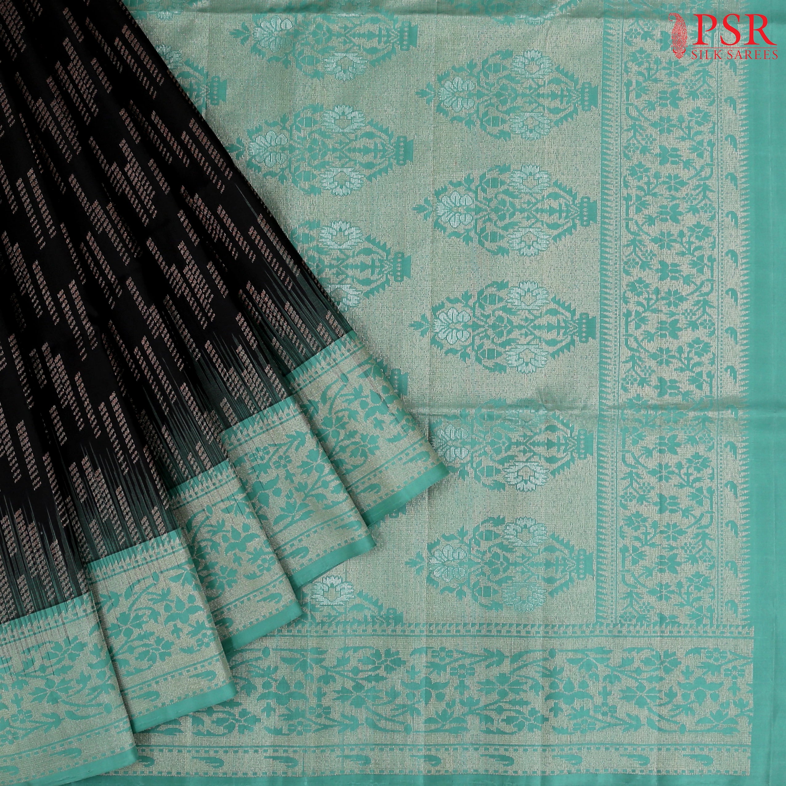 Elevate Your Style with PSR Silks' Black & Beauty Green Soft Silk Saree!