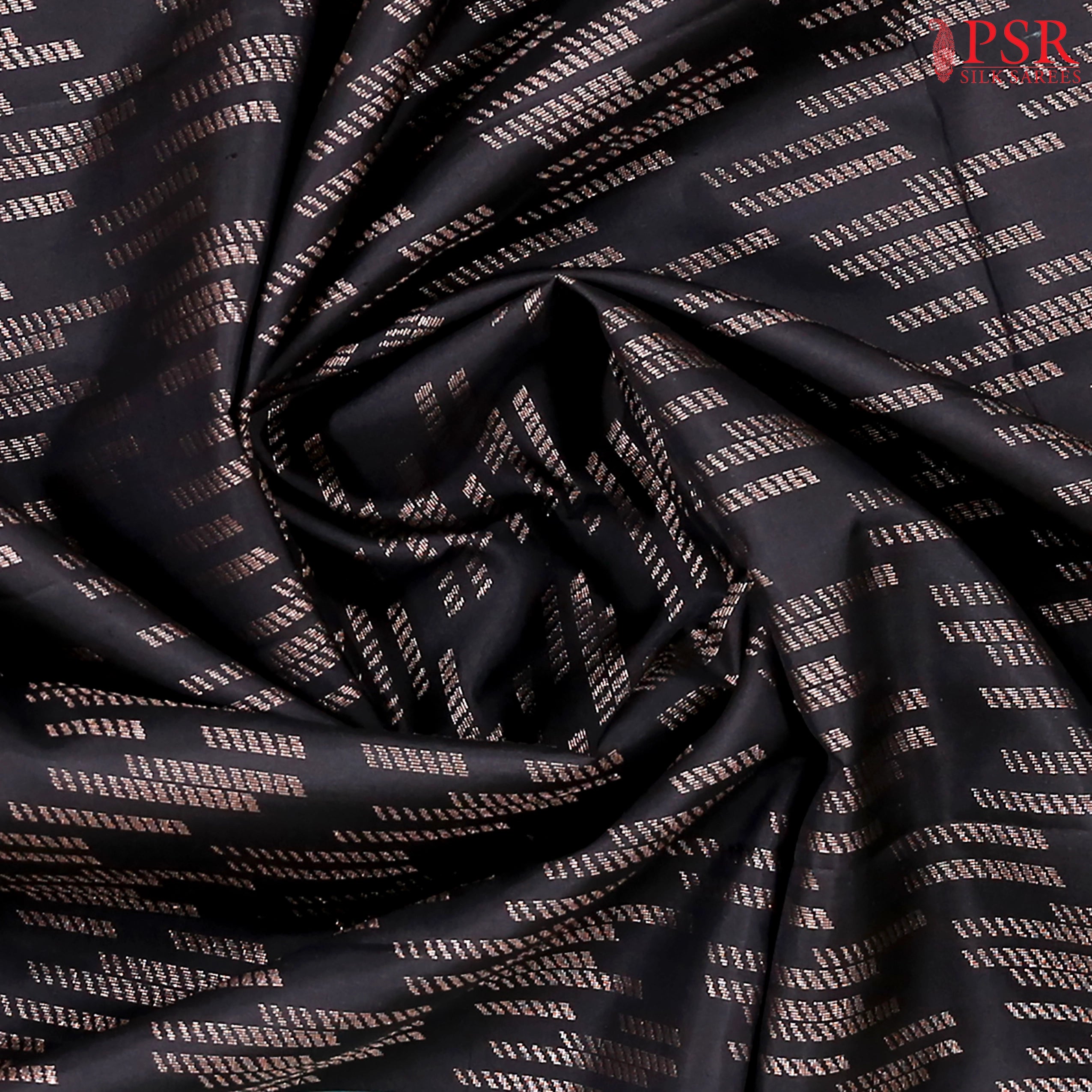 Make a striking statement with this luxurious Black Soft Silk Saree from PSR Silks, beautifully paired with a vibrant Beauty Green pallu. This elegant saree features an intricate copper zari designer jacquard pattern, offering a contemporary twist to traditional design. The contrasting pallu & border, adorned with rich copper zari work, adds an extra layer of sophistication. Complete the look with the sleek plain Beauty Green blouse, perfect for special occasions and festivities.