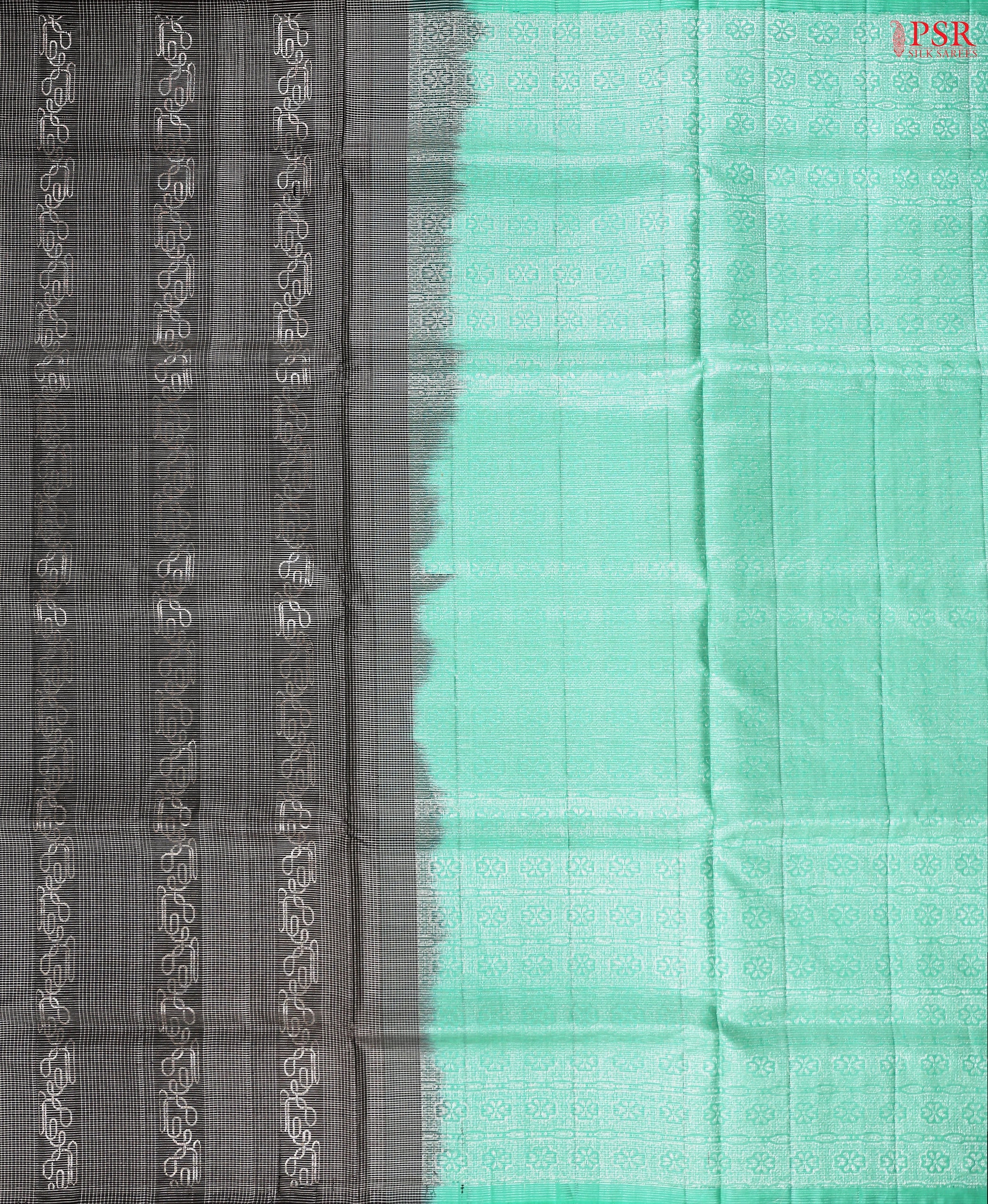 PSR Silk Sarees presents an elegant BlackĀ Soft Silk Saree paired with a vibrant Sea Green combination, reflecting a perfect balance of sophistication and grandeur.