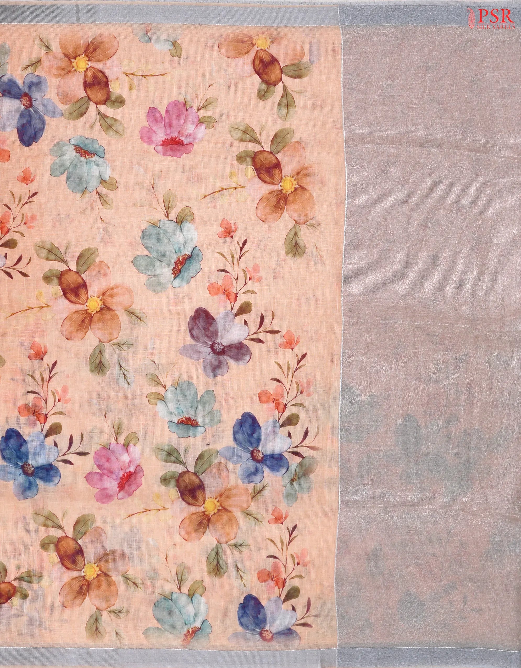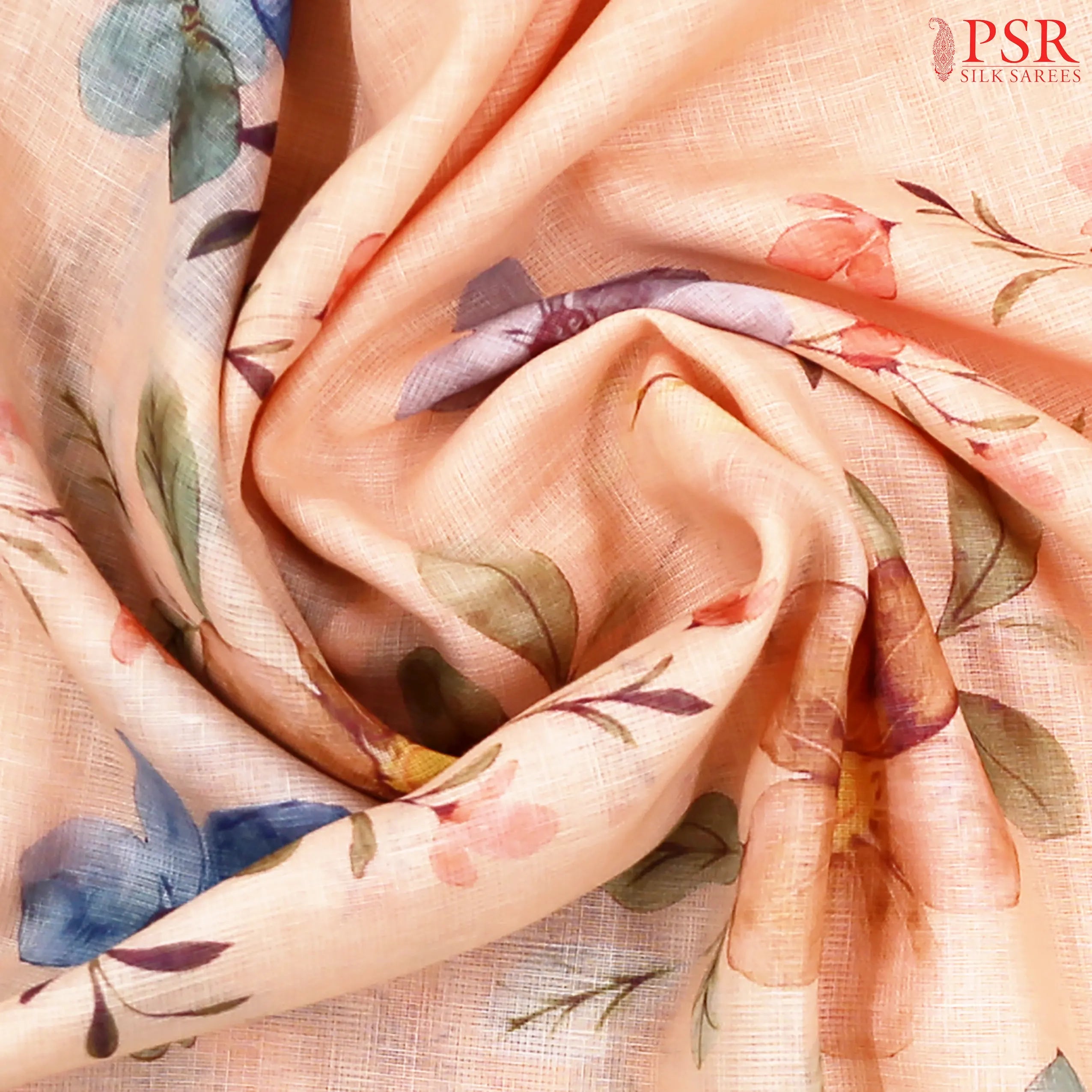 PSR Silk Sarees presents a Cantaloupe Peach colored Linen saree.