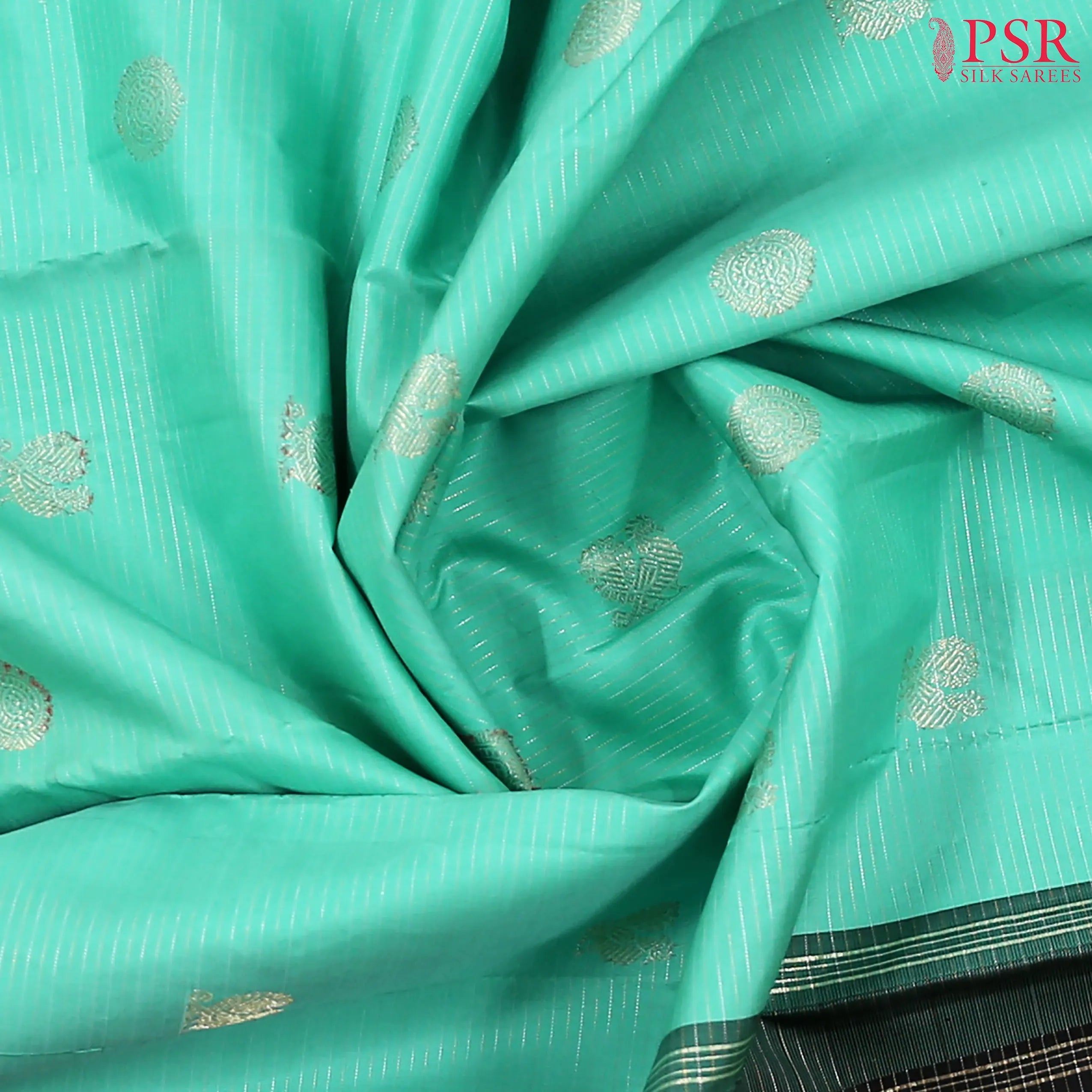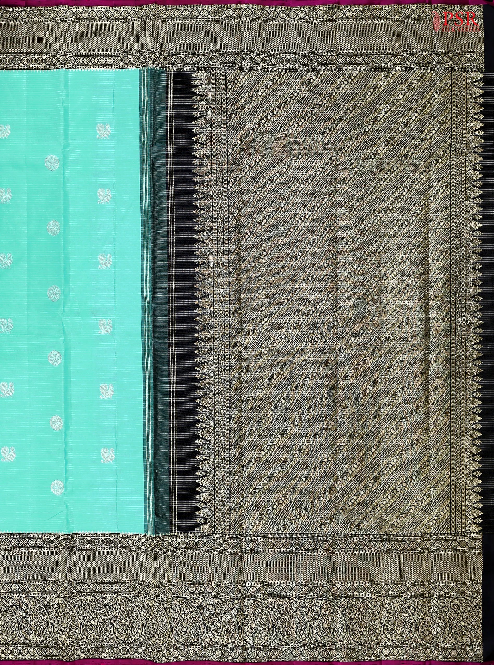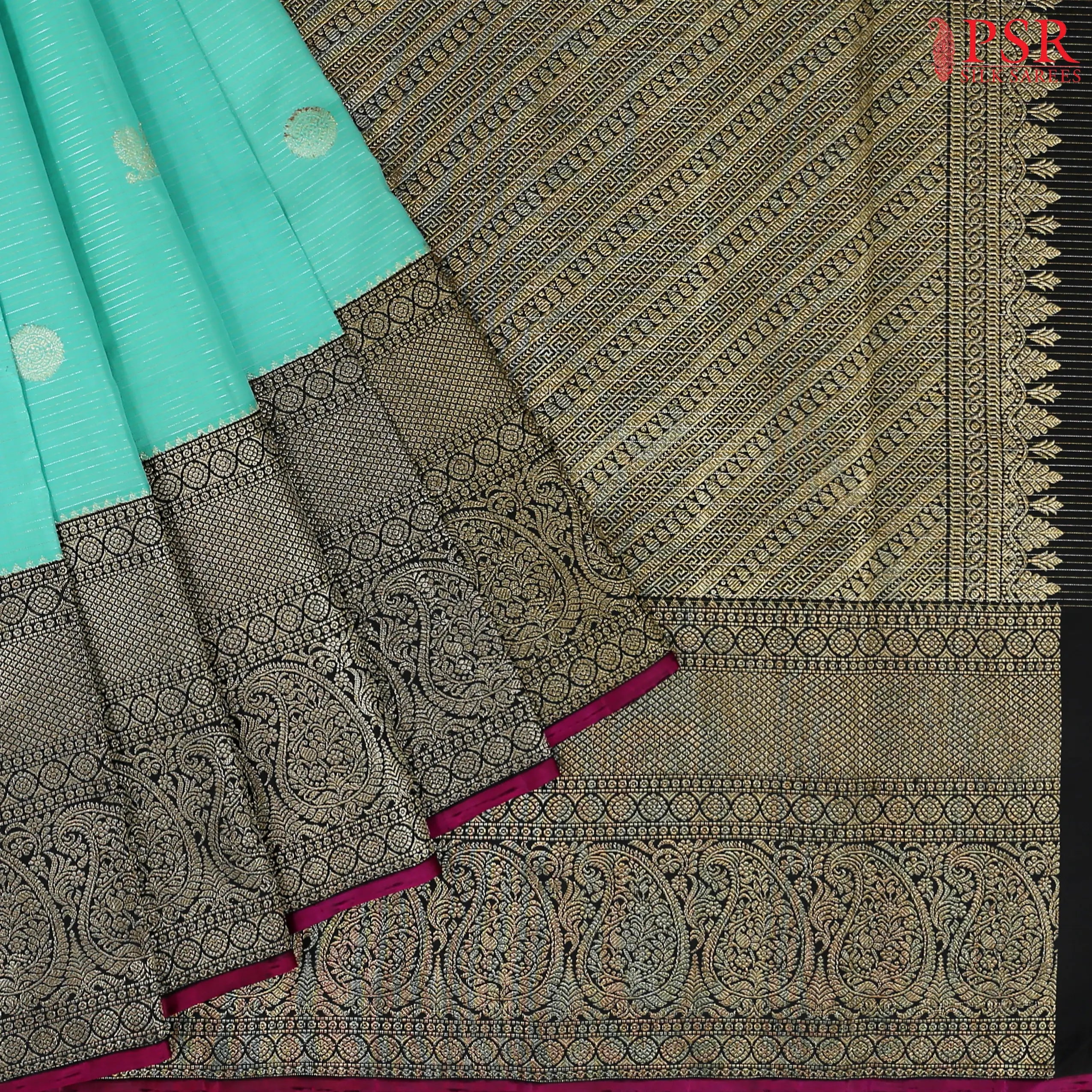 PSR Silk Sarees proudly presents an elegant Caribbean Green Kanchipuram Silk Saree from our exclusive "Shrestha Kanjivaram" collection, beautifully paired with a contrasting Black combination.