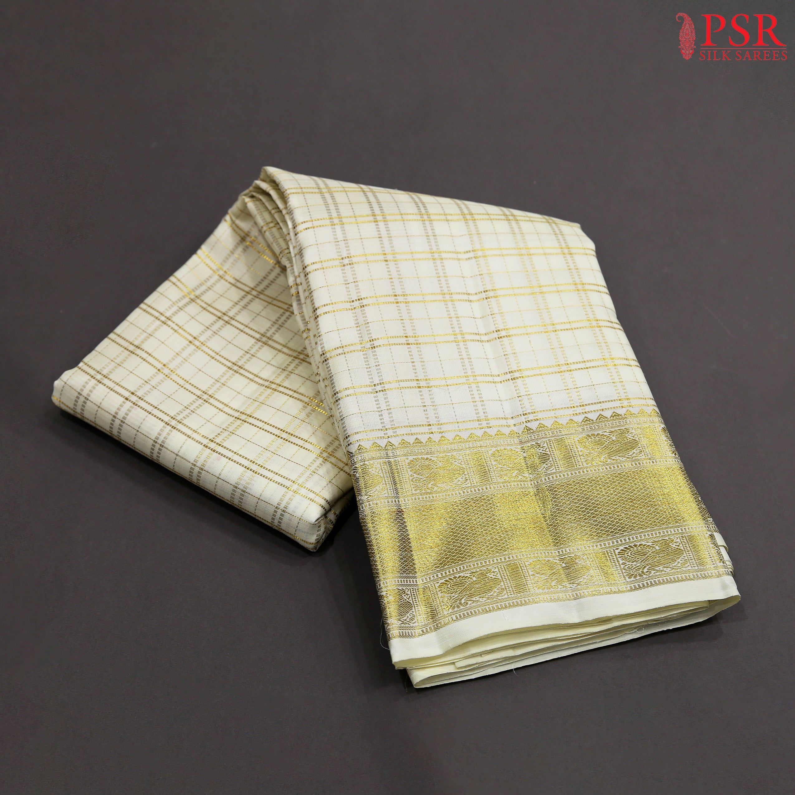 Plain Shirt & Dhoti With Zari Work Plaids Pattern & Border