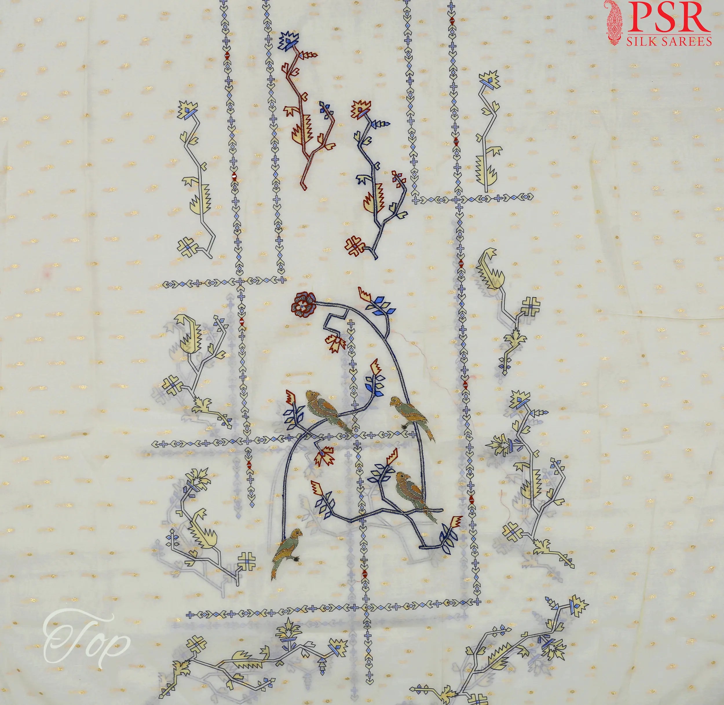 Small Zari Butti With Designer Prints & Floral Embroidery Work