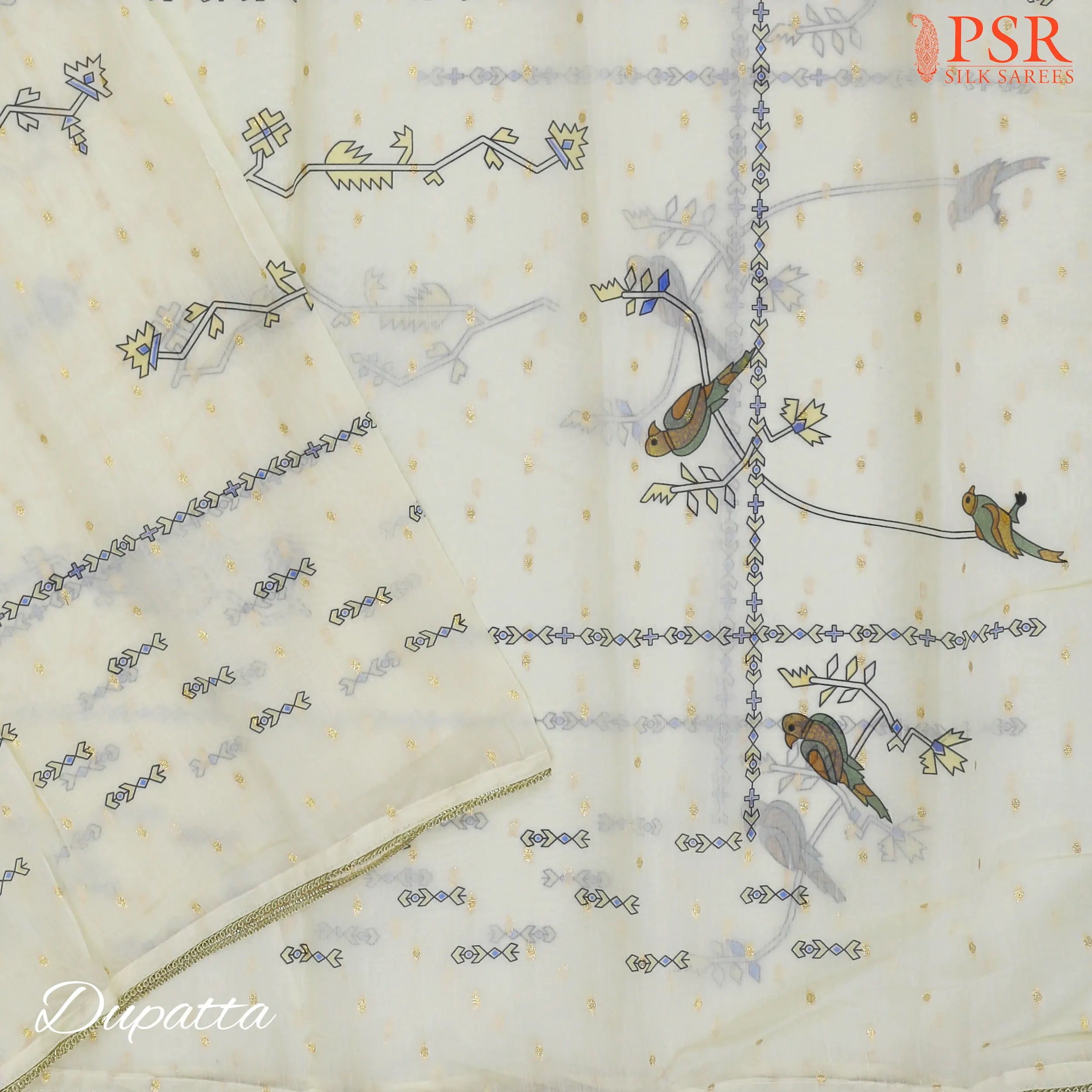 PSR Silks presents Cream Beige Silk Cotton Dress Material.