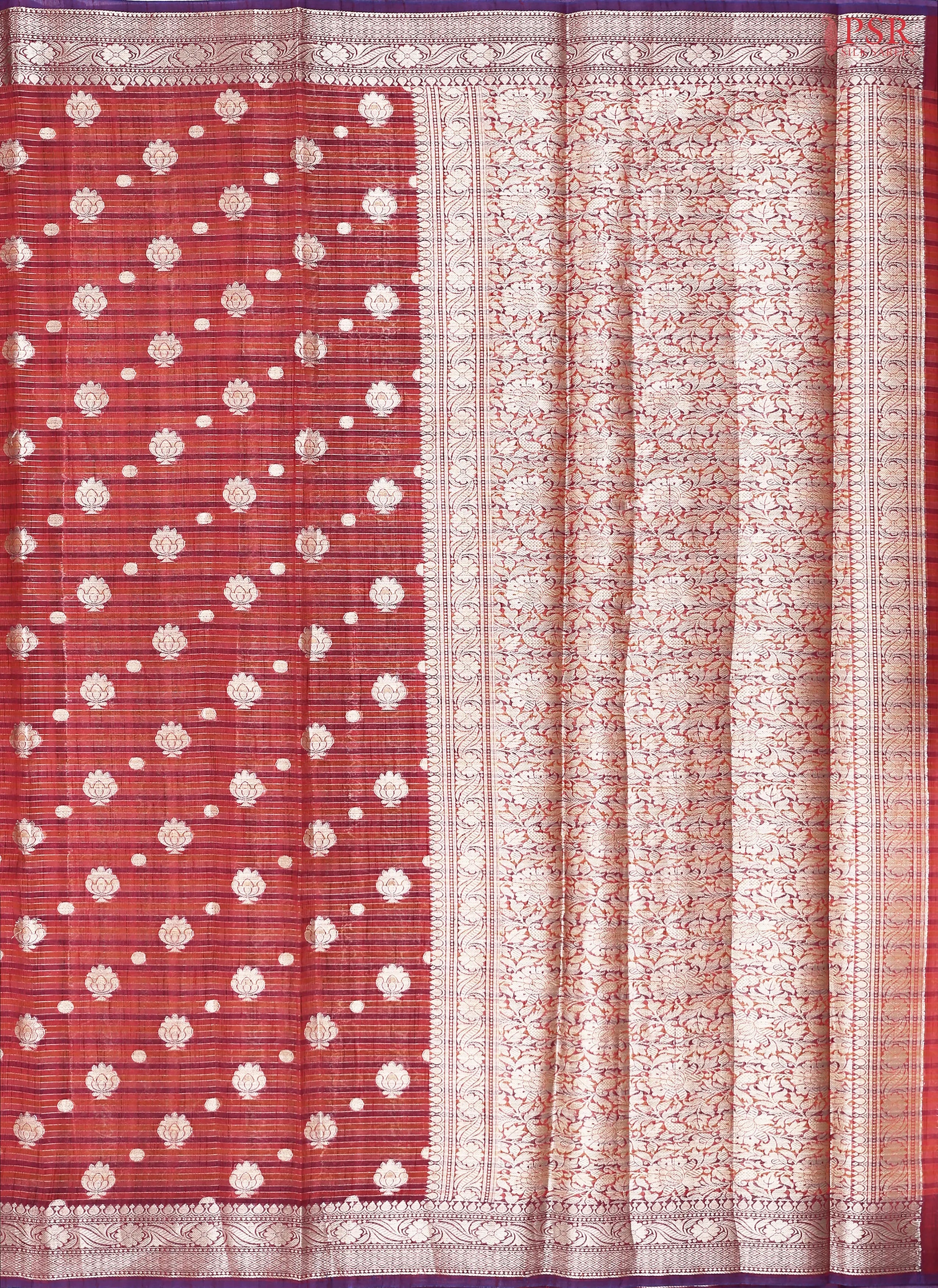 PSR Silk Sarees presents a Crimson colored Silk Cotton cut work saree.