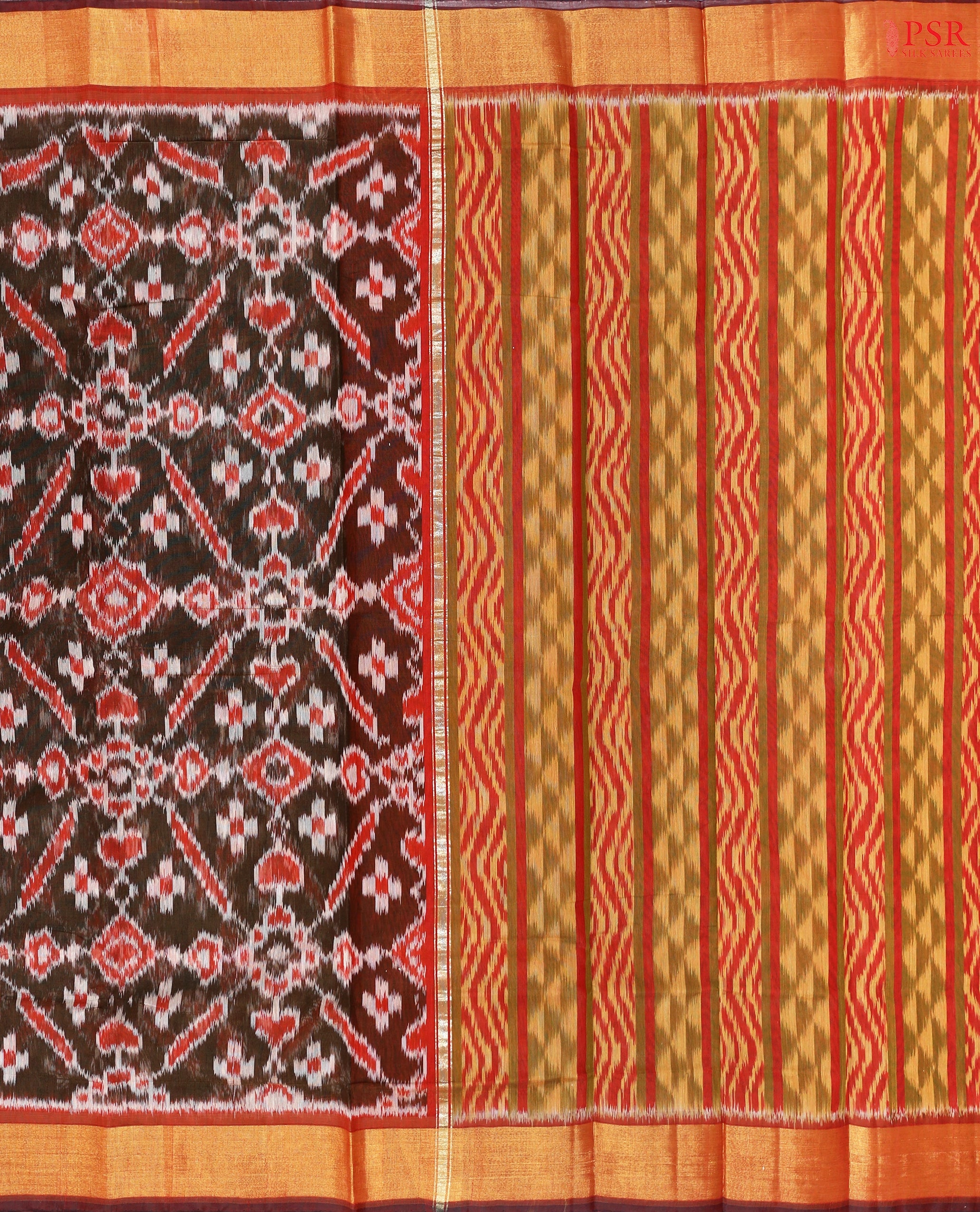 PSR Silk Sarees presents a Dark Brown colored Semi Patola Silk Cotton saree with combination of Red color.