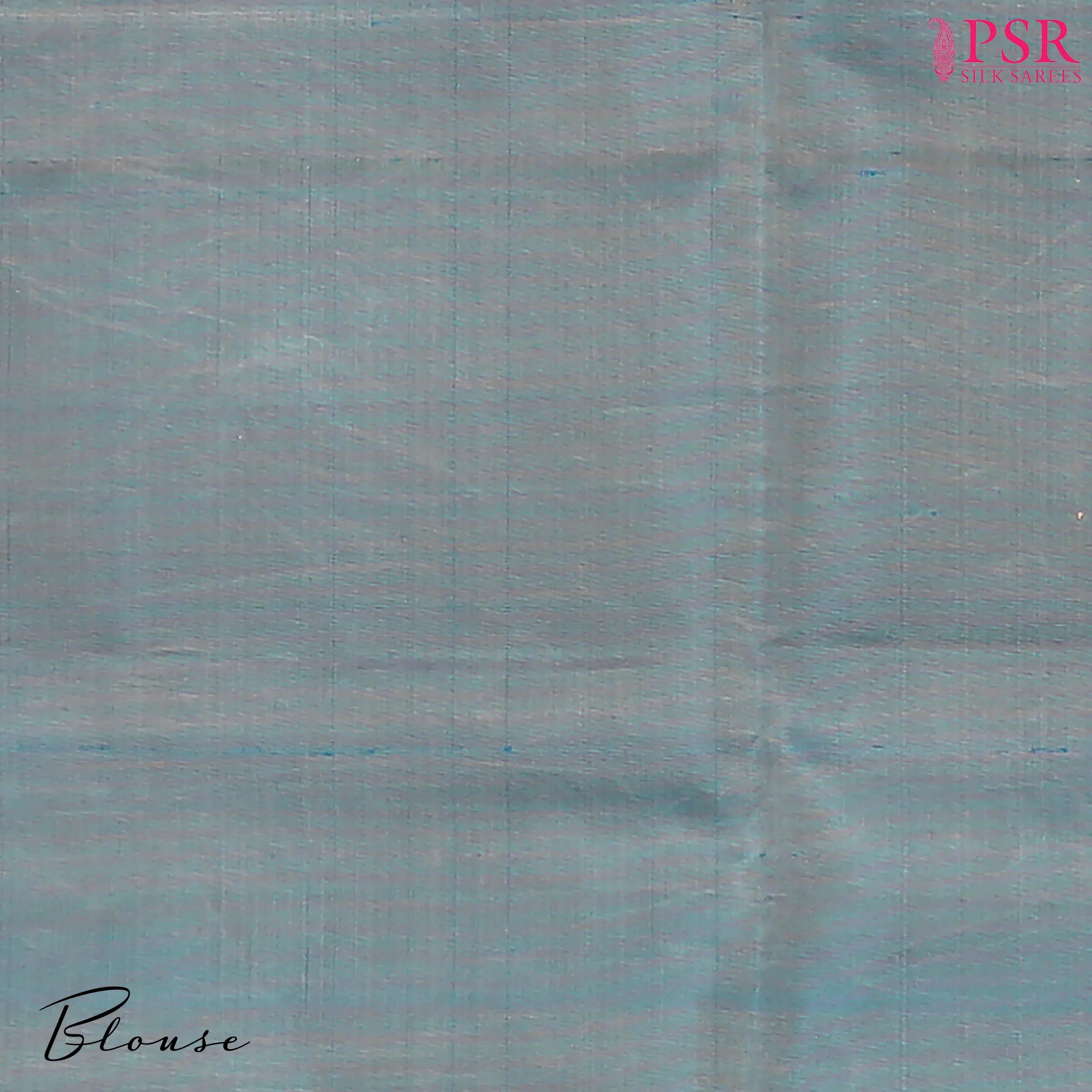 The saree features an impressive zari designer jacquard weave, giving it a refined and elegant texture. It is beautifully complemented by a Silver Grey pallu and border adorned with matching zari jacquard work. Completing the ensemble is a plain Silver Grey blouse, adding a touch of subtle sophistication.
