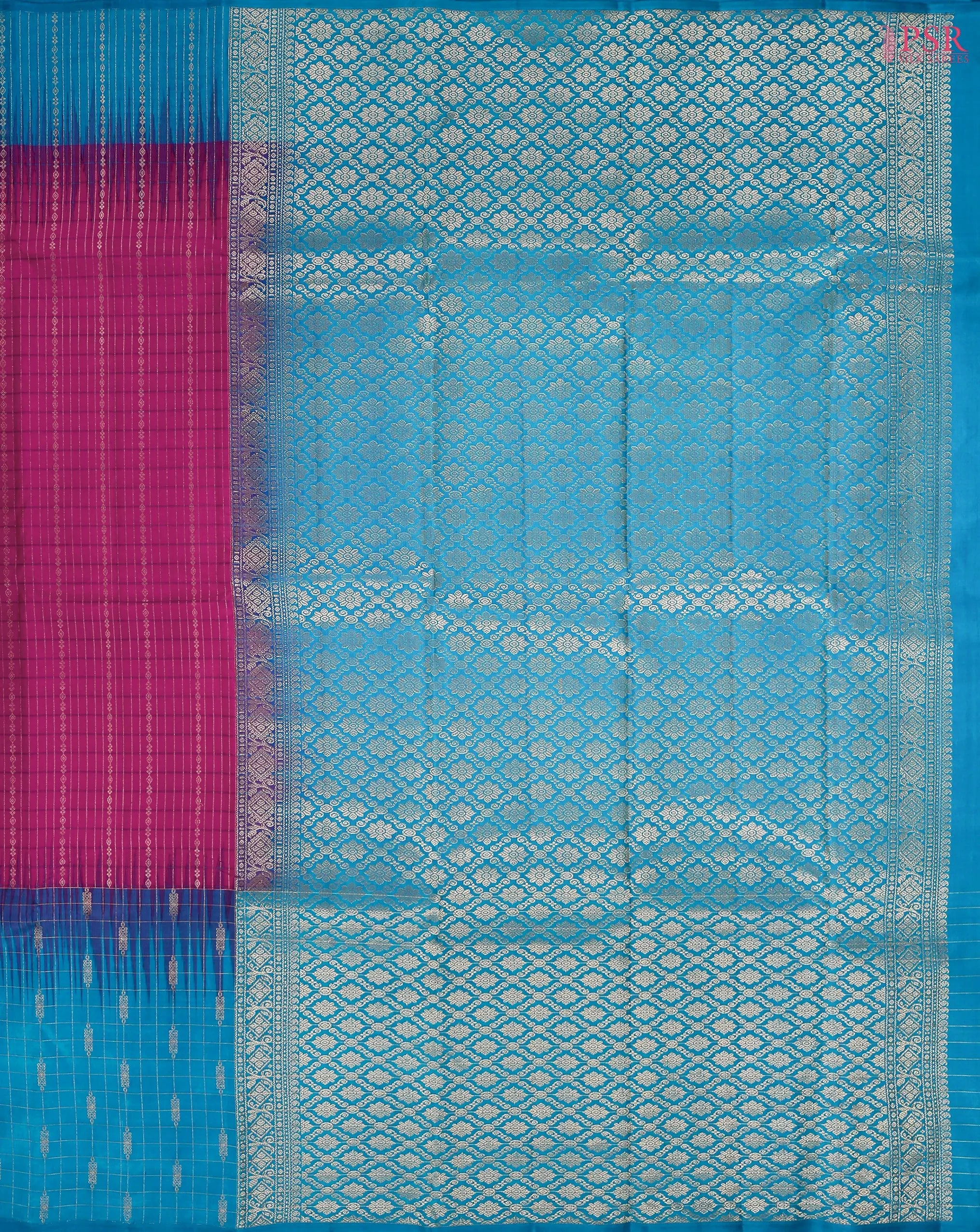 PSR Silk Sarees presents a Dark Magenta Pink colored Fancy Kanchipuram Silk with contrasting combination of Peacock Blue color.