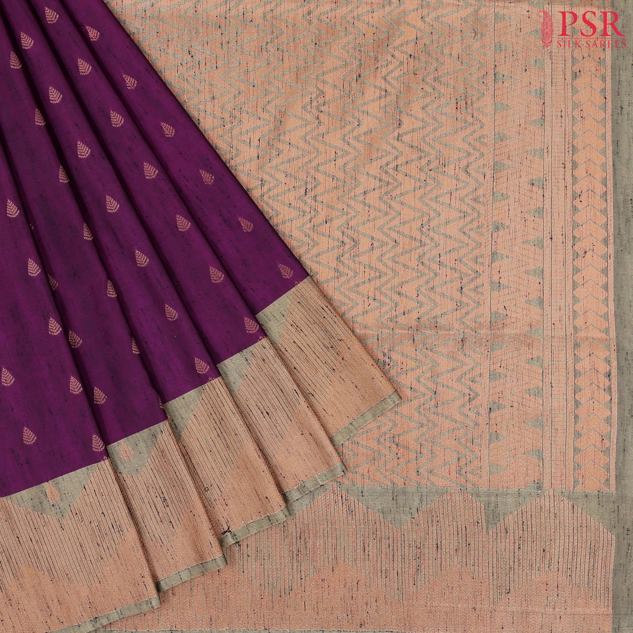 PSR Silk Sarees presents a Dark Purple Jute Art Silk Saree with combinaton of Dark Taupe  color.