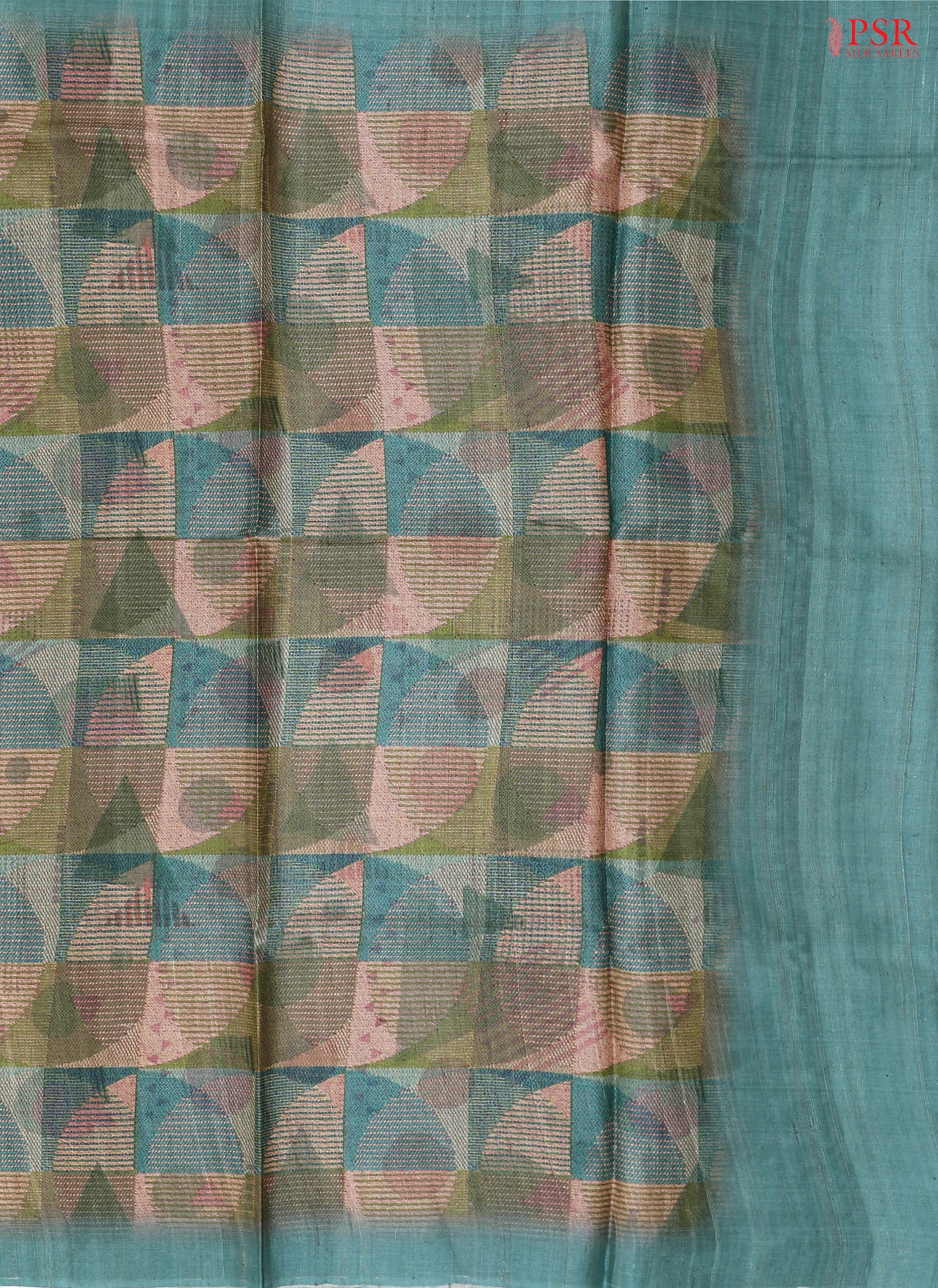 Make a bold contemporary statement with PSR Silk Sarees' Dark Turquoise & Olive Kadhi Tussar Silk Saree.