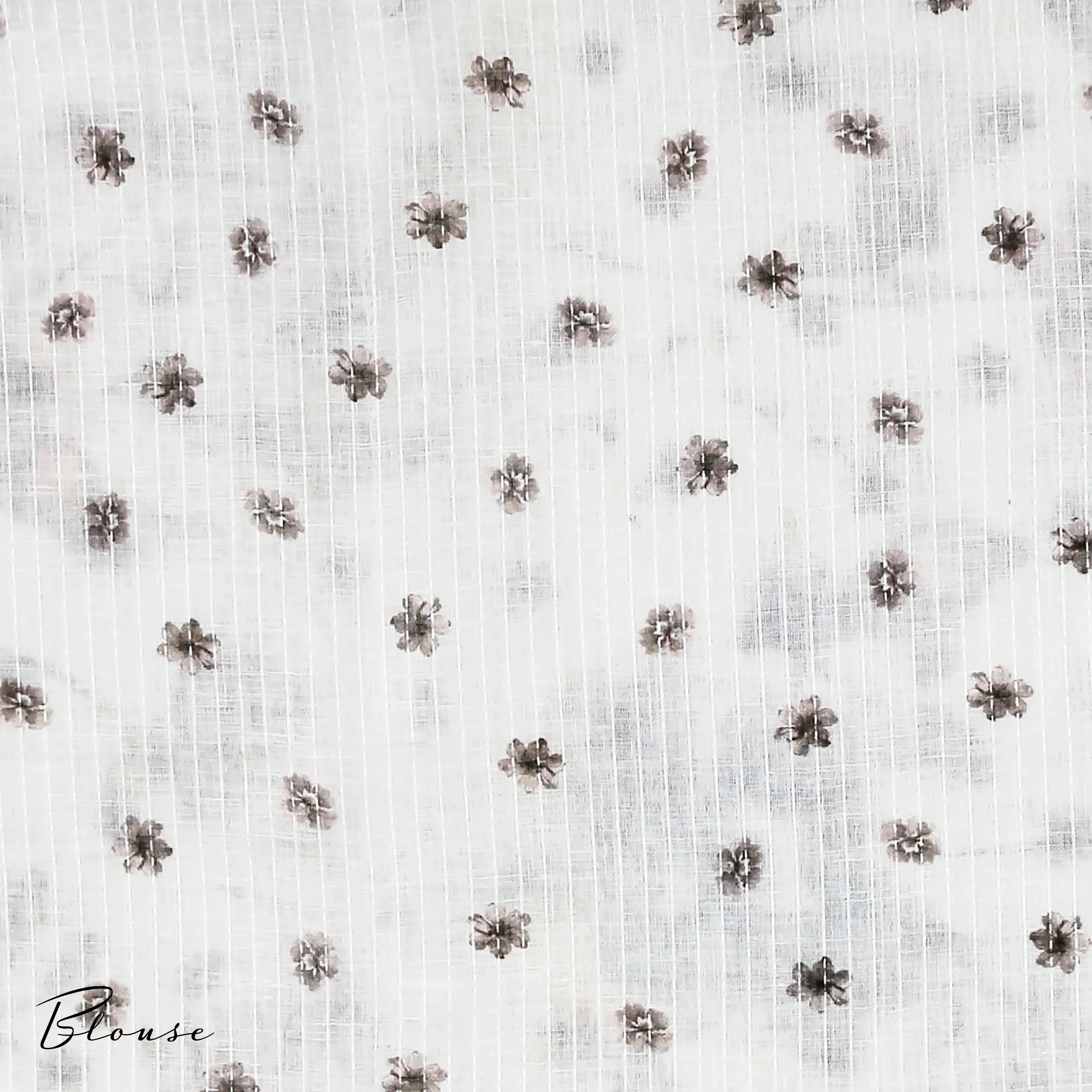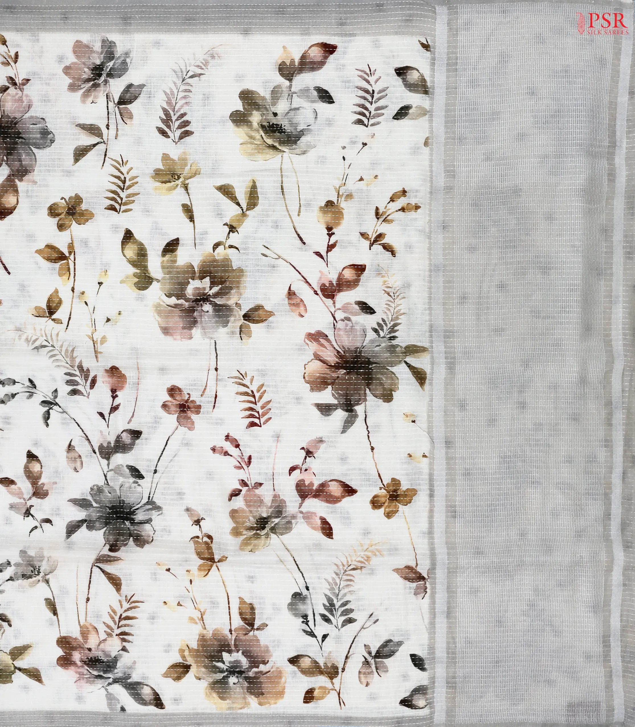 PSR Silk Sarees presents a Floral White colored Linen saree with combination of Light Grey color.