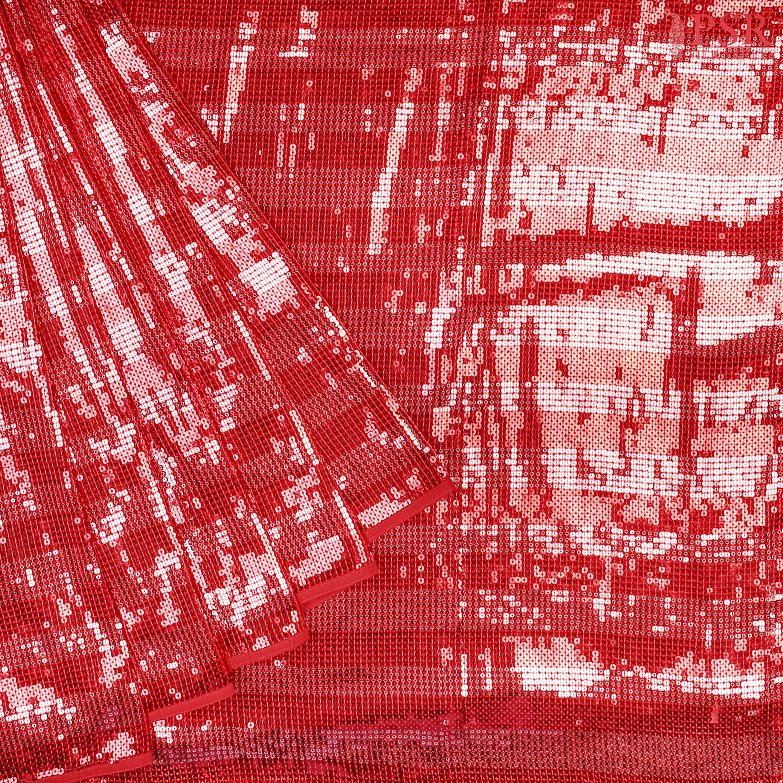 PSR Silks presents a Glitteringg Red colored Georgette Saree with an enchanting Sequence Embroidery Work.