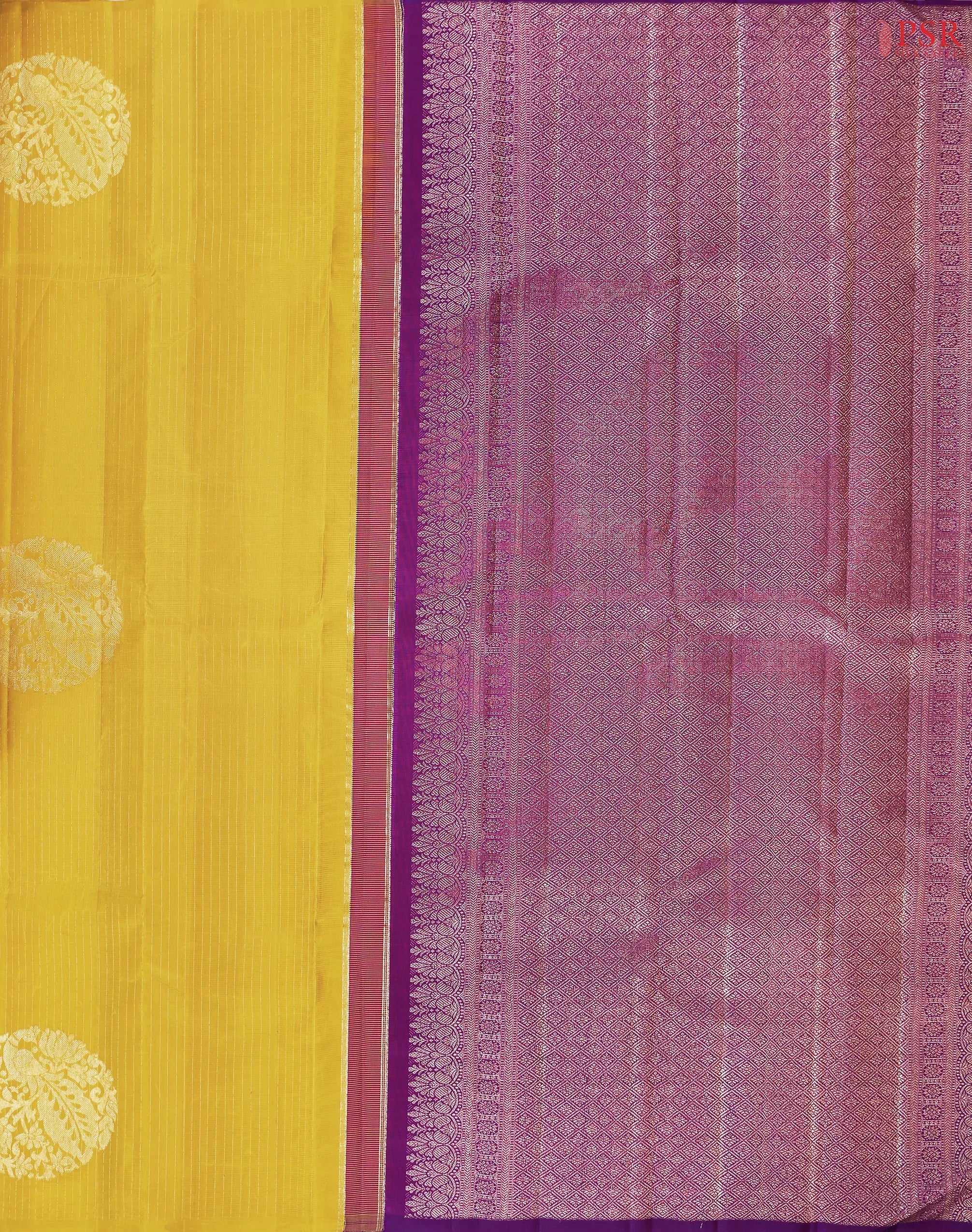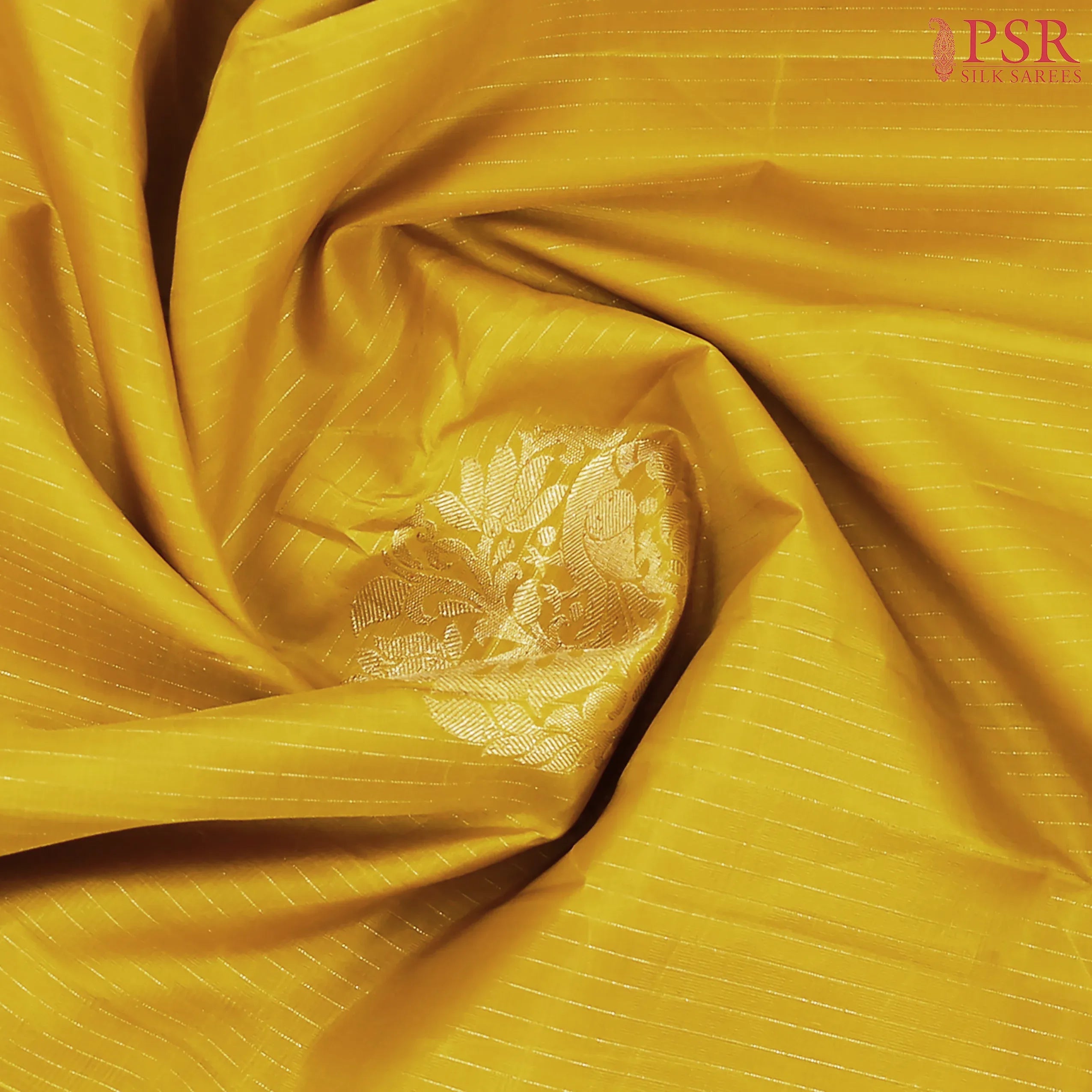 PSR Silk Sarees proudly presents a regal Golden Yellow Kanchipuram Silk Saree