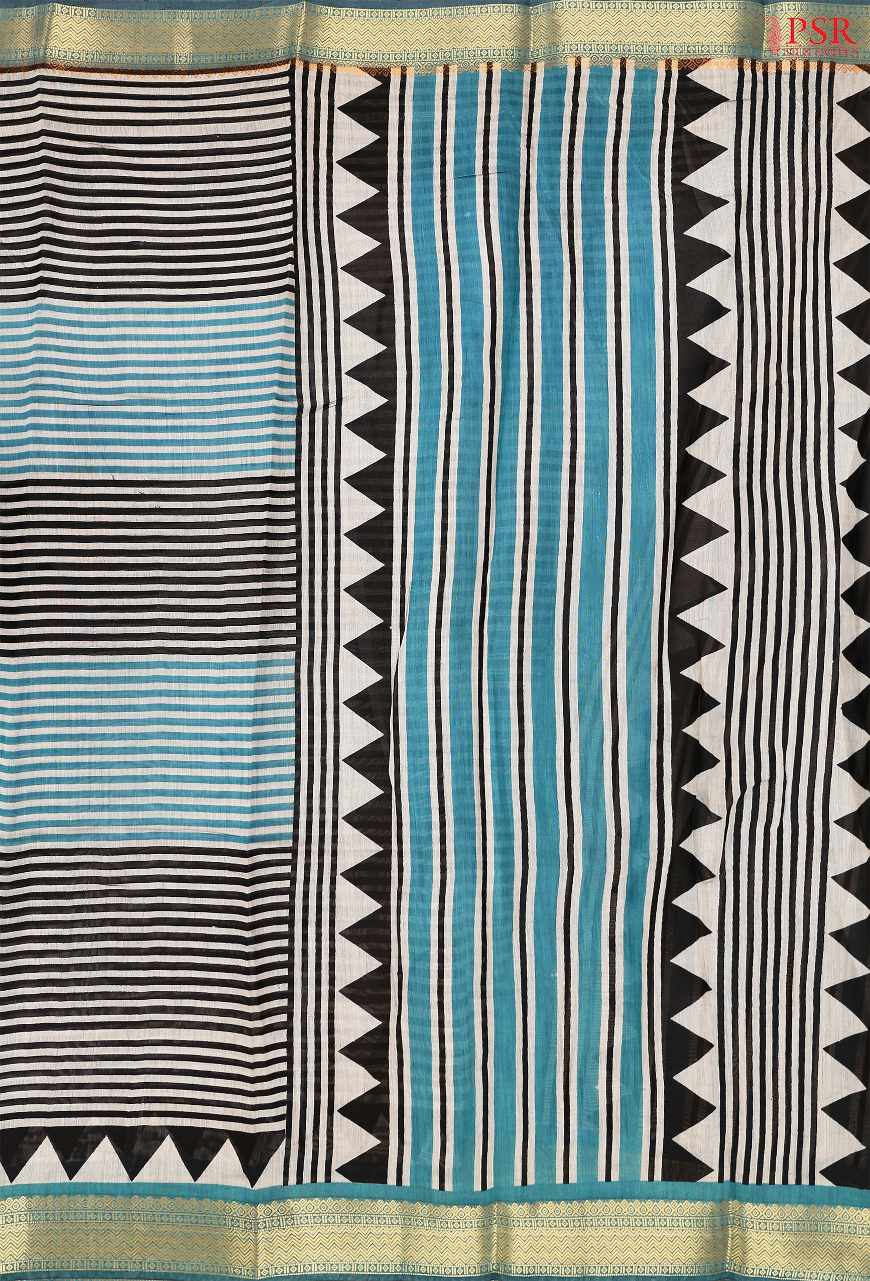 PSR Silk Sarees presents a Grey colored Silk Cotton saree with combination of Turquoise color.
