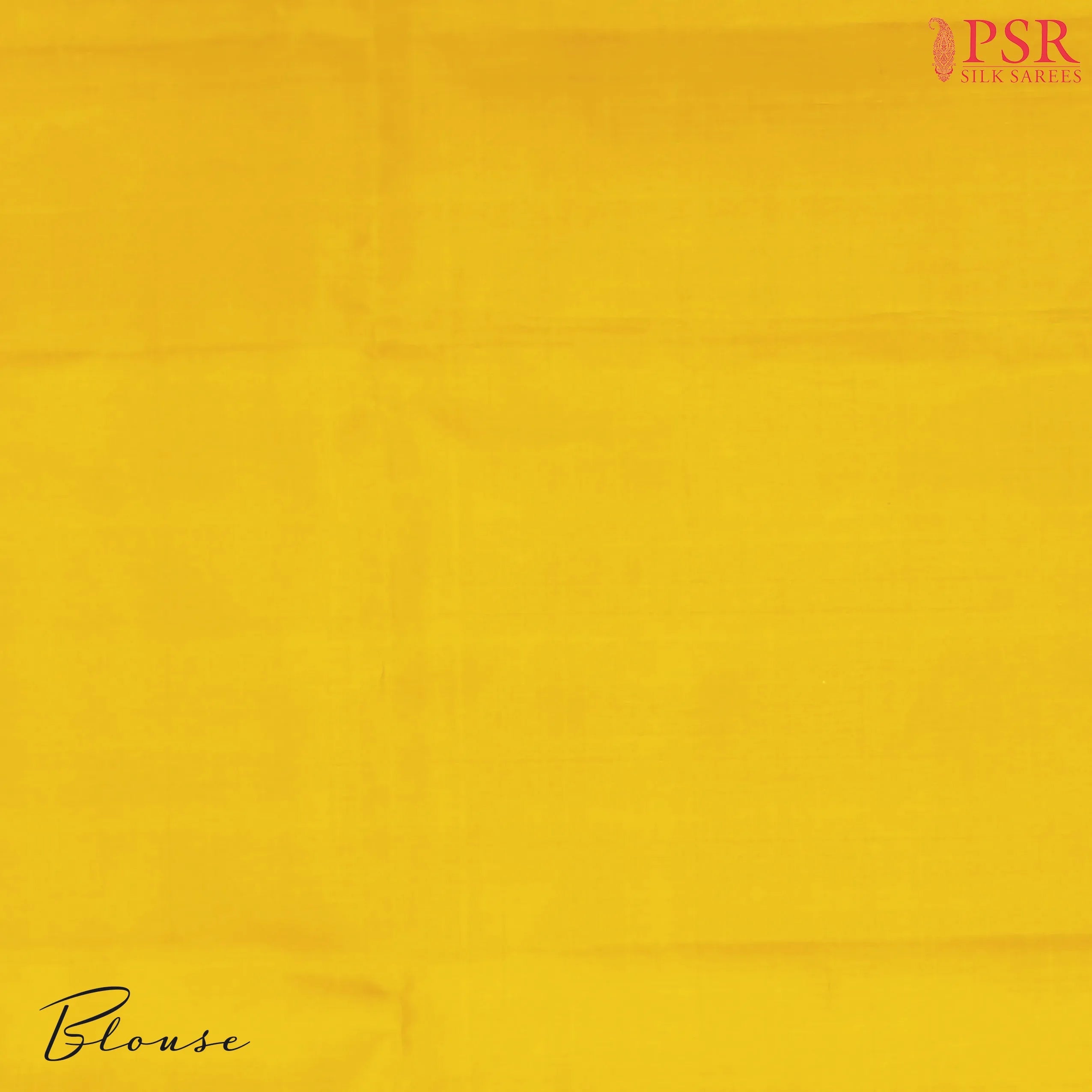 Paired with a plain Cyber Yellow blouse, this saree delivers a bold and sophisticated look—perfect for weddings, festive events, and traditional celebrations.
