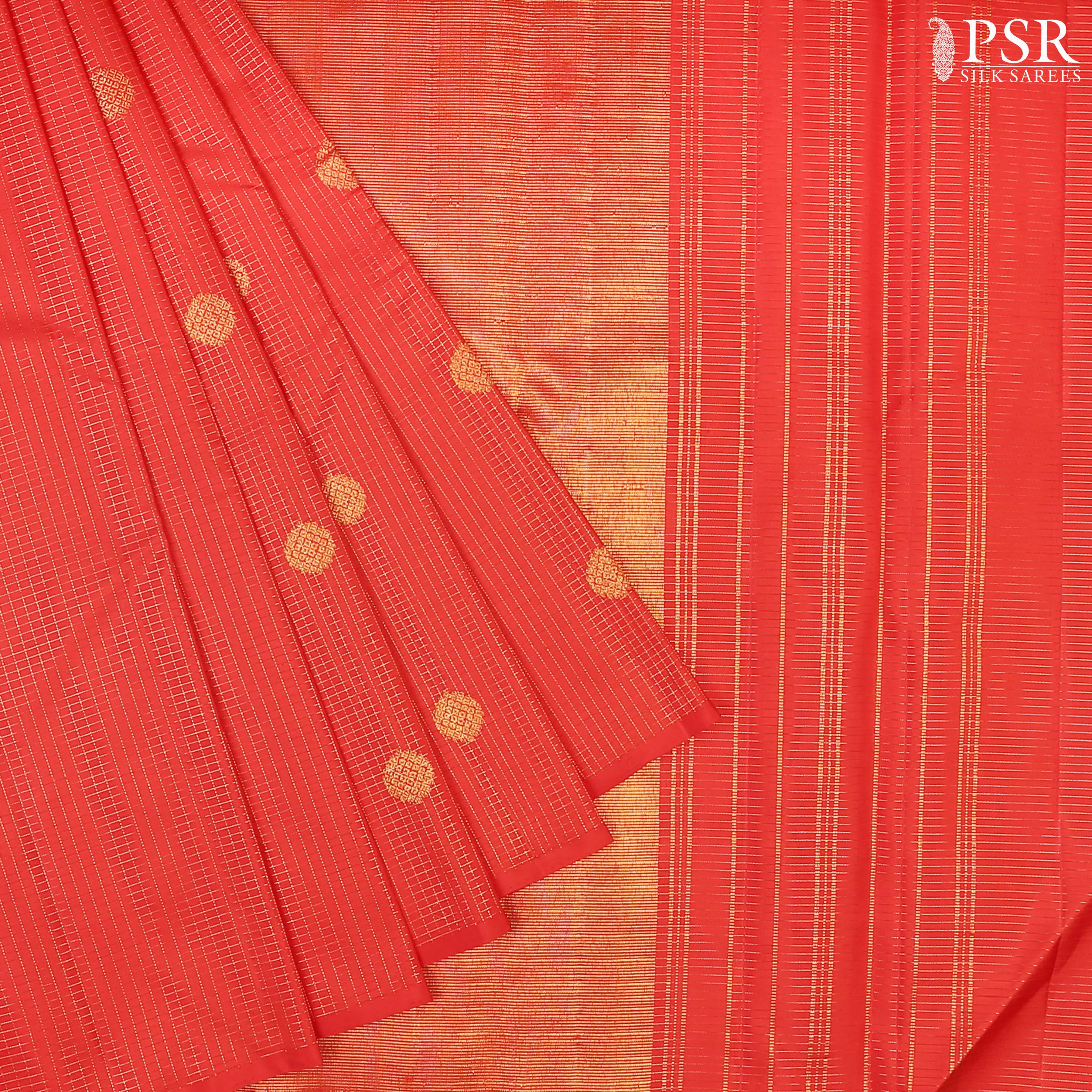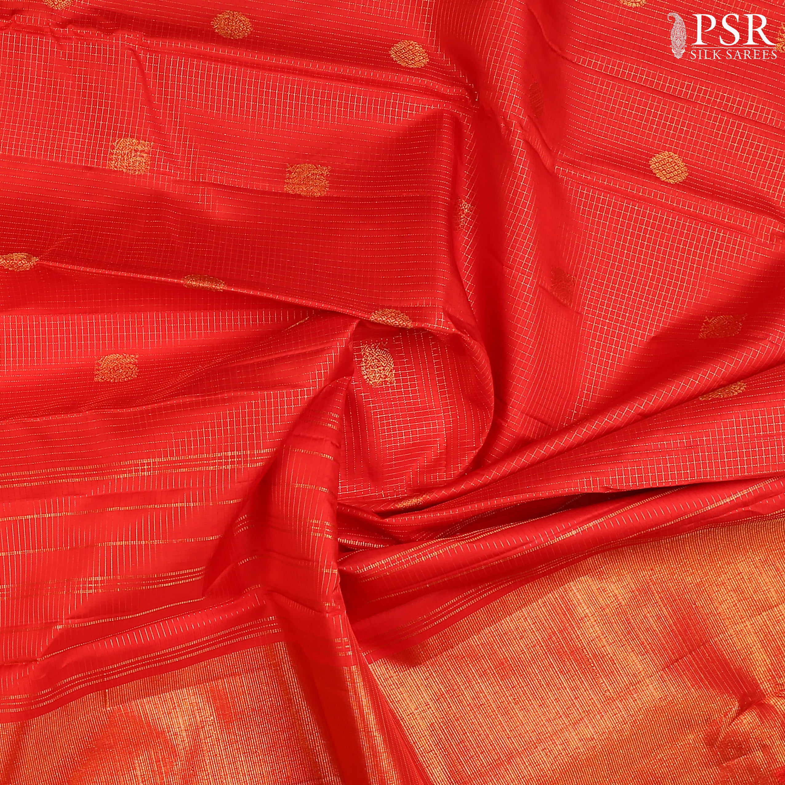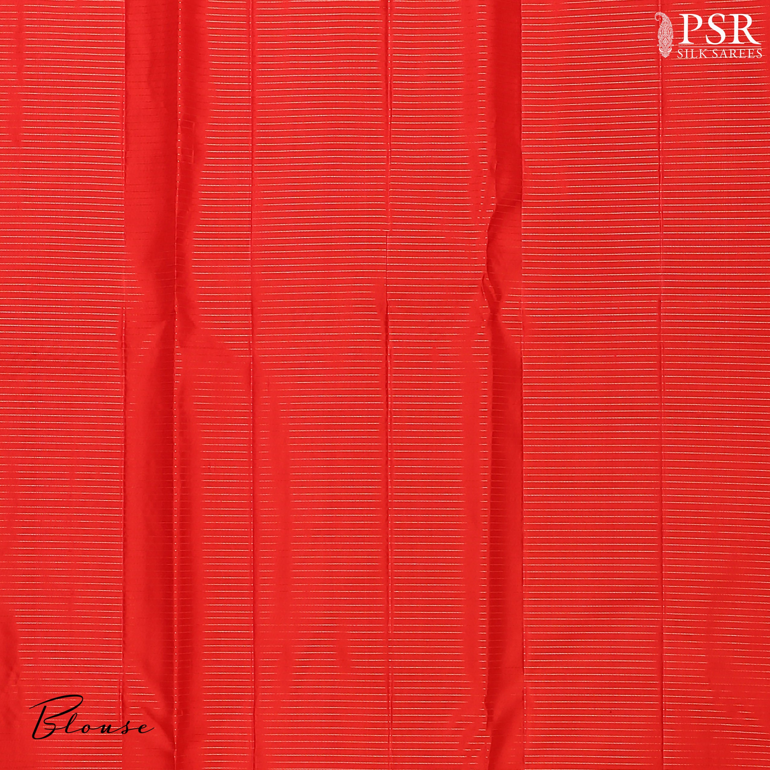 Introducing our Red Kanchipuram Silk Saree from the prestigious Shrestha Kanjivaram collection, a timeless treasure designed to dazzle. This masterpiece features a delicate small zari checkered pattern beautifully adorned with intricate mayura (peacock) and chakra zari motifs, symbolizing elegance and tradition. The stunning borderless design enhances its contemporary charm, while the traditional zari chit pallu adds a touch of heritage. Paired with a matching zari-striped blouse, this saree is the perfect blend of sophistication and tradition, ideal for weddings, festivities, and special occasions.
