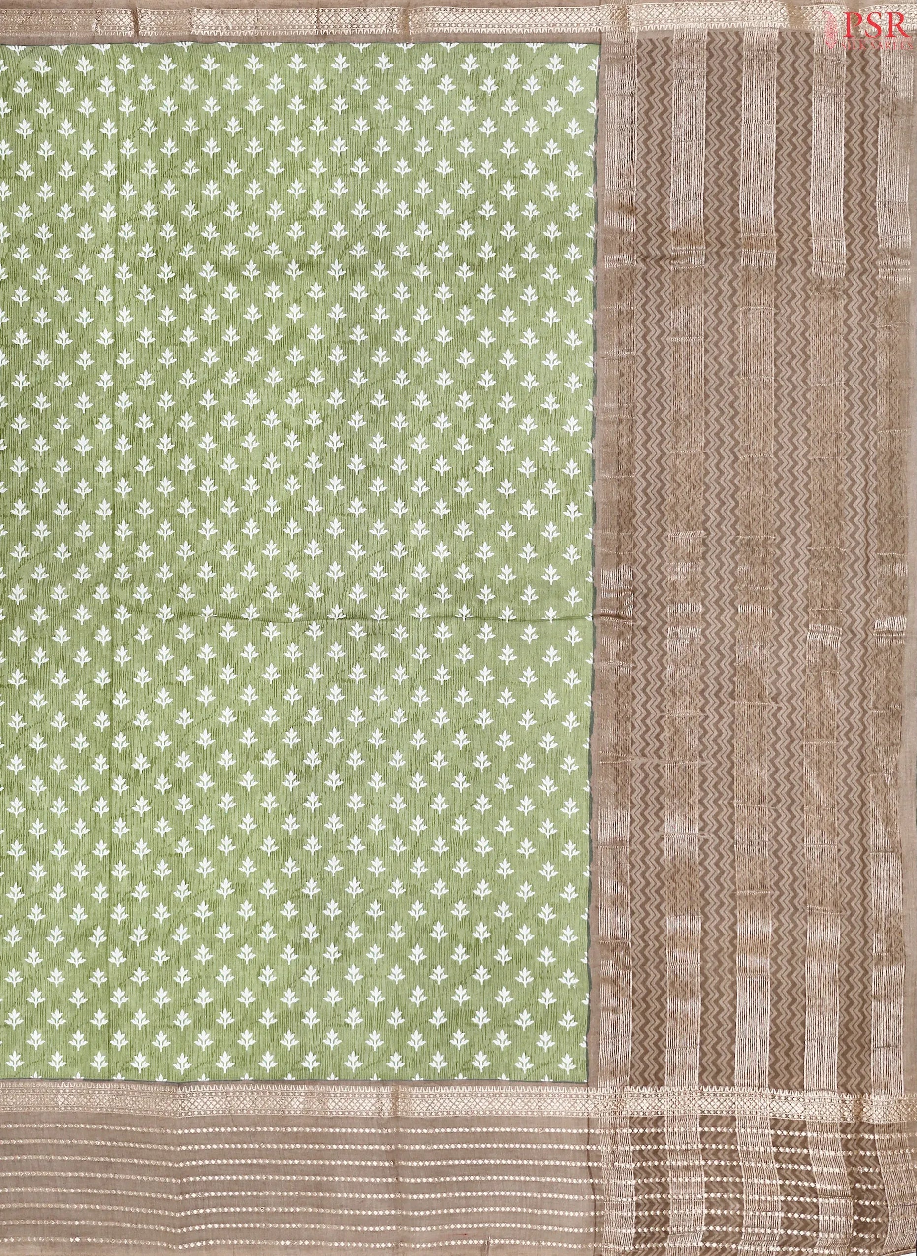 PSR Silk Sarees presents a Khaki Green colored Assam Saree with combination of Dark Taupe color.