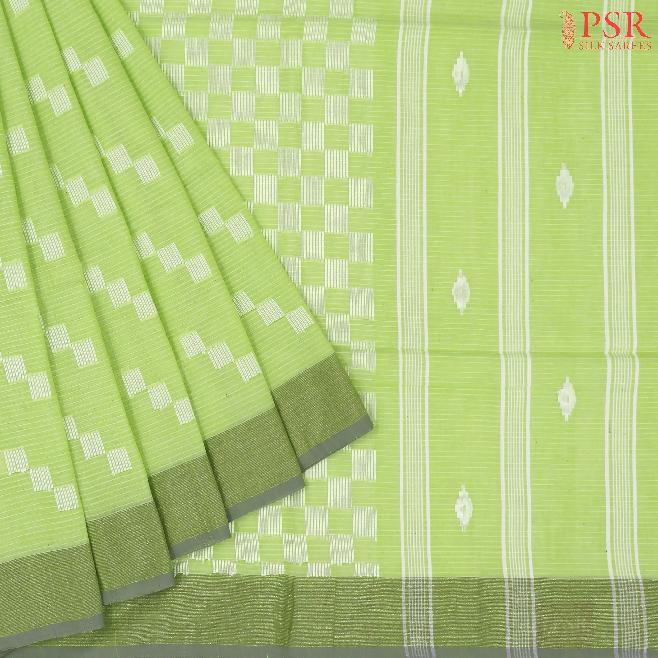 PSR Silk Sarees presents a Light Chartreuse Green colored Byloom Cotton saree.