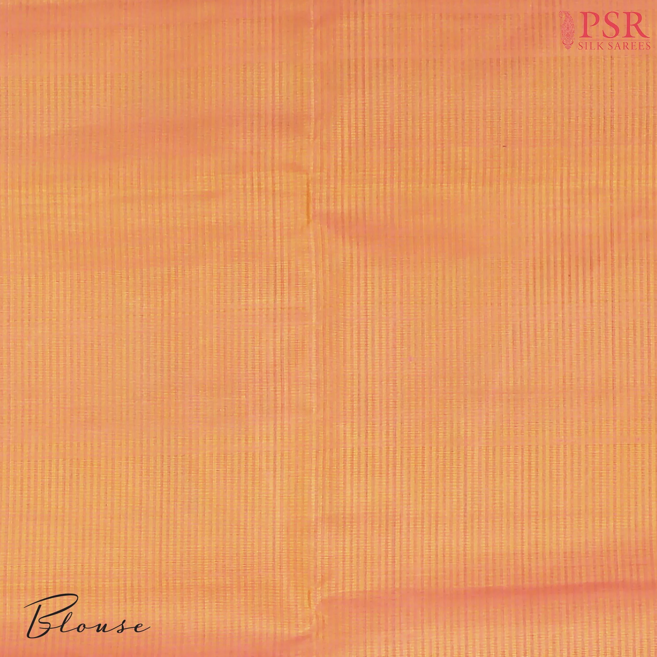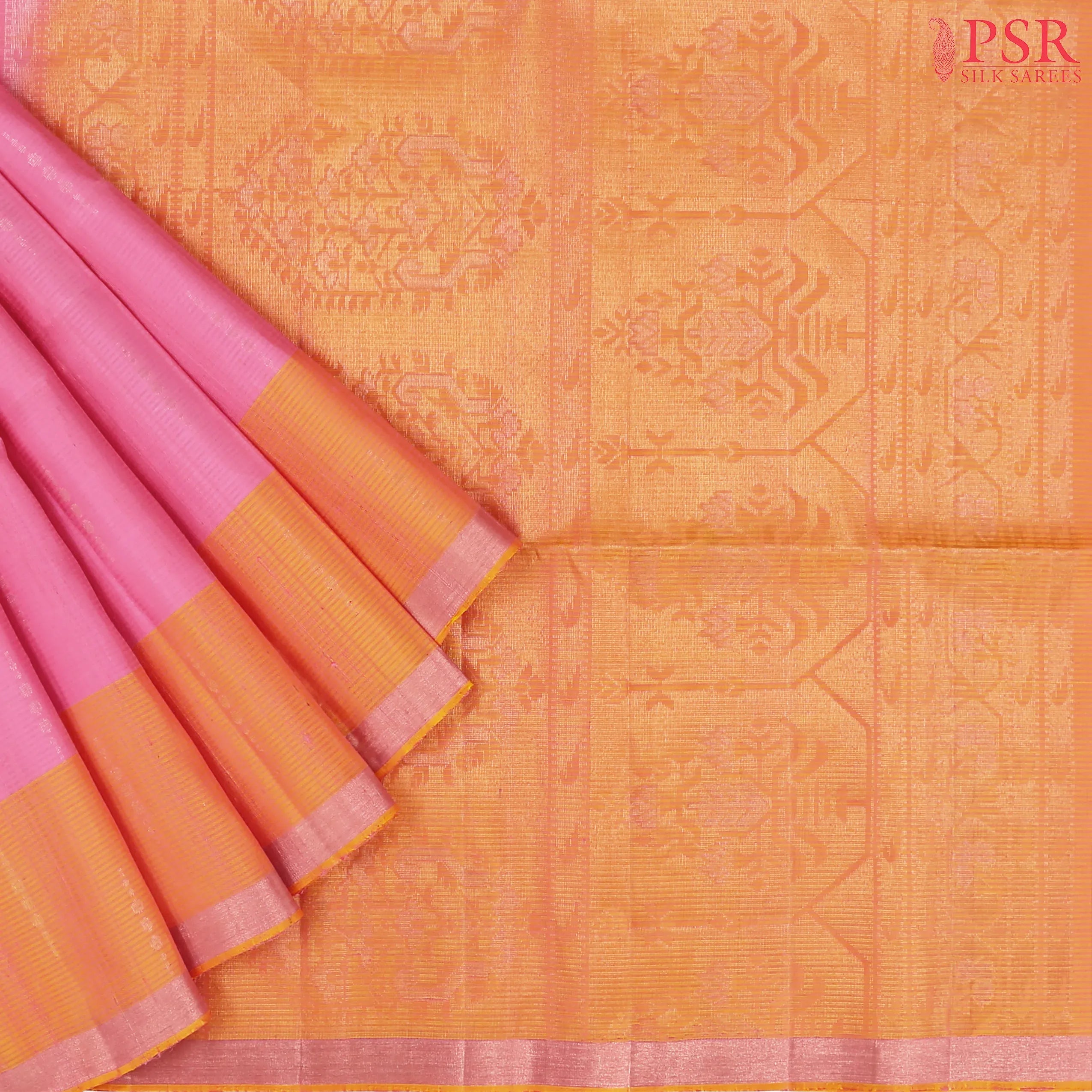 PSR Silk Sarees presents a timeless Light Pink Soft Silk Saree paired with a striking Crossandra Orange combination for a rich and regal look.