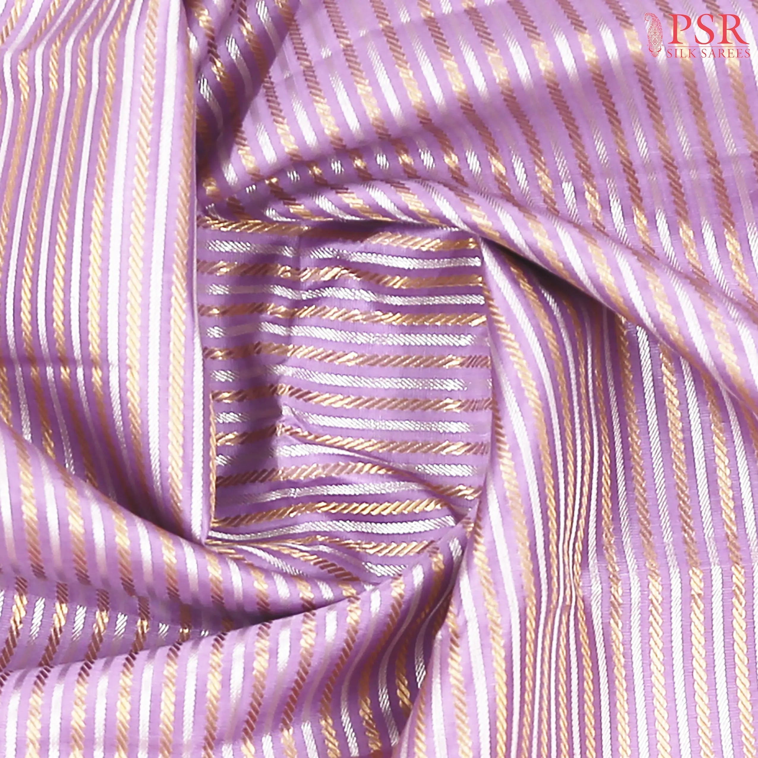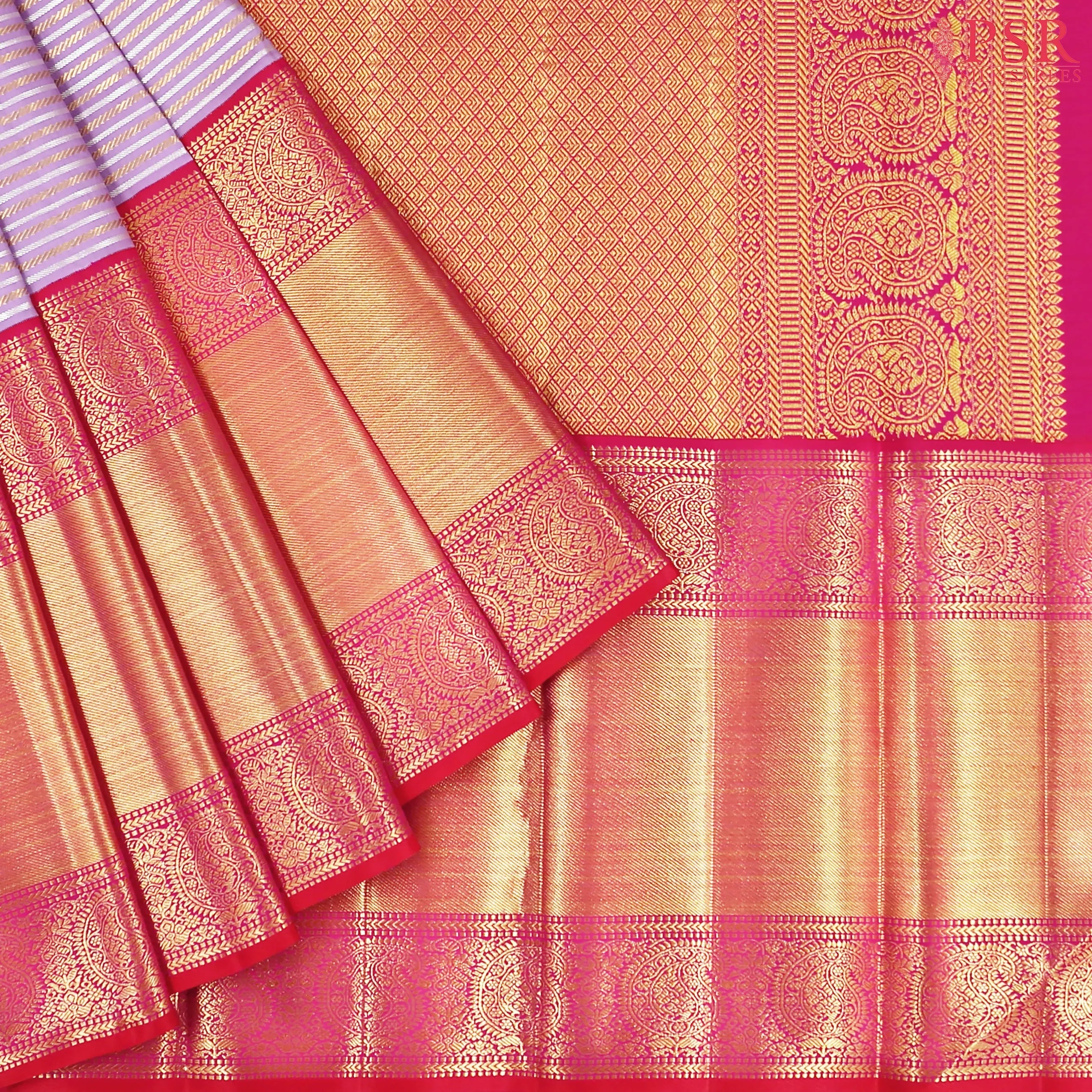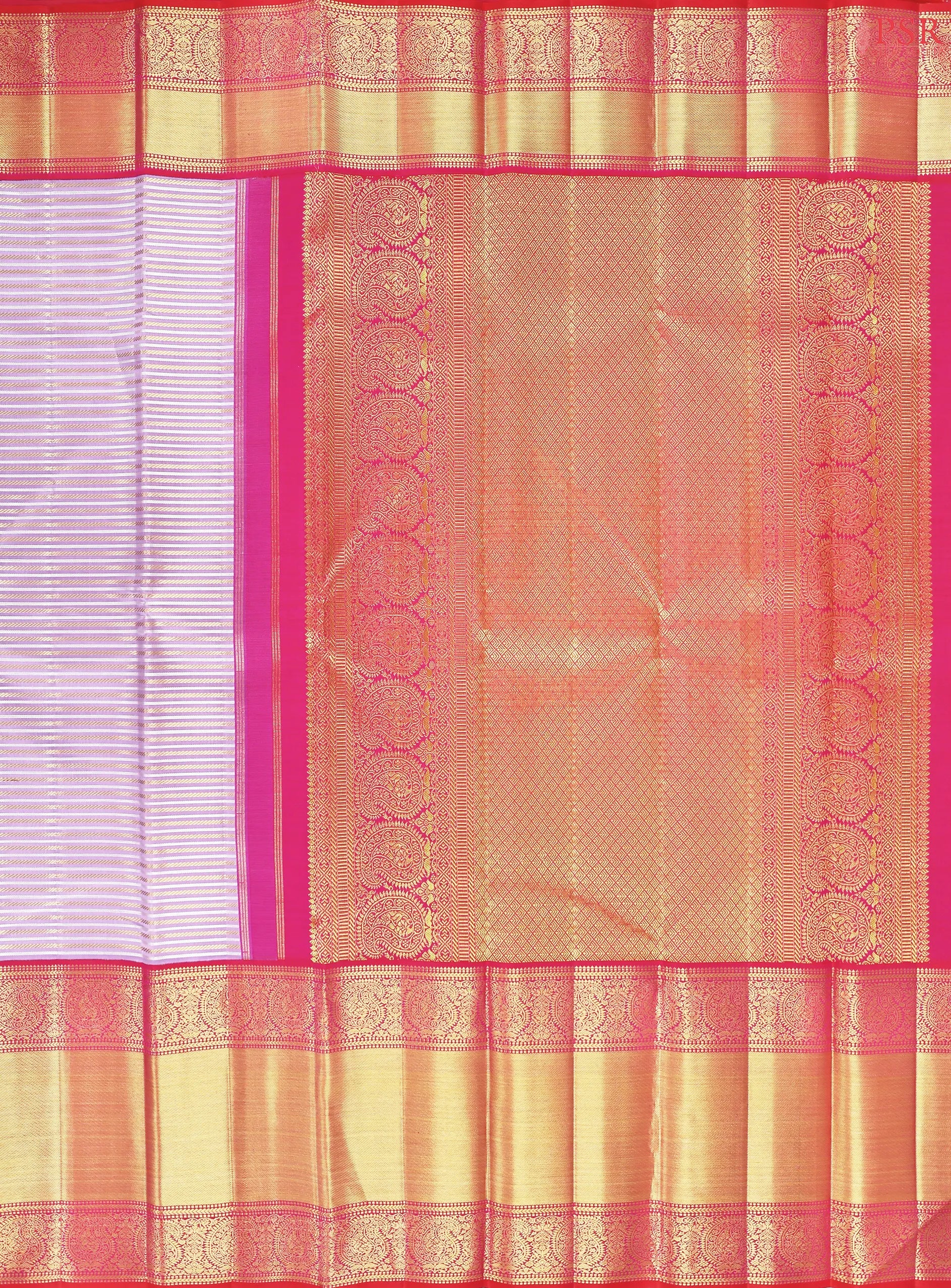 PSR Silk Sarees presents a graceful Lilac Purple Kanchipuram Bridal Silk Saree paired with a rich Cerise Pink contrast, radiating timeless beauty and elegance.