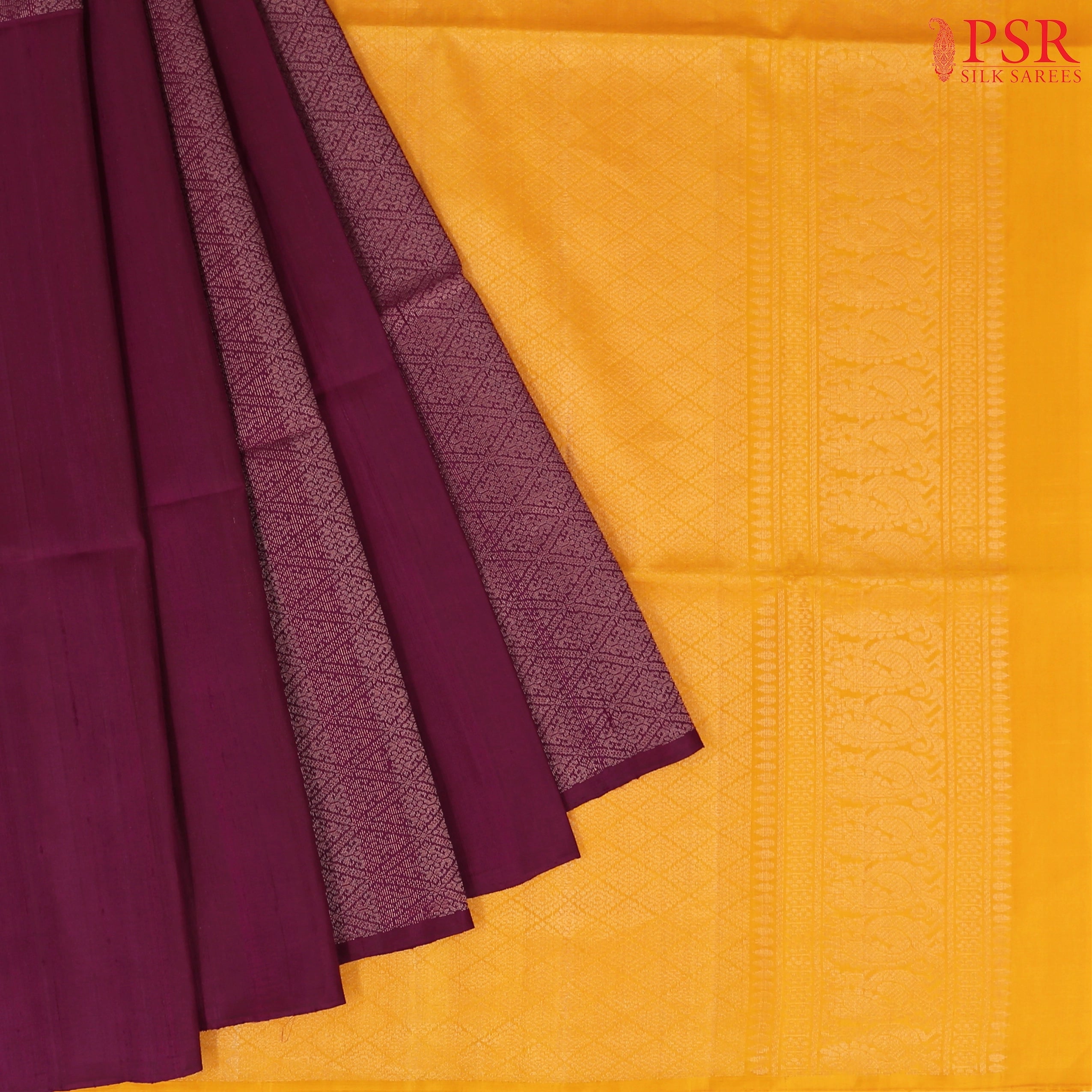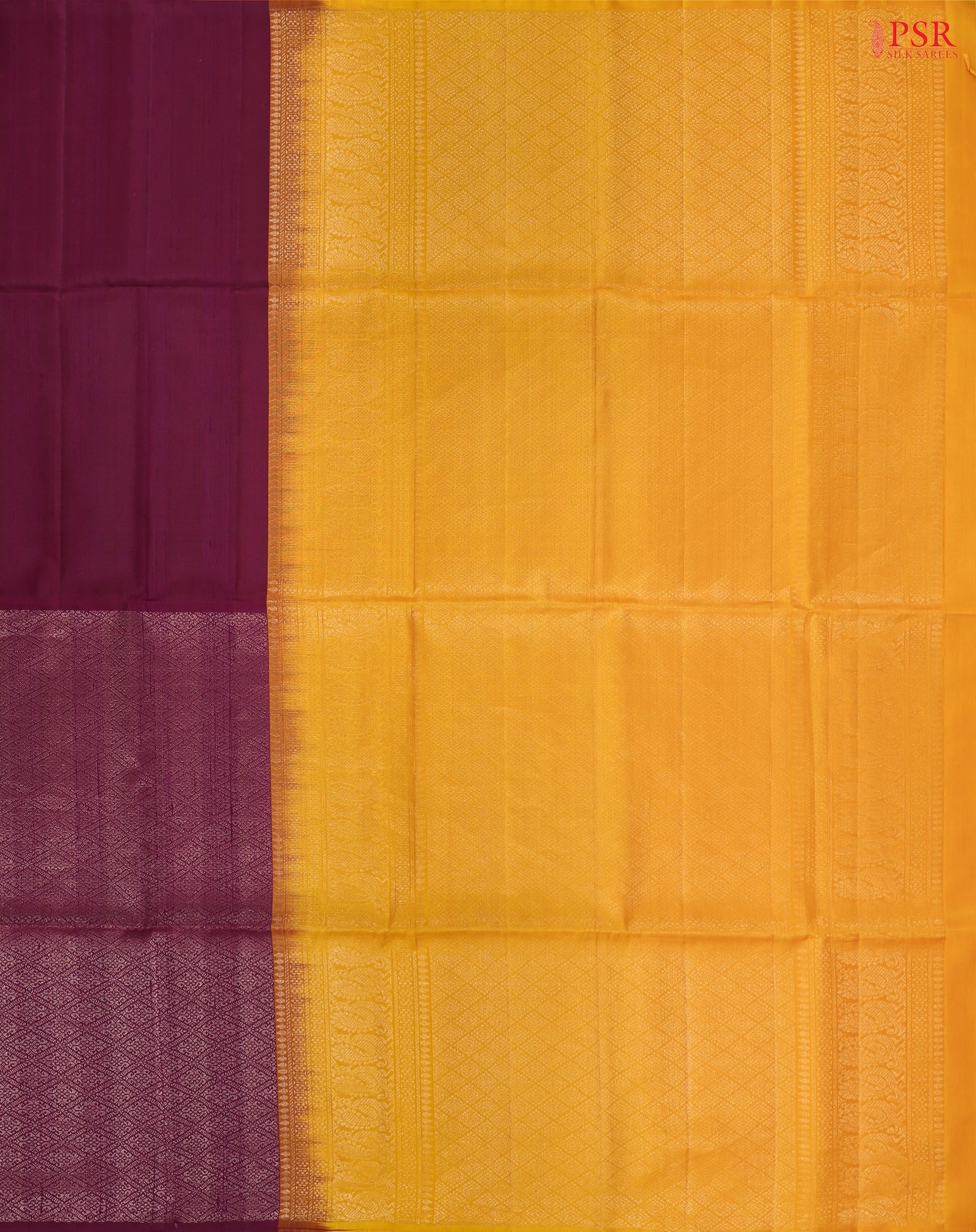 PSR Silks Presents: Burgundy & Marigold Yellow Soft Silk Saree – A Striking Fusion of Elegance & Grandeur