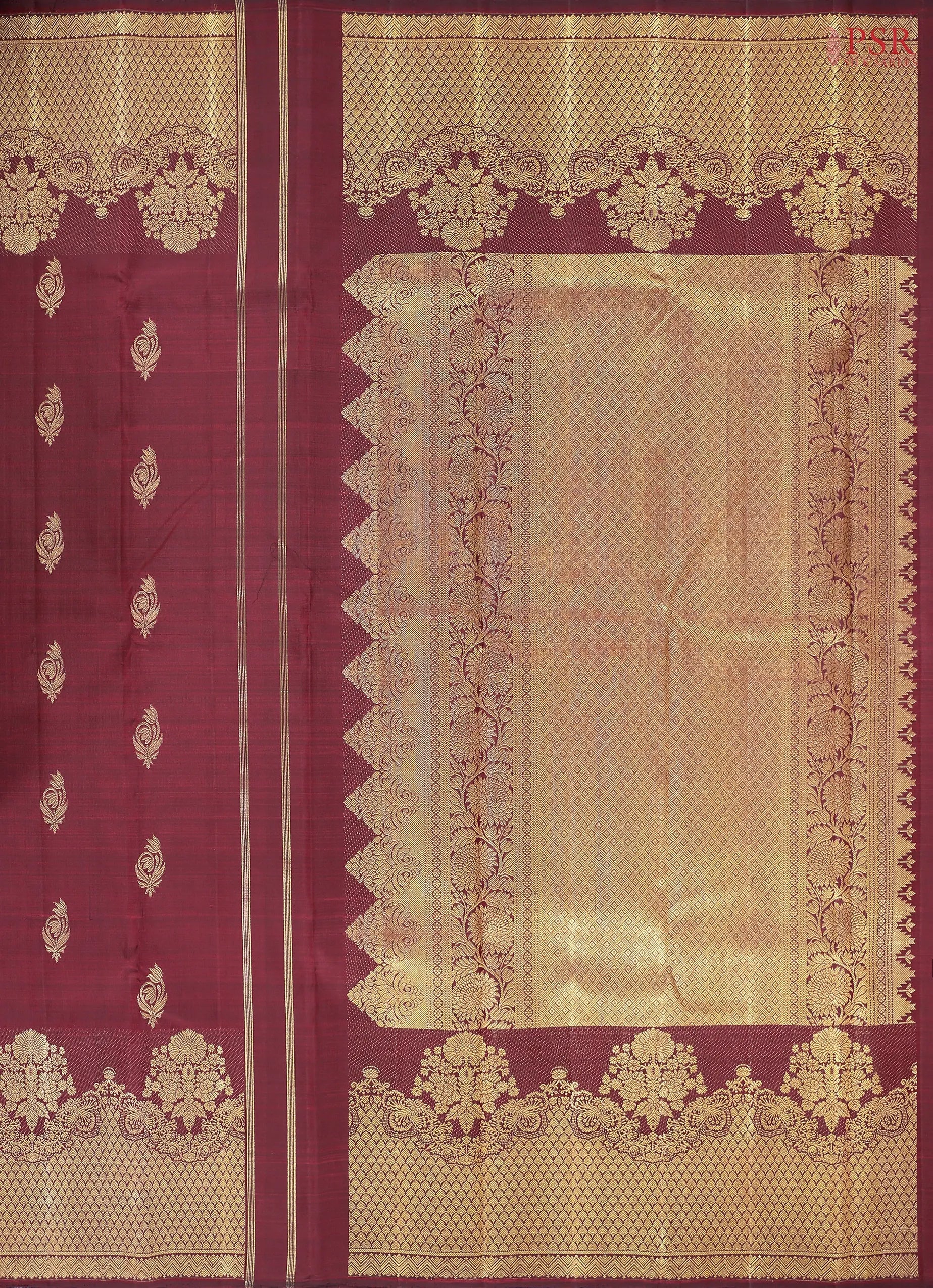 Maroon Shrestha Kanchivaram Silk Saree with Zari Motifs – PSR Silk Sarees