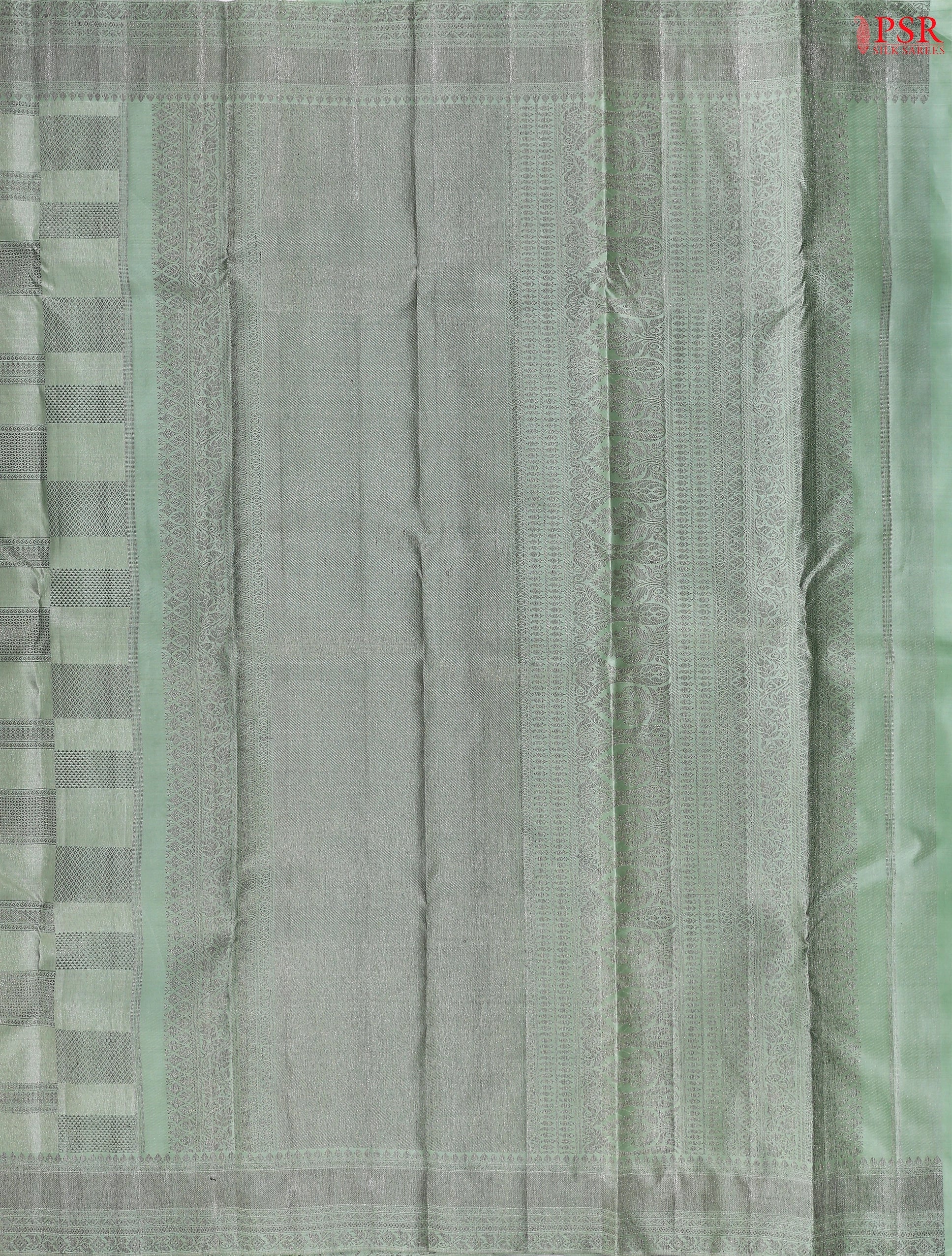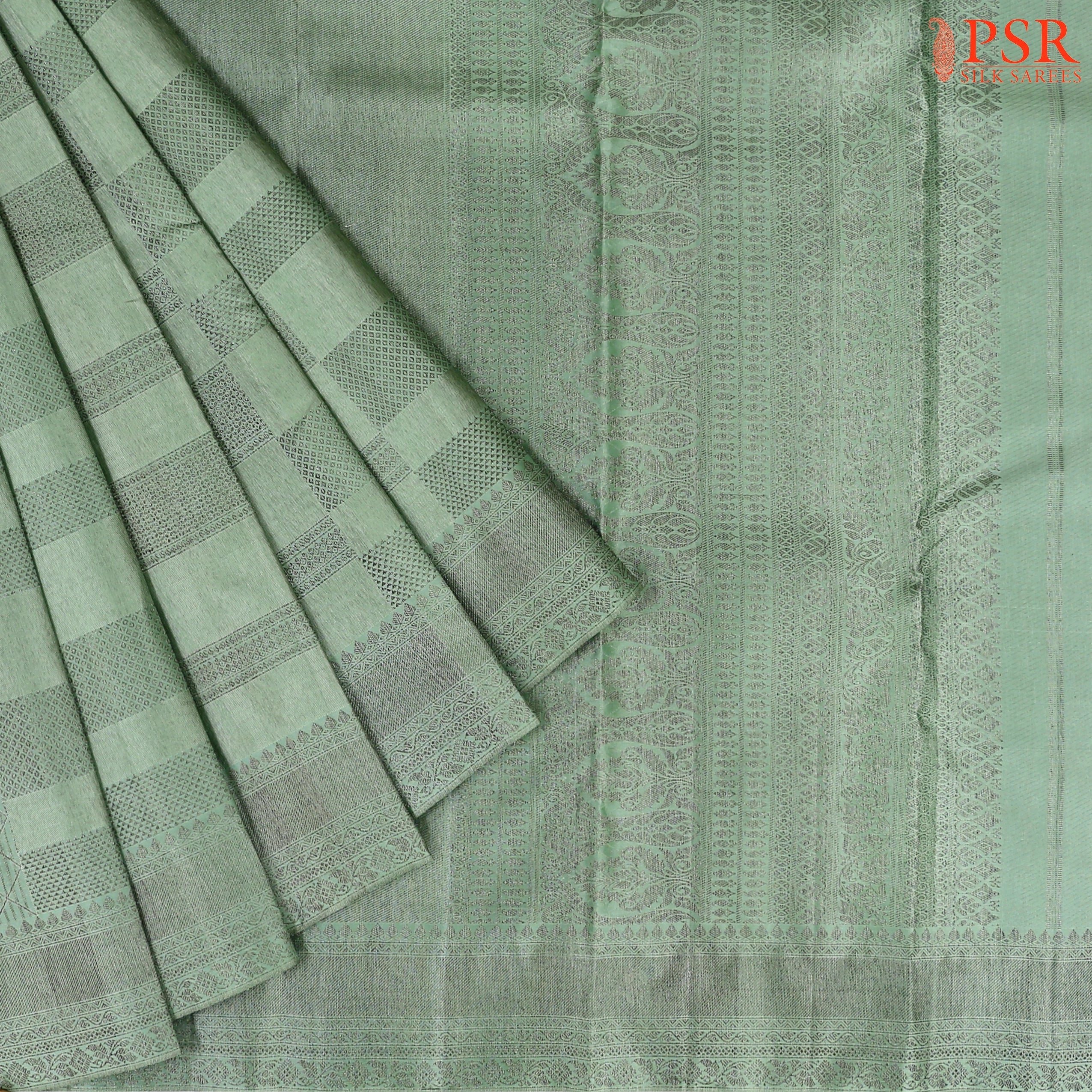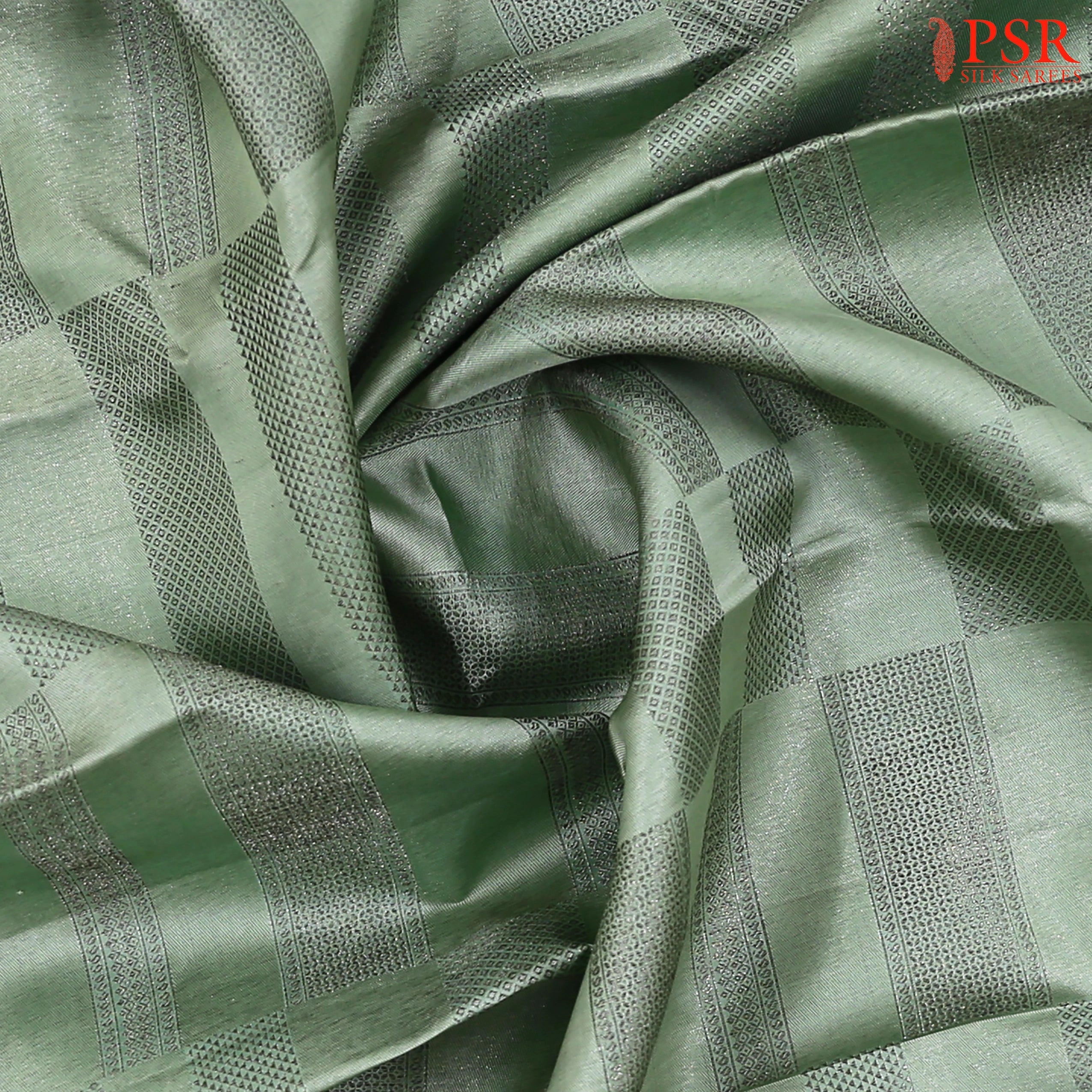 Mossy Sage Green Kanchipuram Tissue Silk Saree with Antique Silver Zari Weaves – Vaichitraya Kanjivaram by PSR Silk Sarees