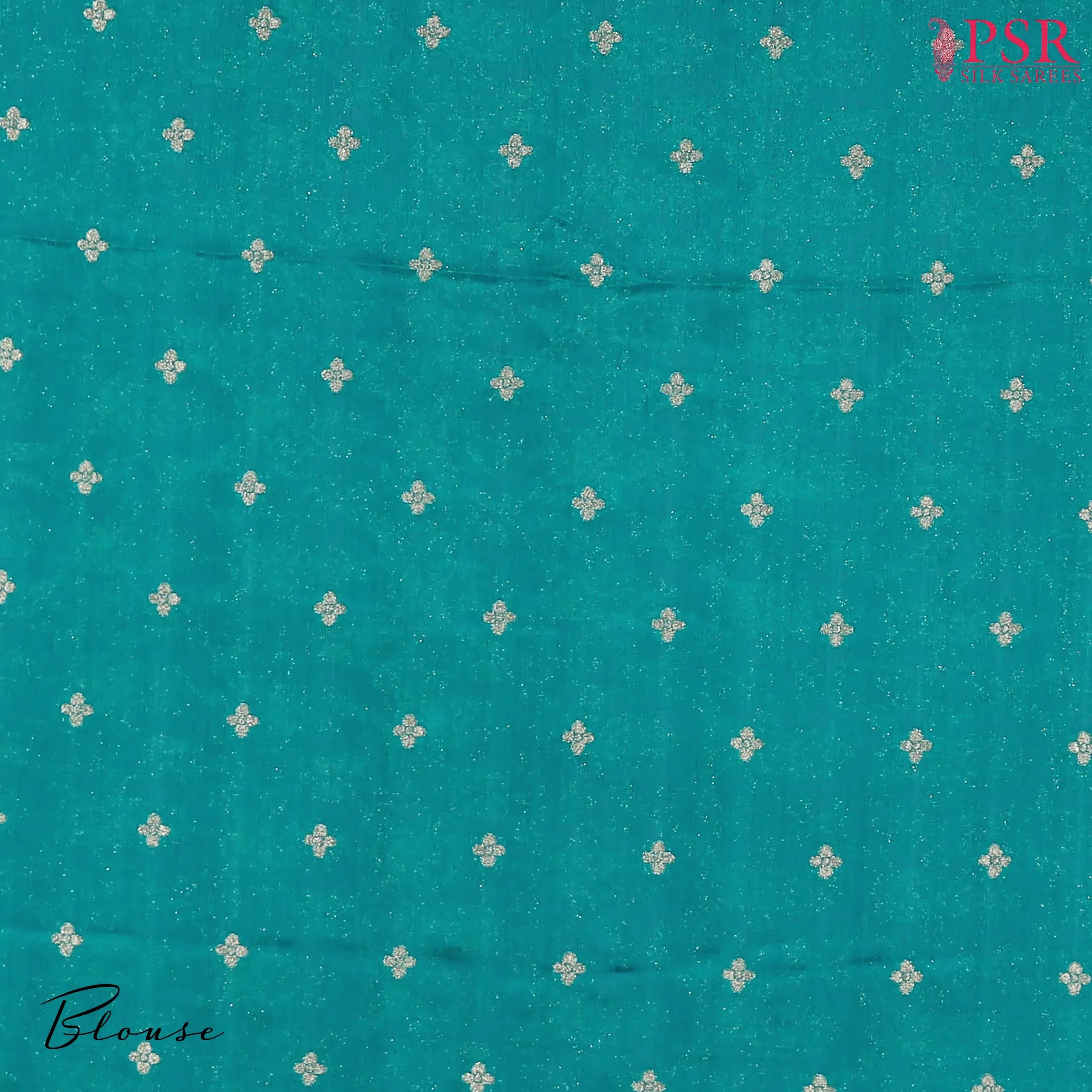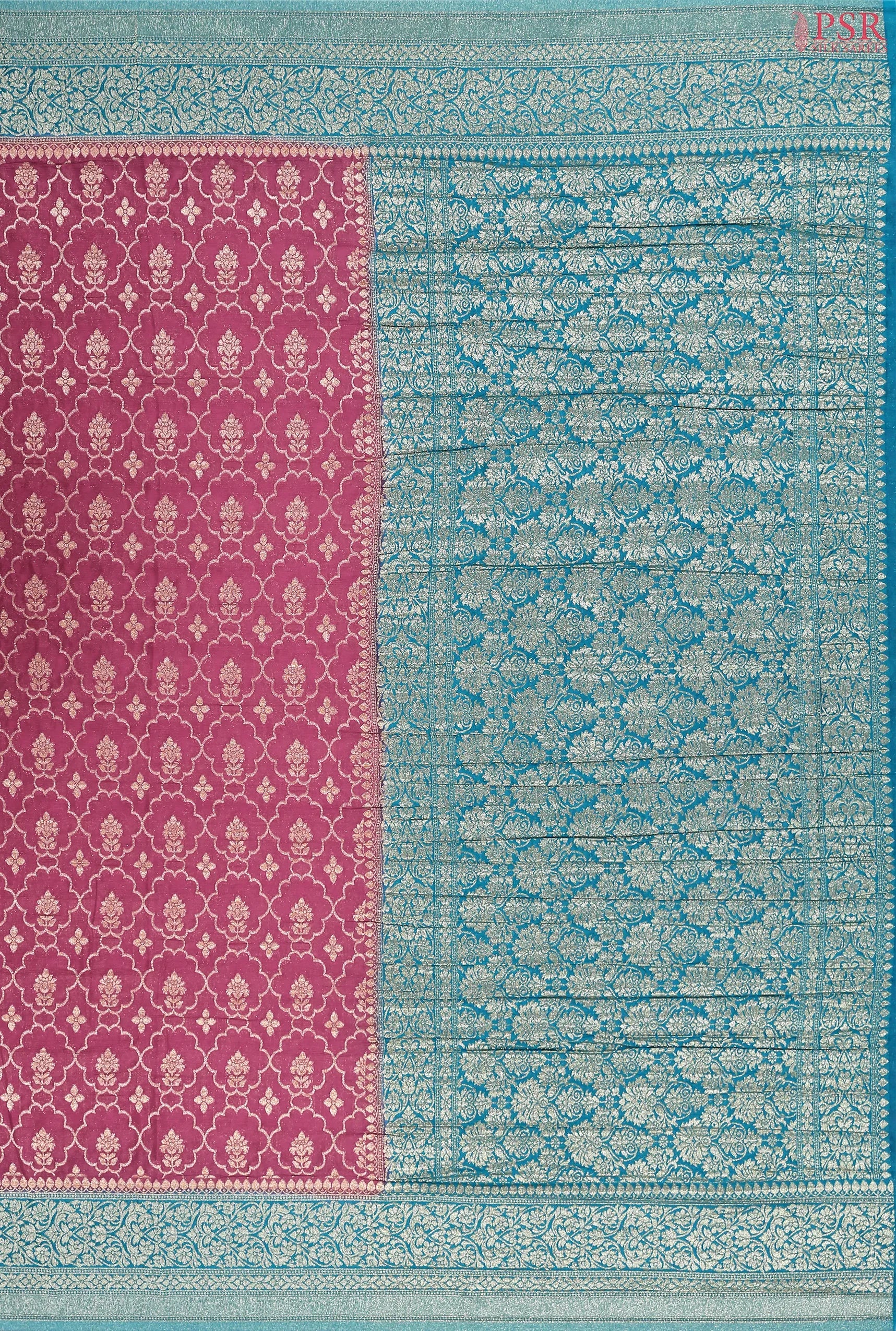 PSR Silks presents a Mulberry Pink colored Georgette Saree with zari work with combination of Peacock Cyan color.