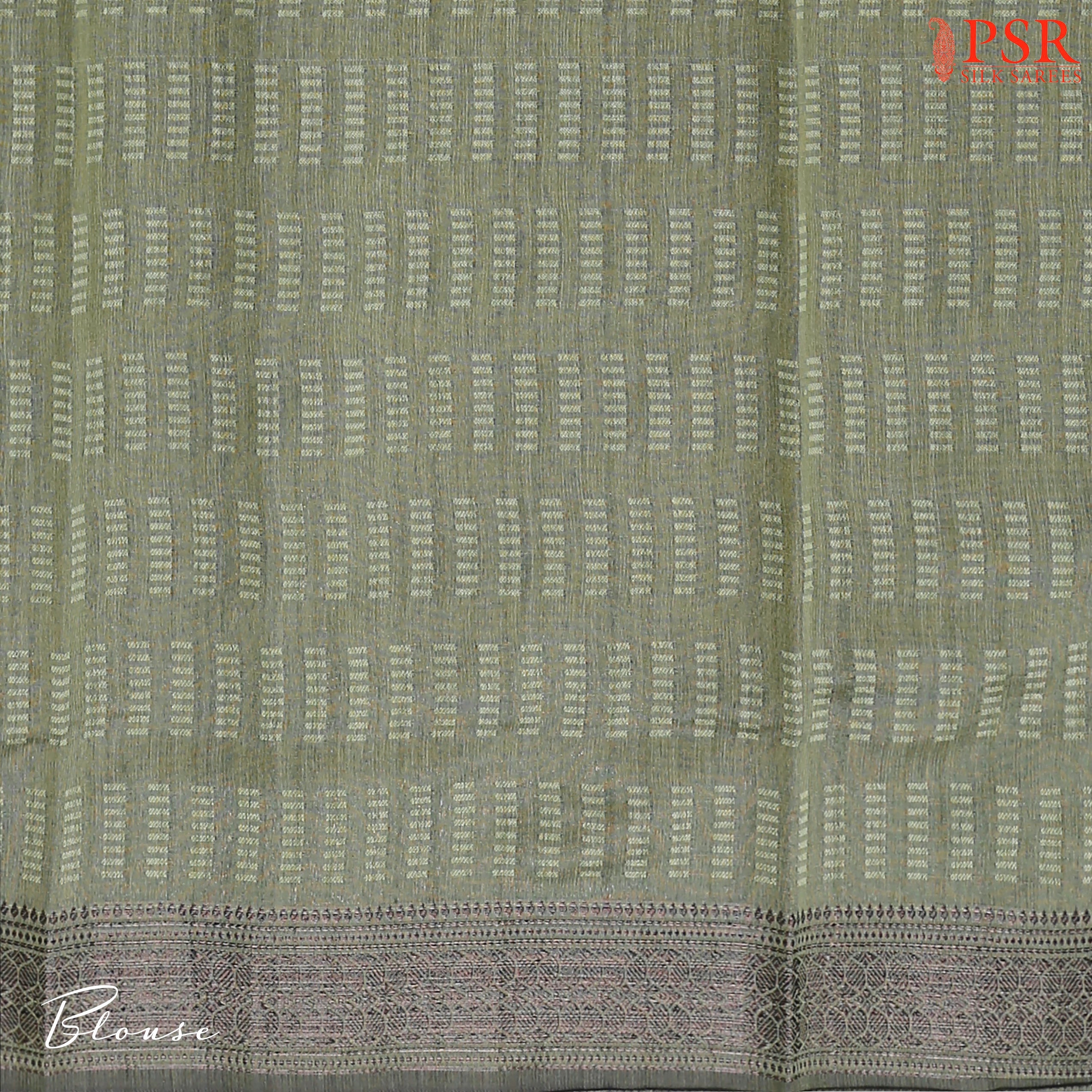 PSR Silk Sarees presents an Olive colored Semi Banaras Saree