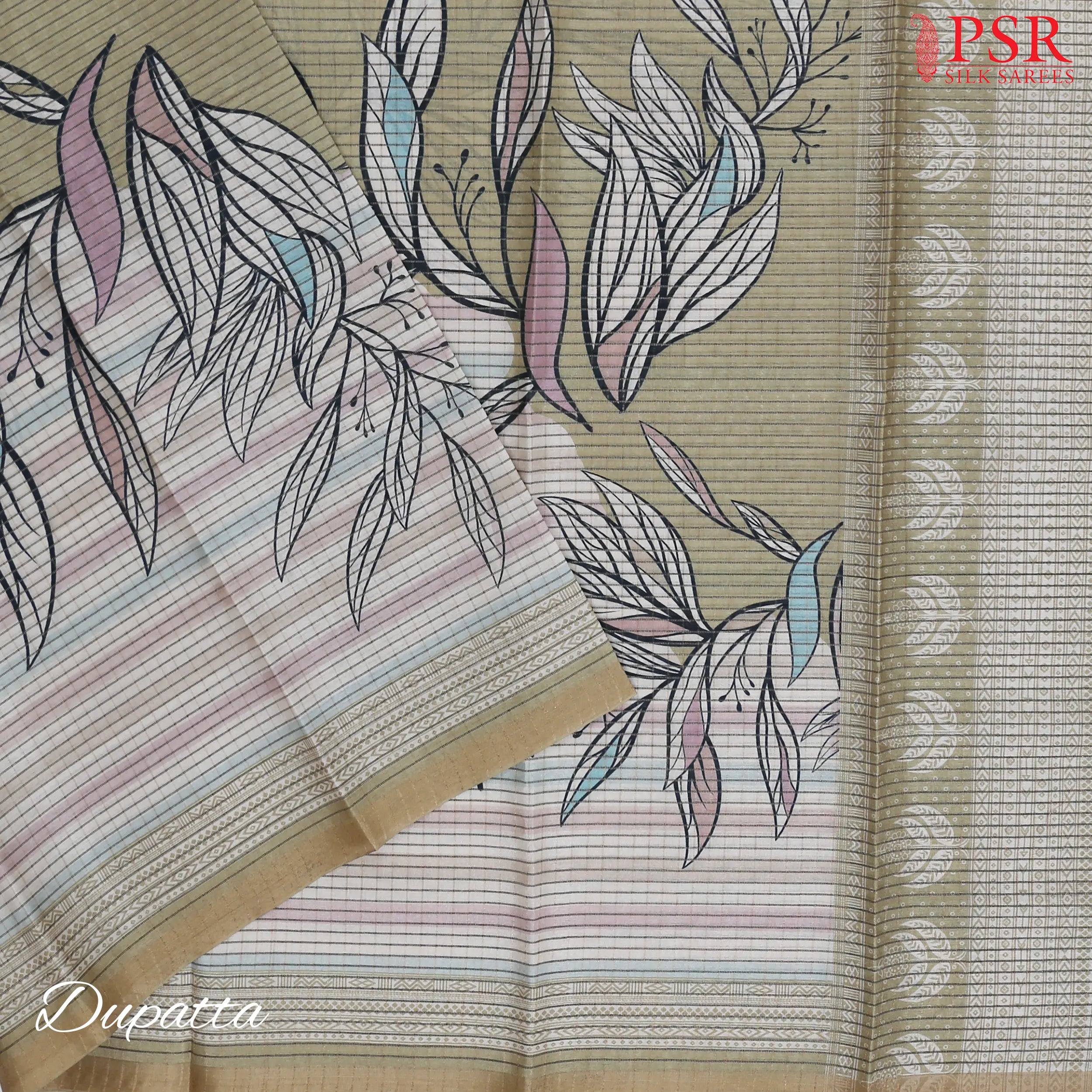 PSR Silks presents Olive Semi Tassar Dress Material (Only Top & Dupatta)