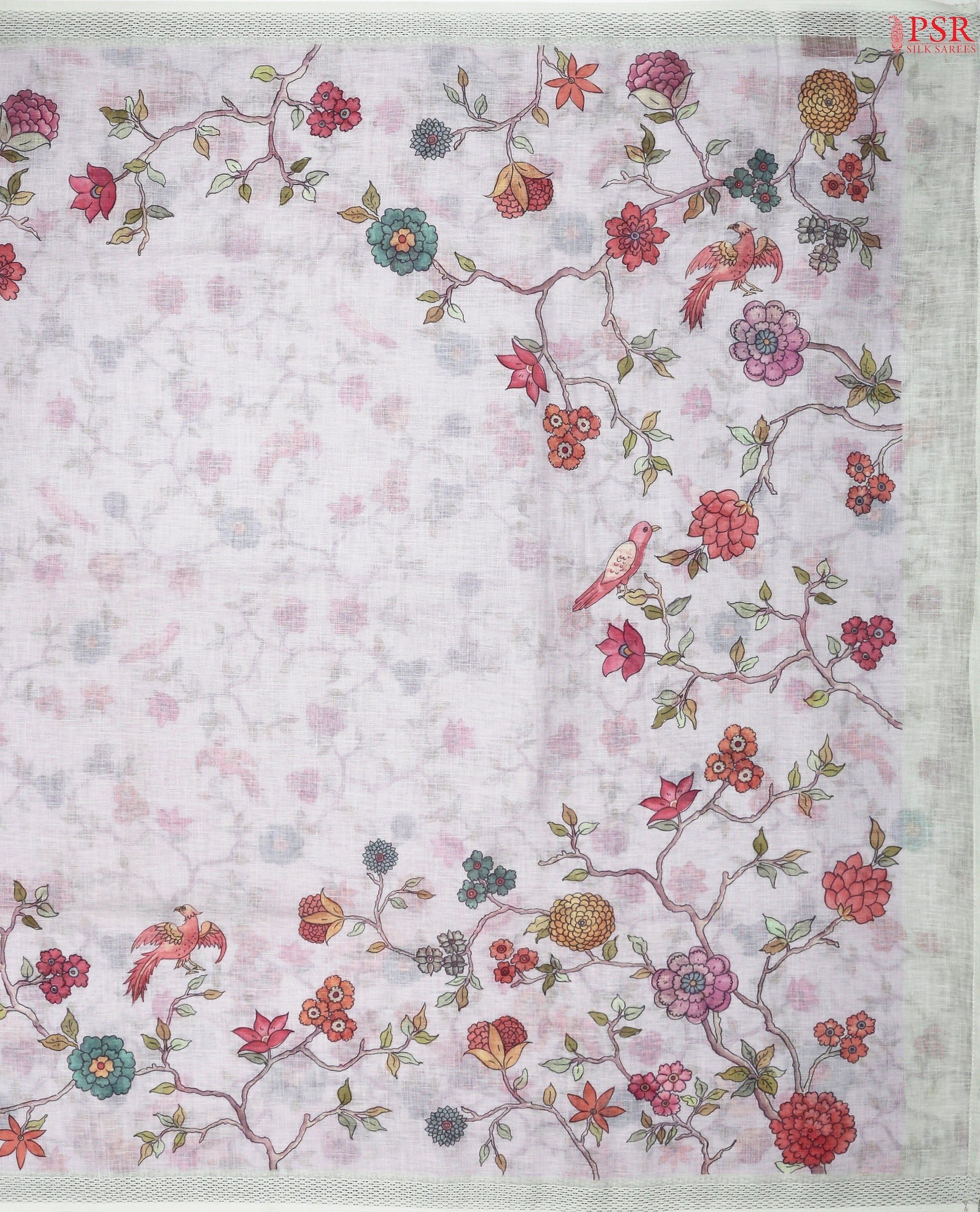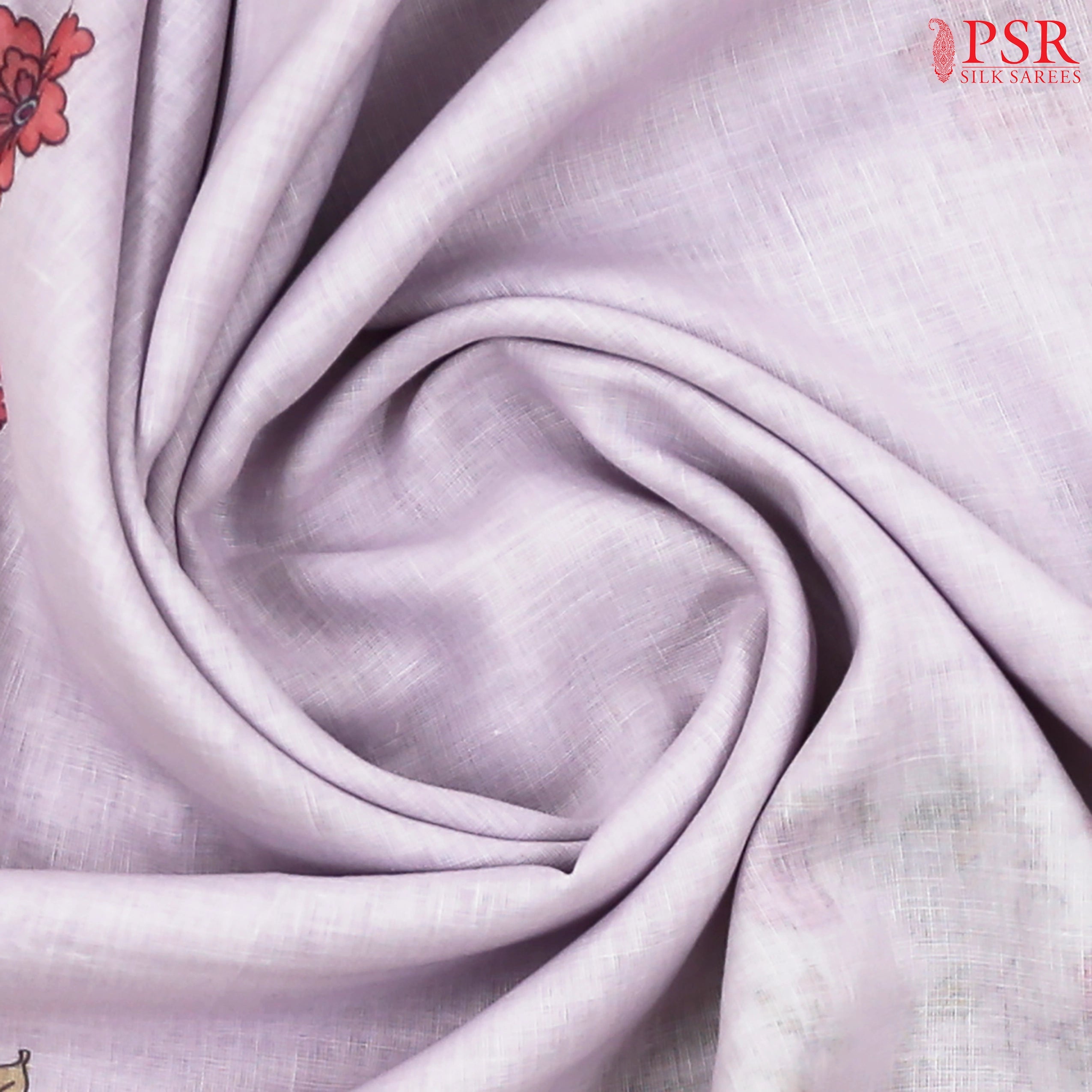 PSR Silk Sarees presents a Pale Lavender colored Linen saree with combination of Dove White color.