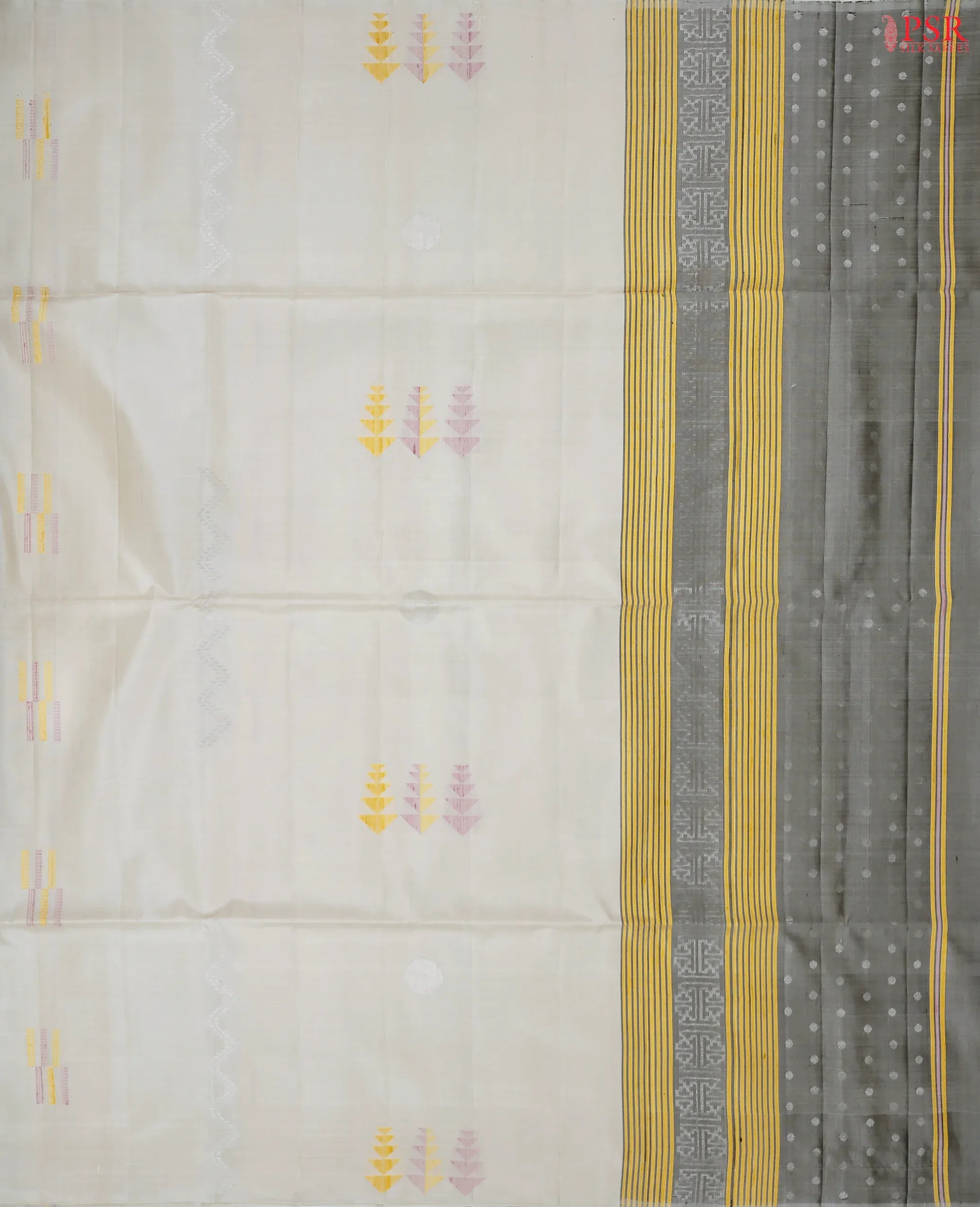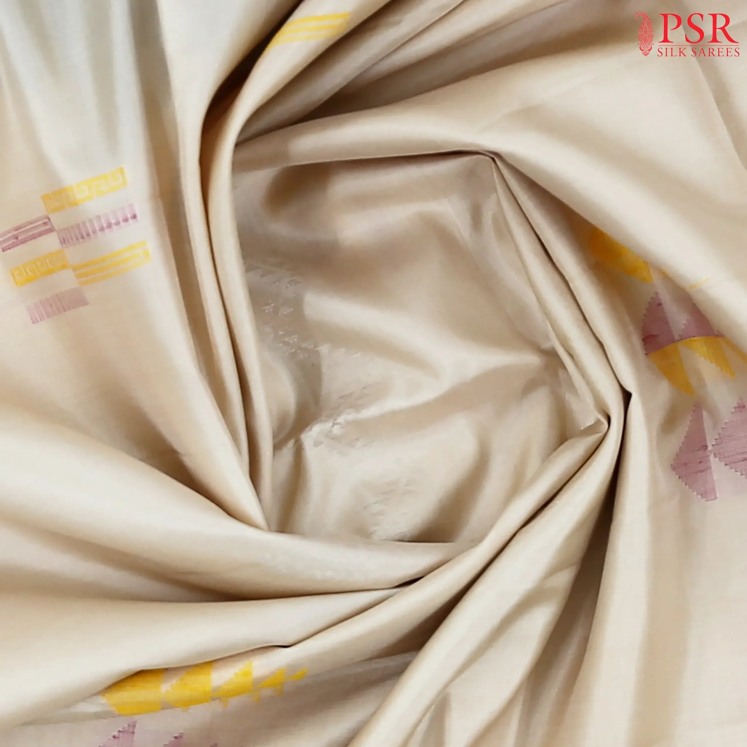 PSR Silk Sarees presents a sophisticated Parchment Beige Soft Silk Saree with an elegant Dark Grey combination, crafted for modern refinement and timeless charm.