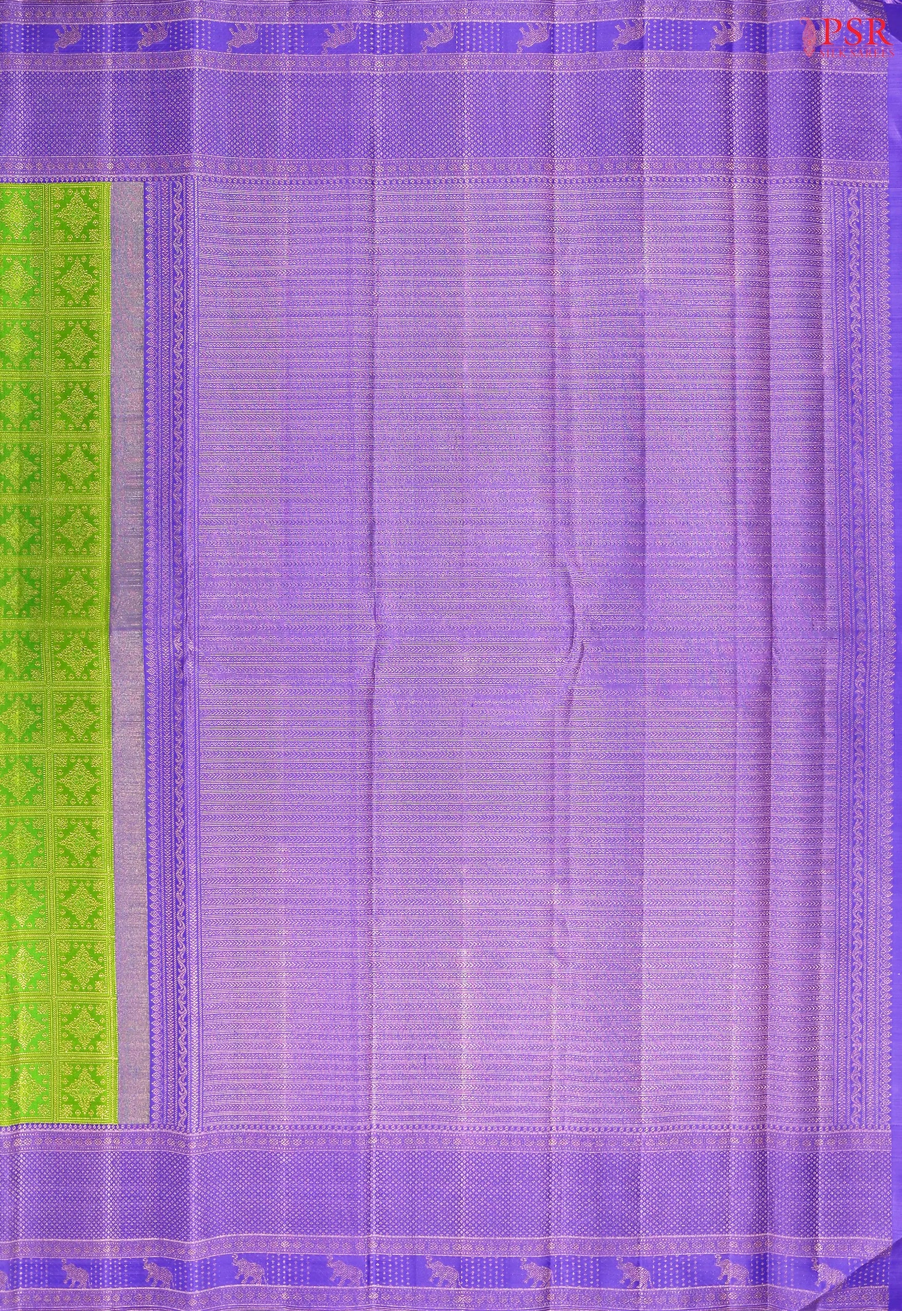 Parrot Green Bridal Kanchipuram Silk Saree with Amethyst Violet Zari Pallu – PSR Silk Sarees