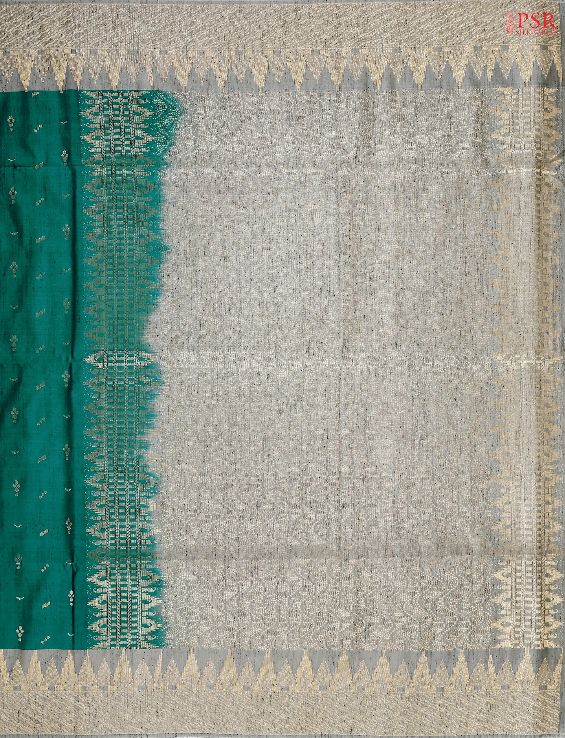 PSR Silk Sarees presents a Pine Green Jute Art Silk Saree with combination of Grey color.