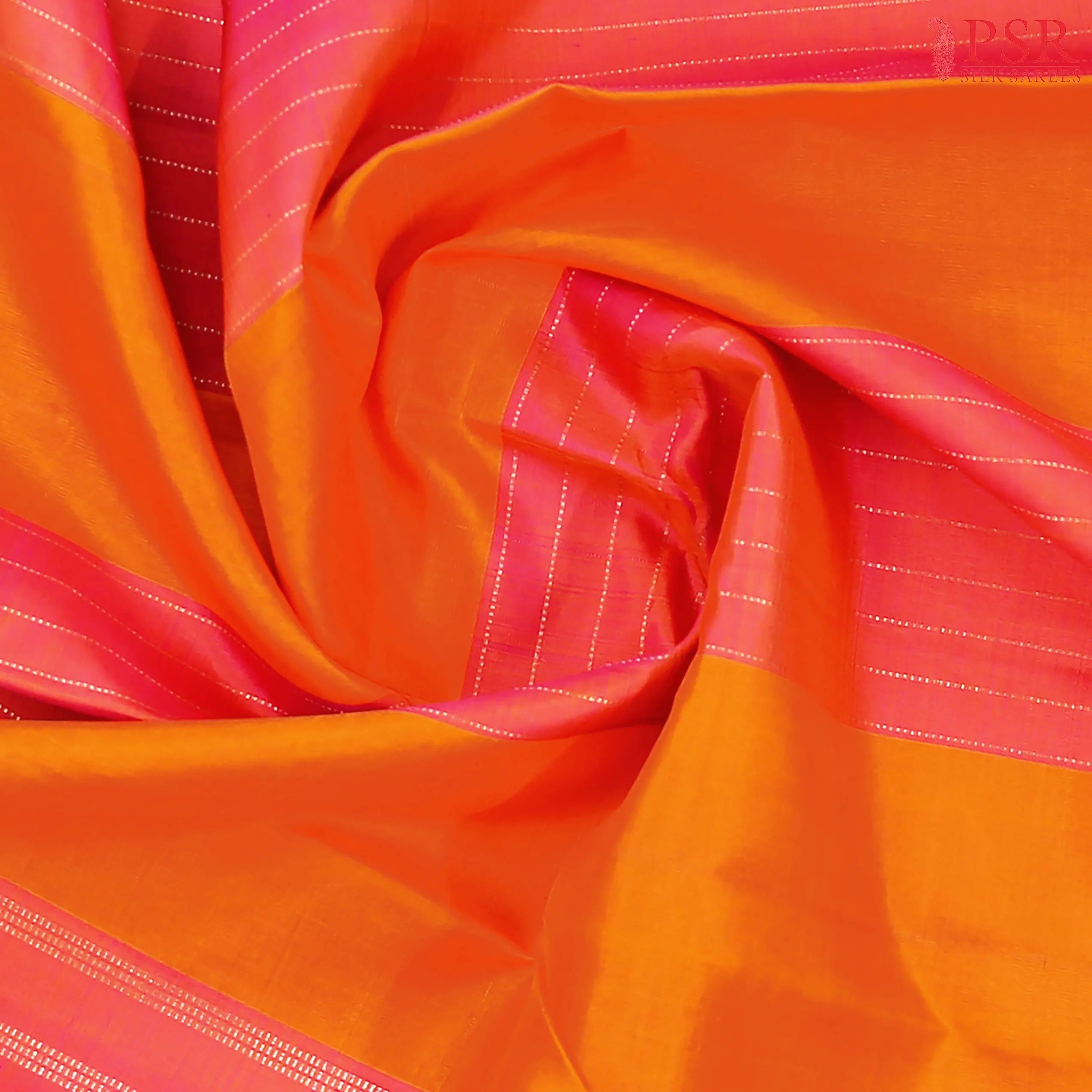 Saffron & Sunkist Pink Kanchipuram Silk Saree