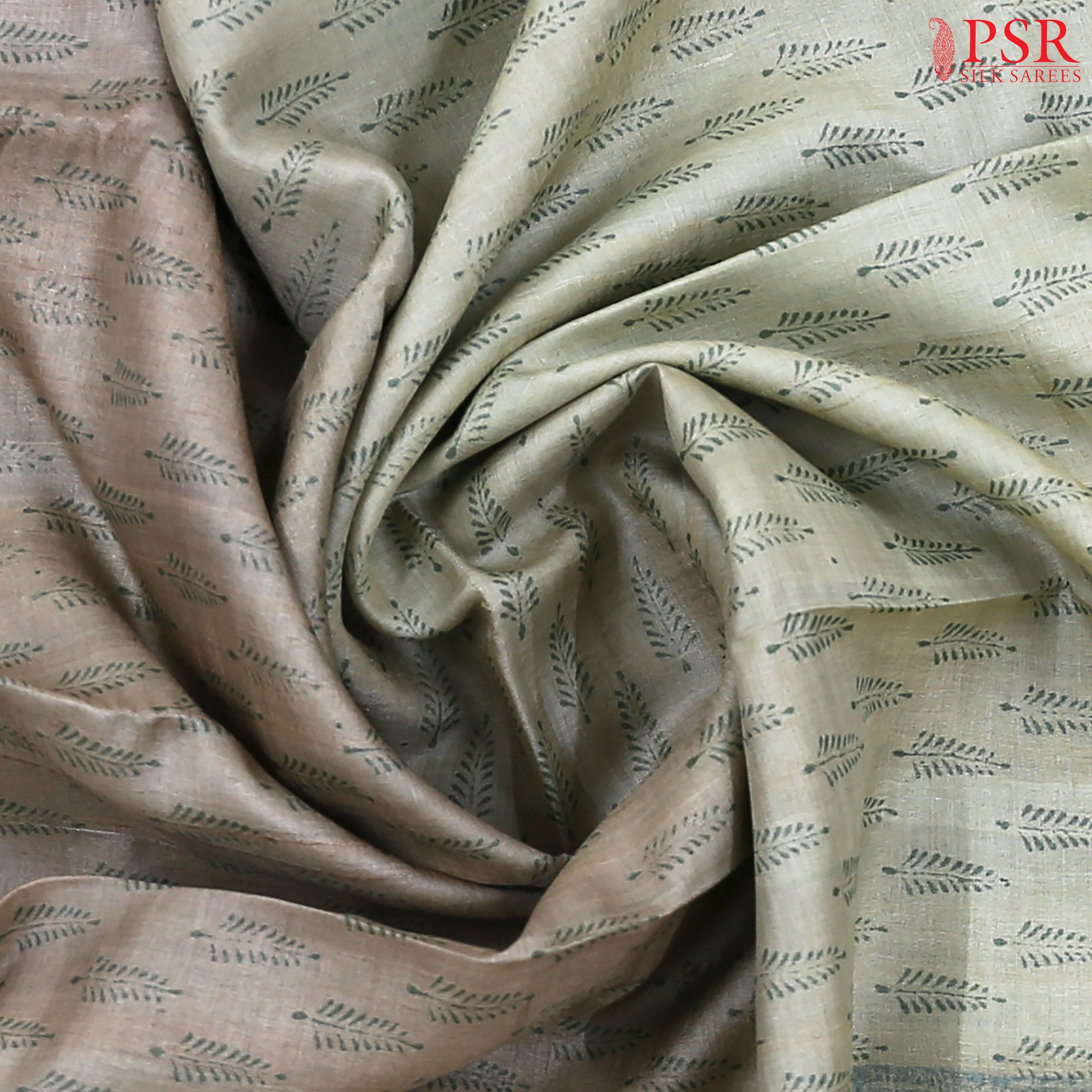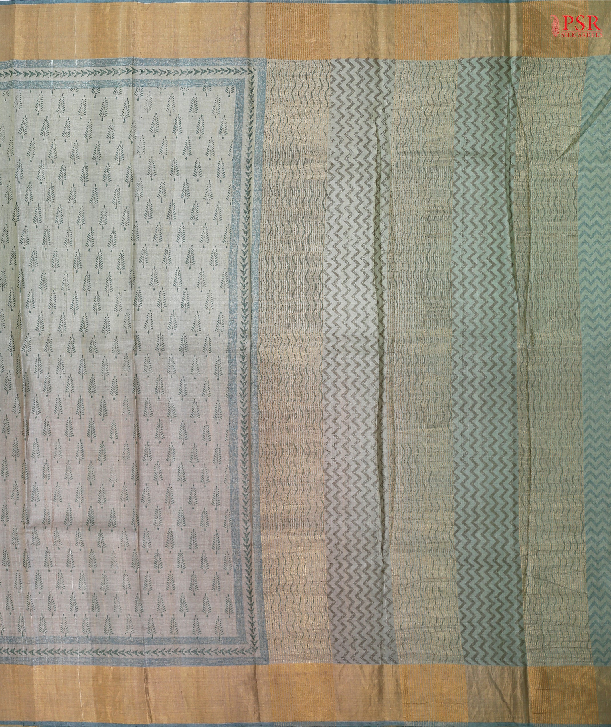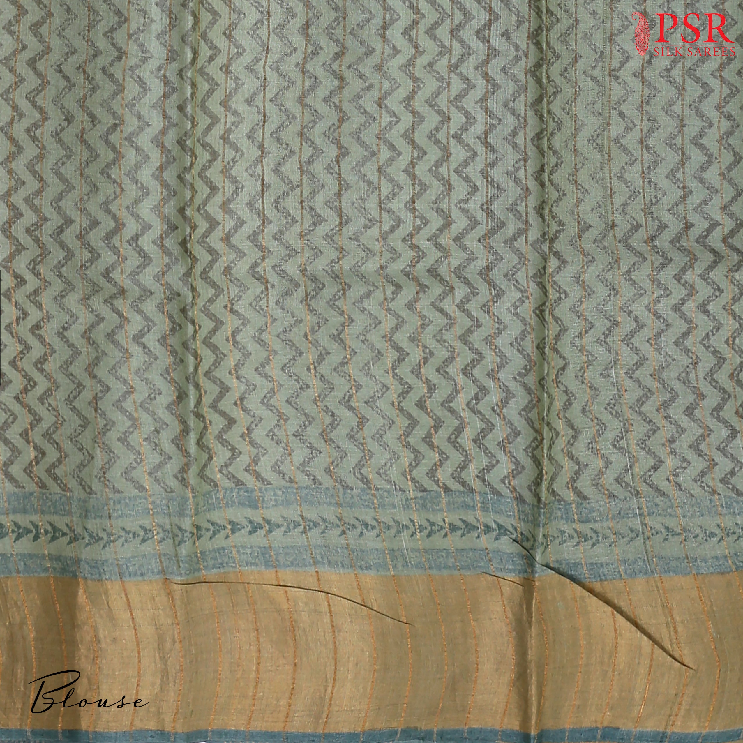 PSR Silk Sarees presents a Sage Green & Grey Kadhi Tussar Silk Saree—an elegant blend of earthy tones and classic artistry.