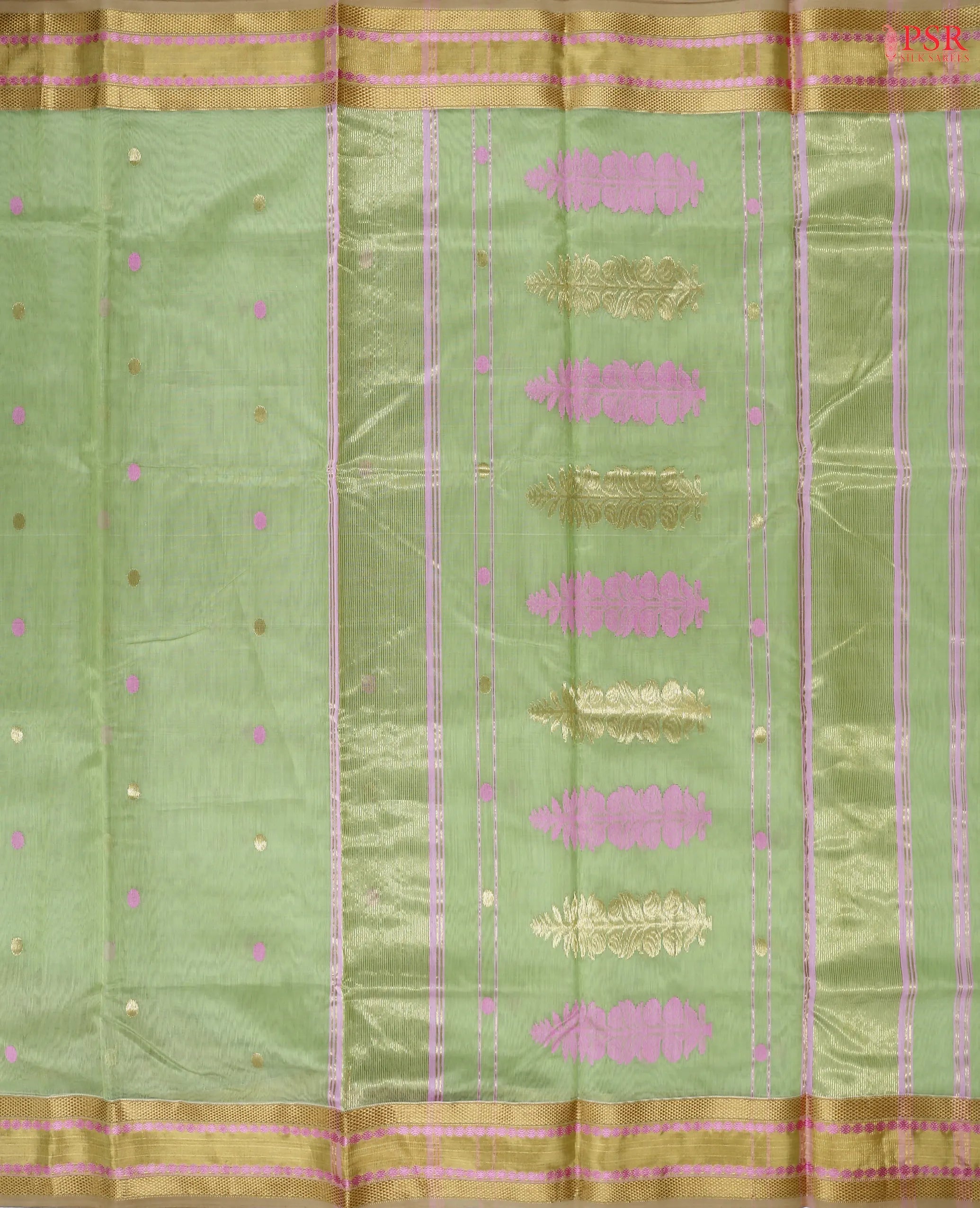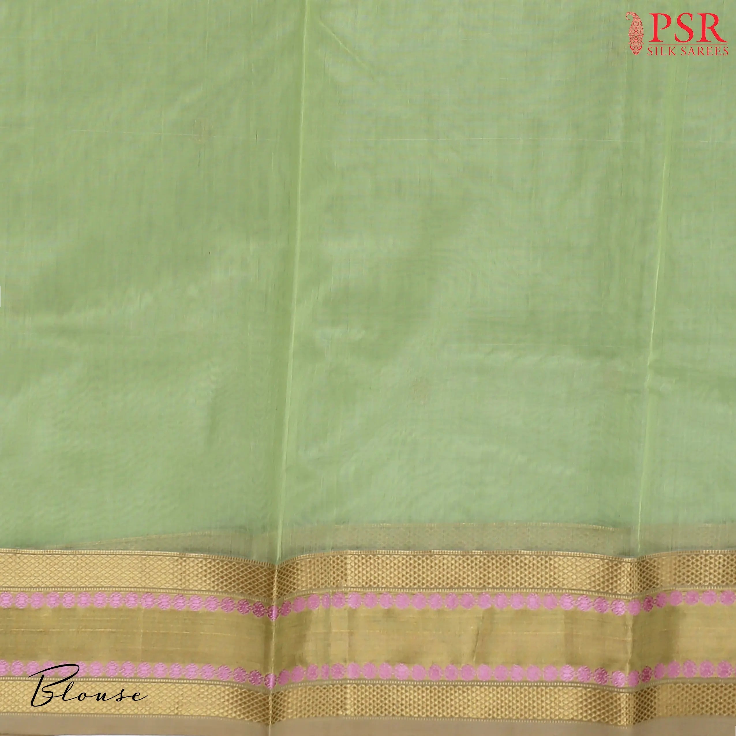 PSR Silks presents a Sage Green colored Maheshwari Silk Cotton saree.