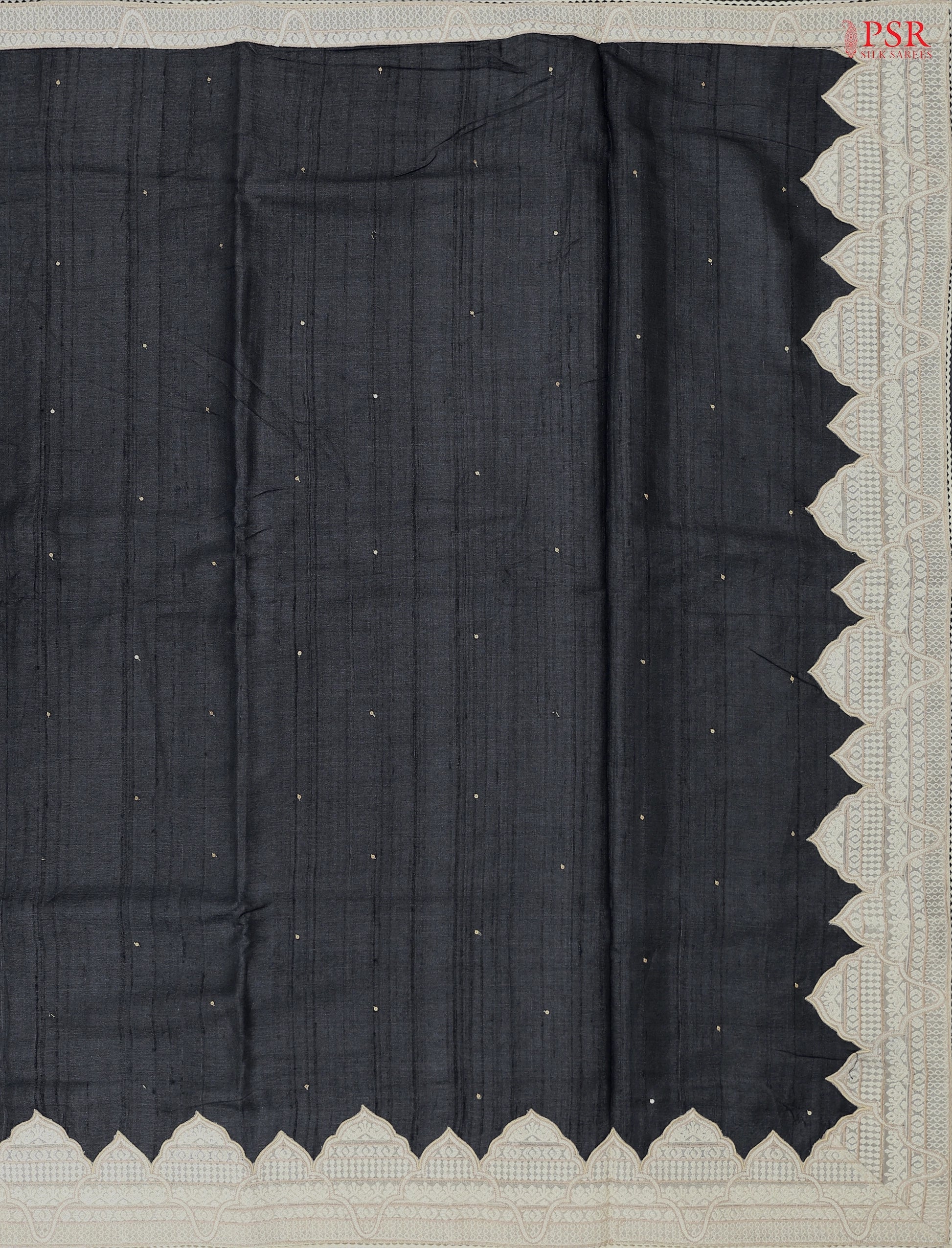 Drape in bold sophistication with PSR Silk Sarees' Shadow Black Kadhi Tussar Silk Saree.