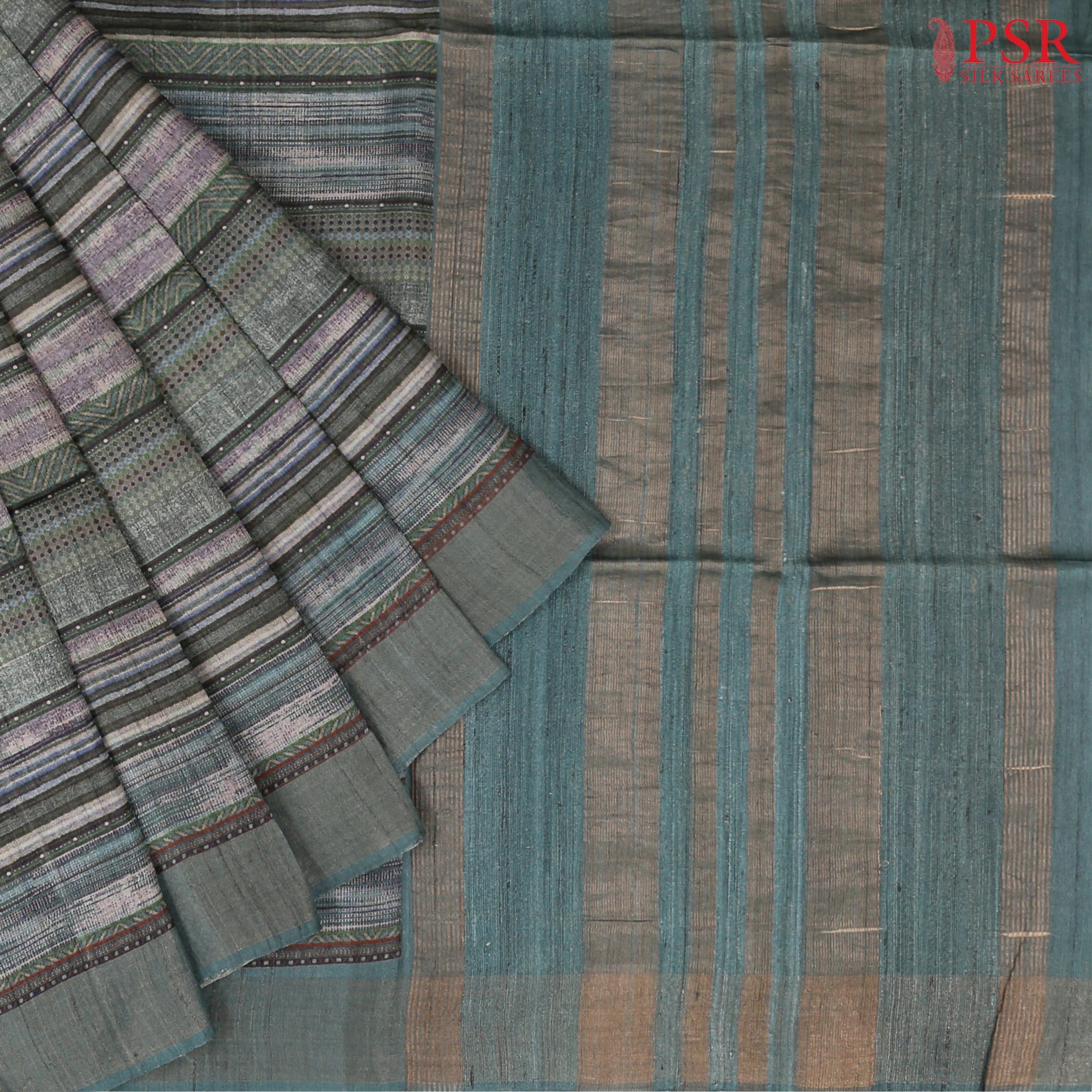 Bring bold elegance to life with PSR Silk Sarees' Teal Kadhi Tussar Silk Saree.