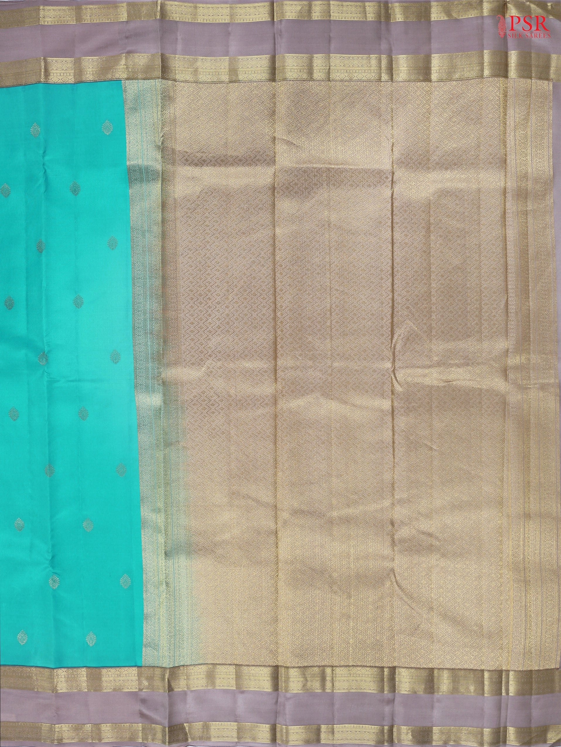 PSR Silk Sarees presents a Turquoise Blue colored Fancy Kanchipuram Silk with combination of Rosy Beige.