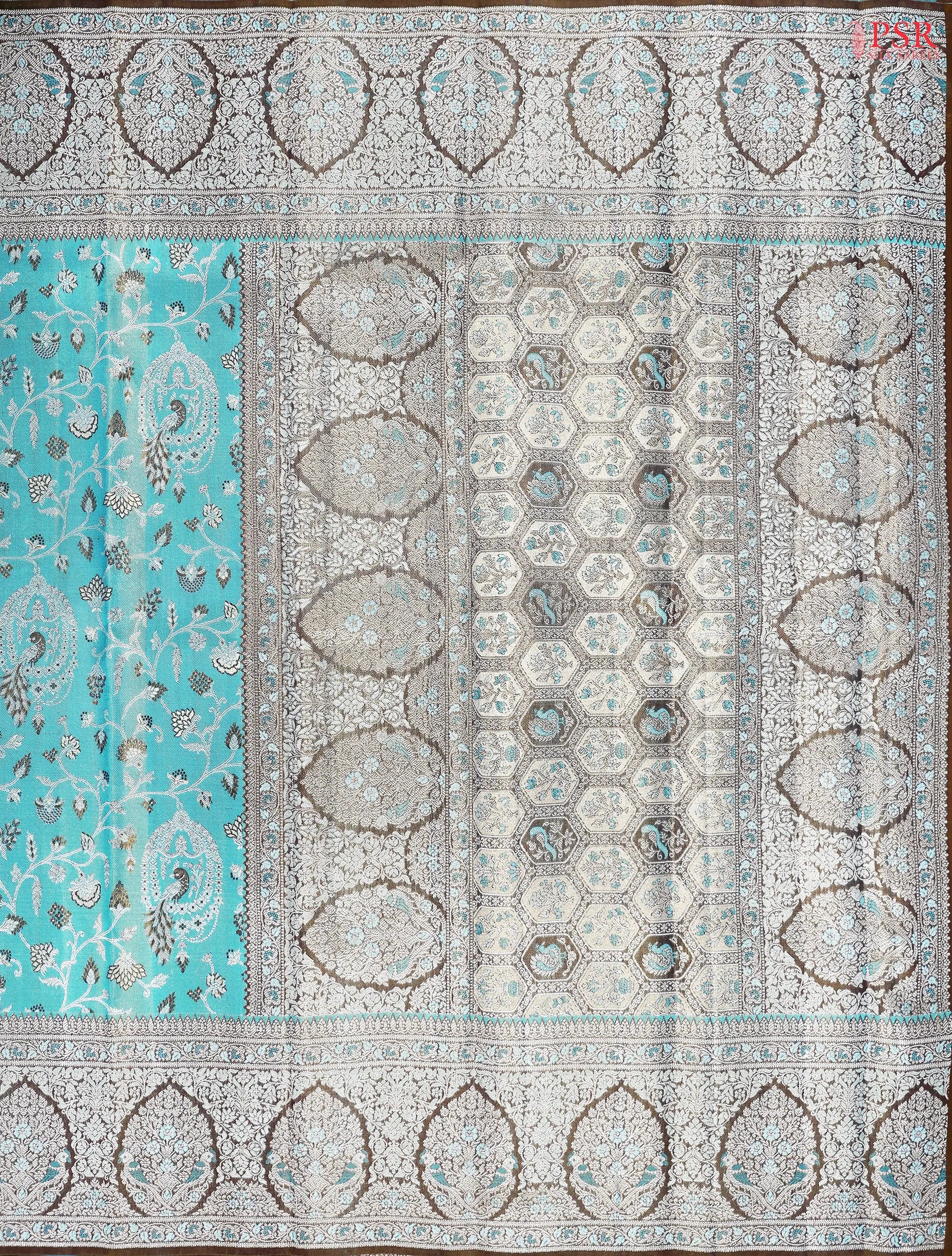 PSR Silk Sarees presents a Turquoise Blue Bridal Kanchipuram Jacquard Tissue Silk Saree!