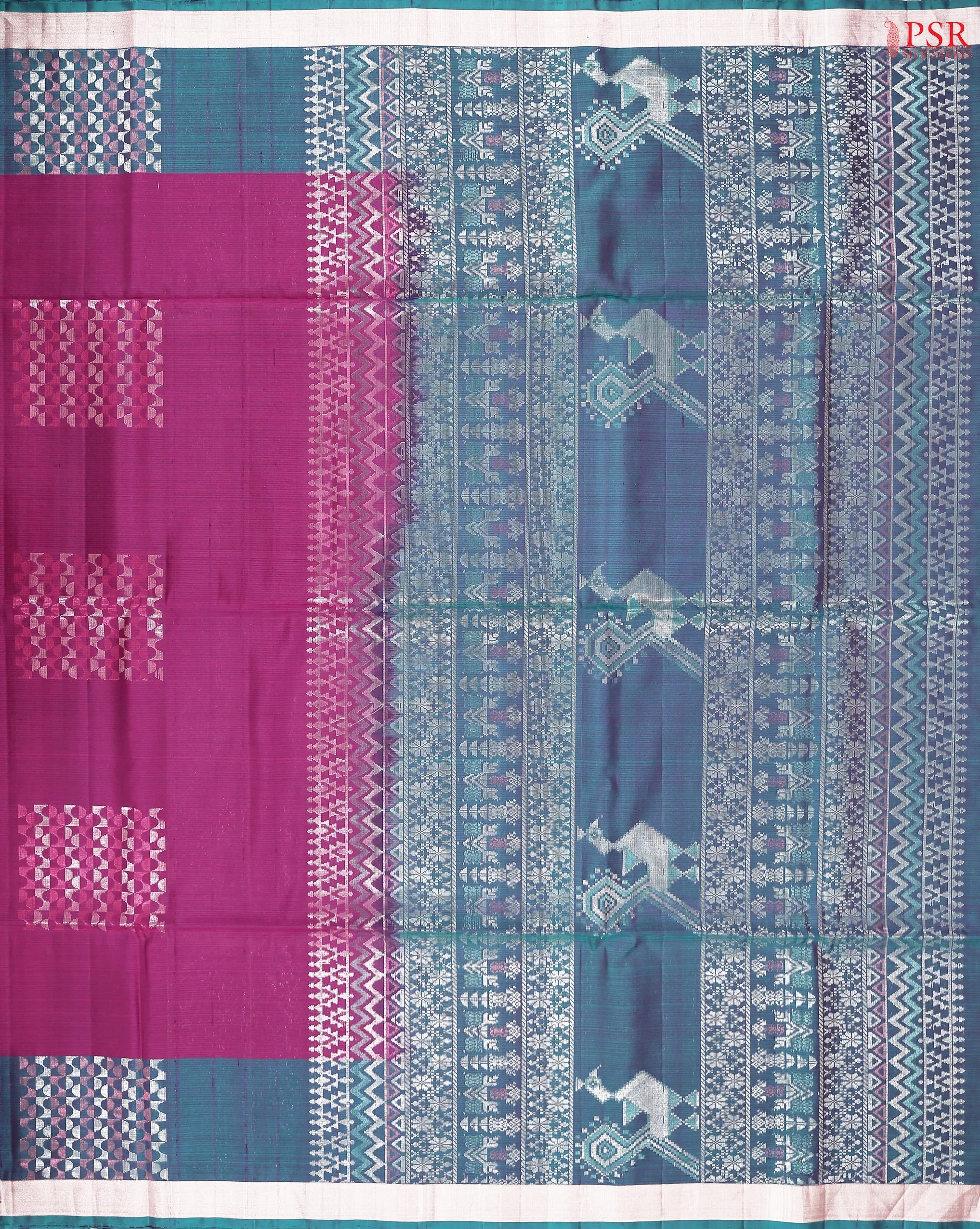 PSR Silk Sarees presents a magnificent Tyrian Purple Soft Silk Saree with a striking combination of Teal color.