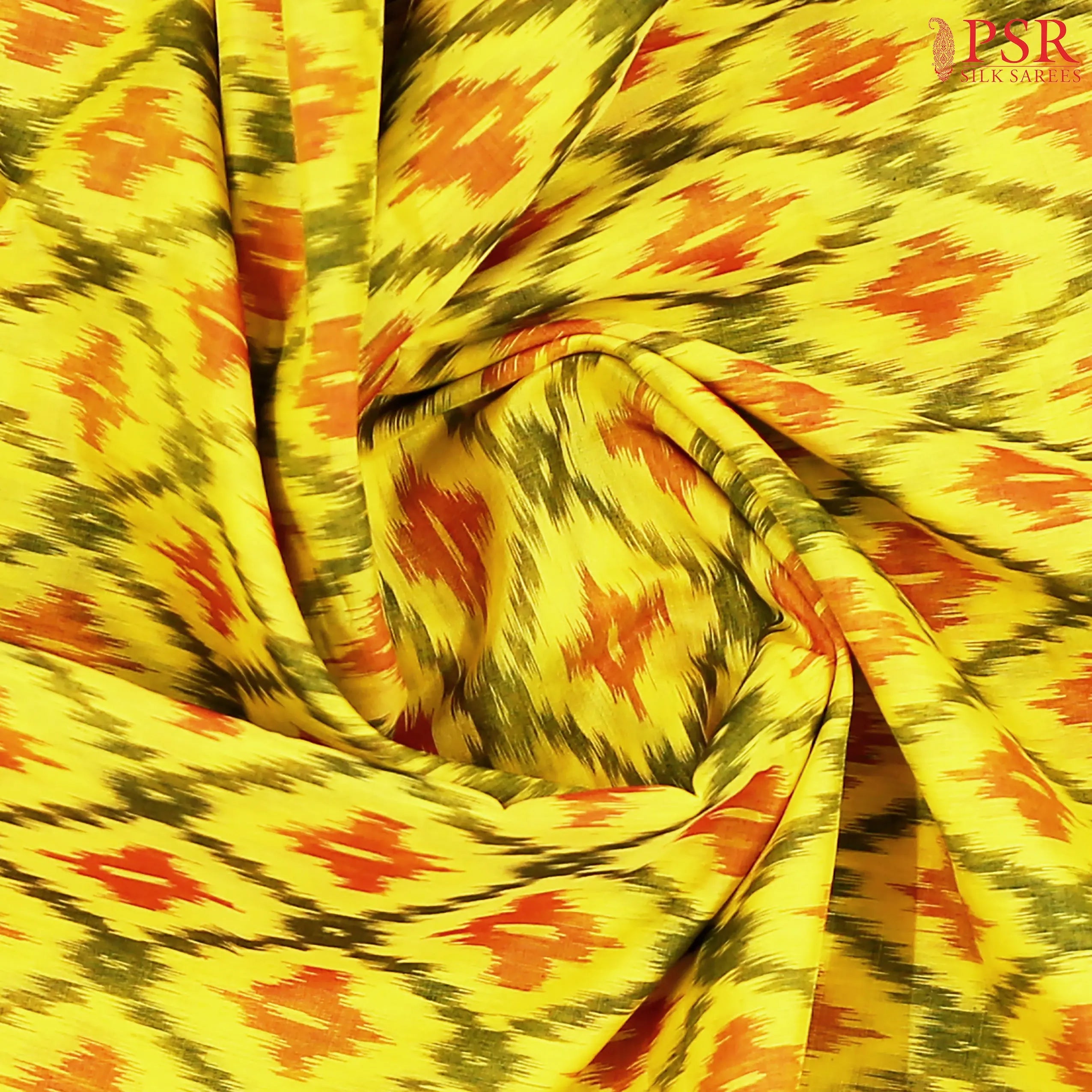 PSR Silks Presents: Yellow & Magenta Pink Patola Pochampally Silk Cotton Saree – A Fusion of Tradition & Elegance