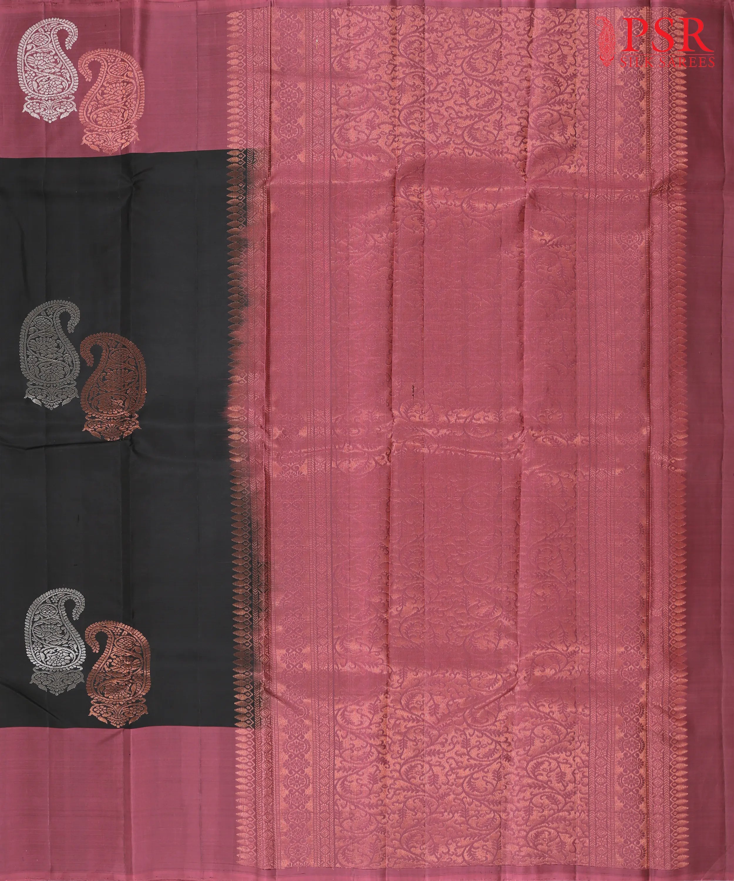 PSR Silk Sarees presents a Black colored Soft Silk saree with combination of Dark Onion Pink color.
