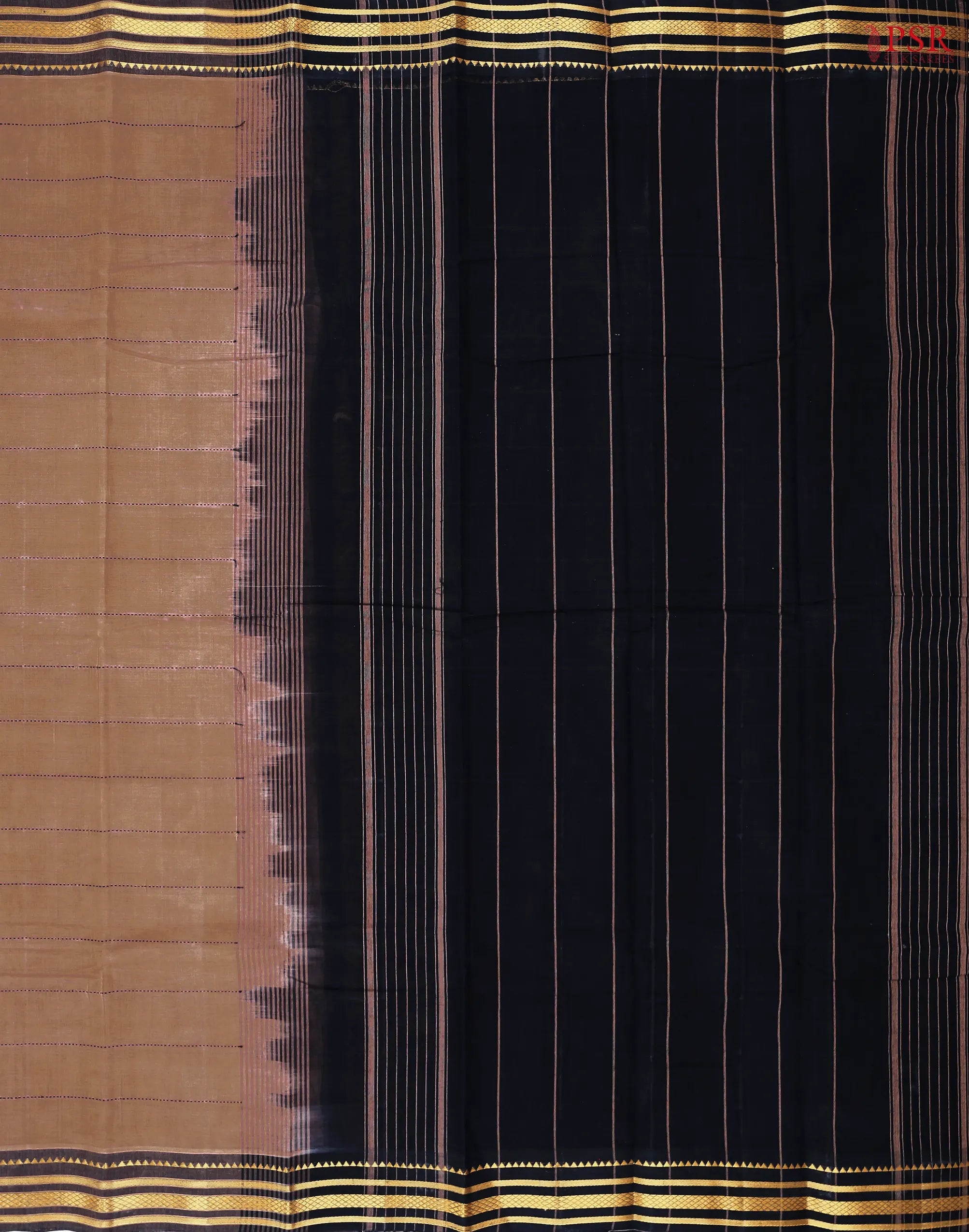PSR Silk Sarees presents a Caramel Brown Kanchi cotton saree with combination of Black color.