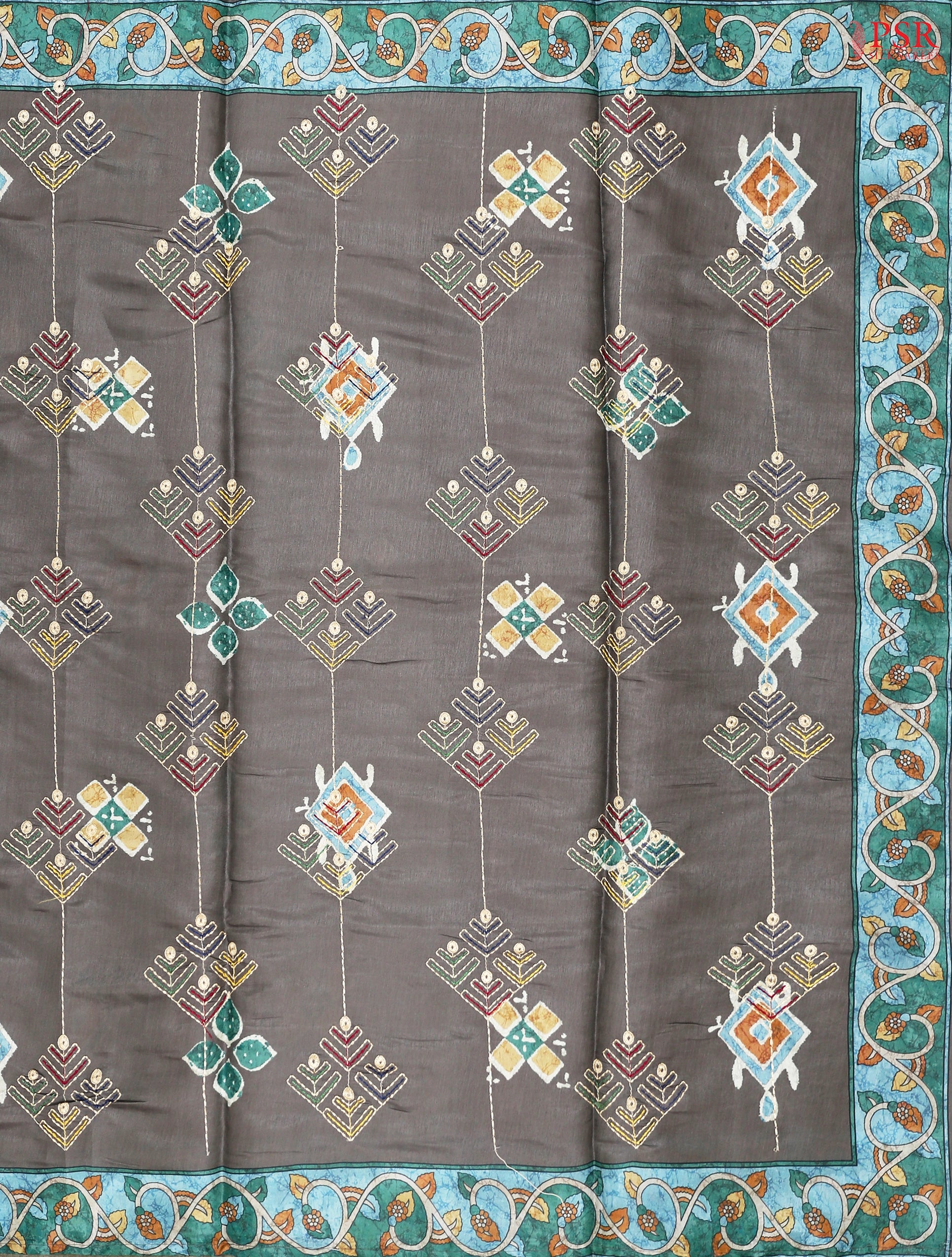 PSR Silk Sarees presents a Dark Fossil Grey colored Semi Tussar saree.