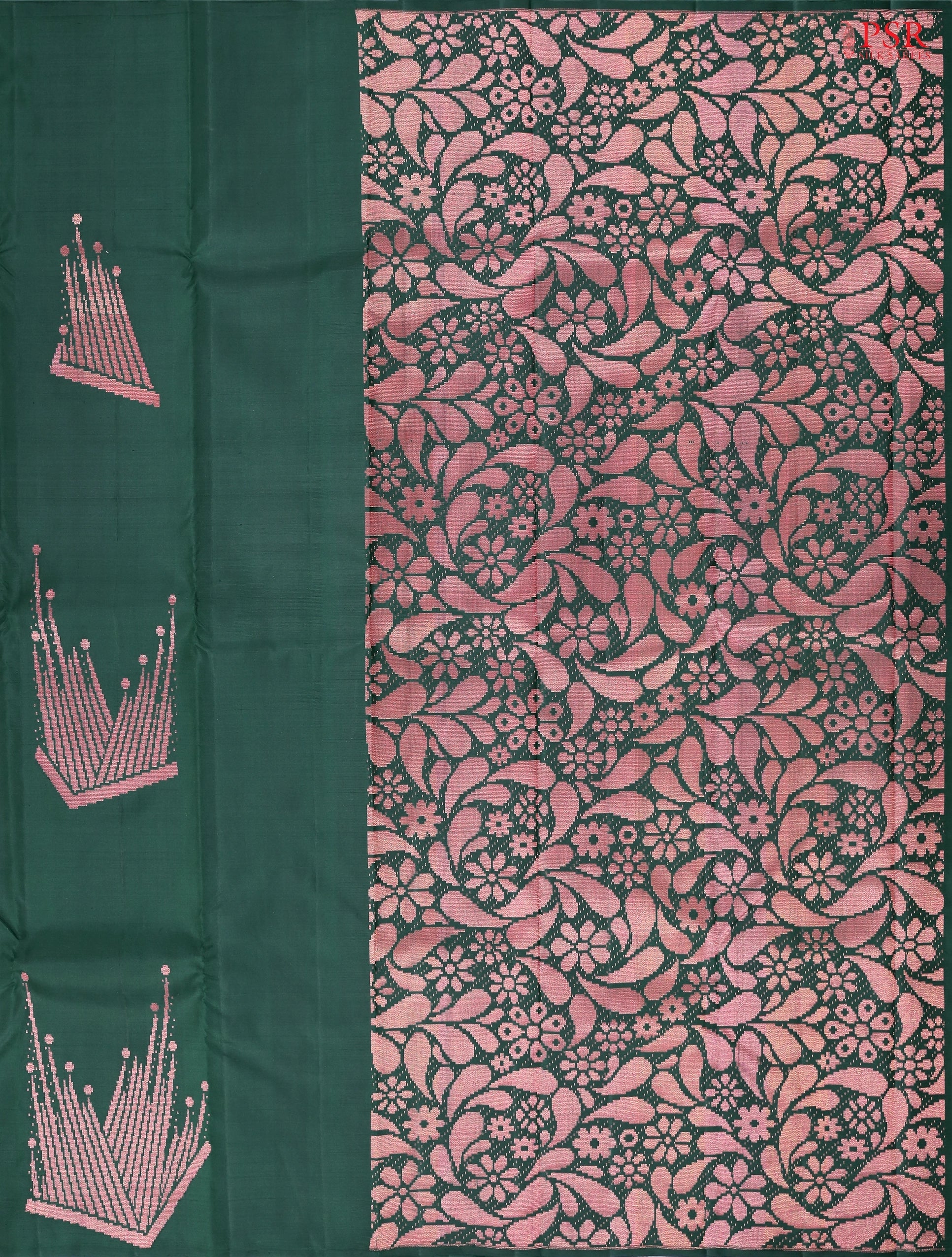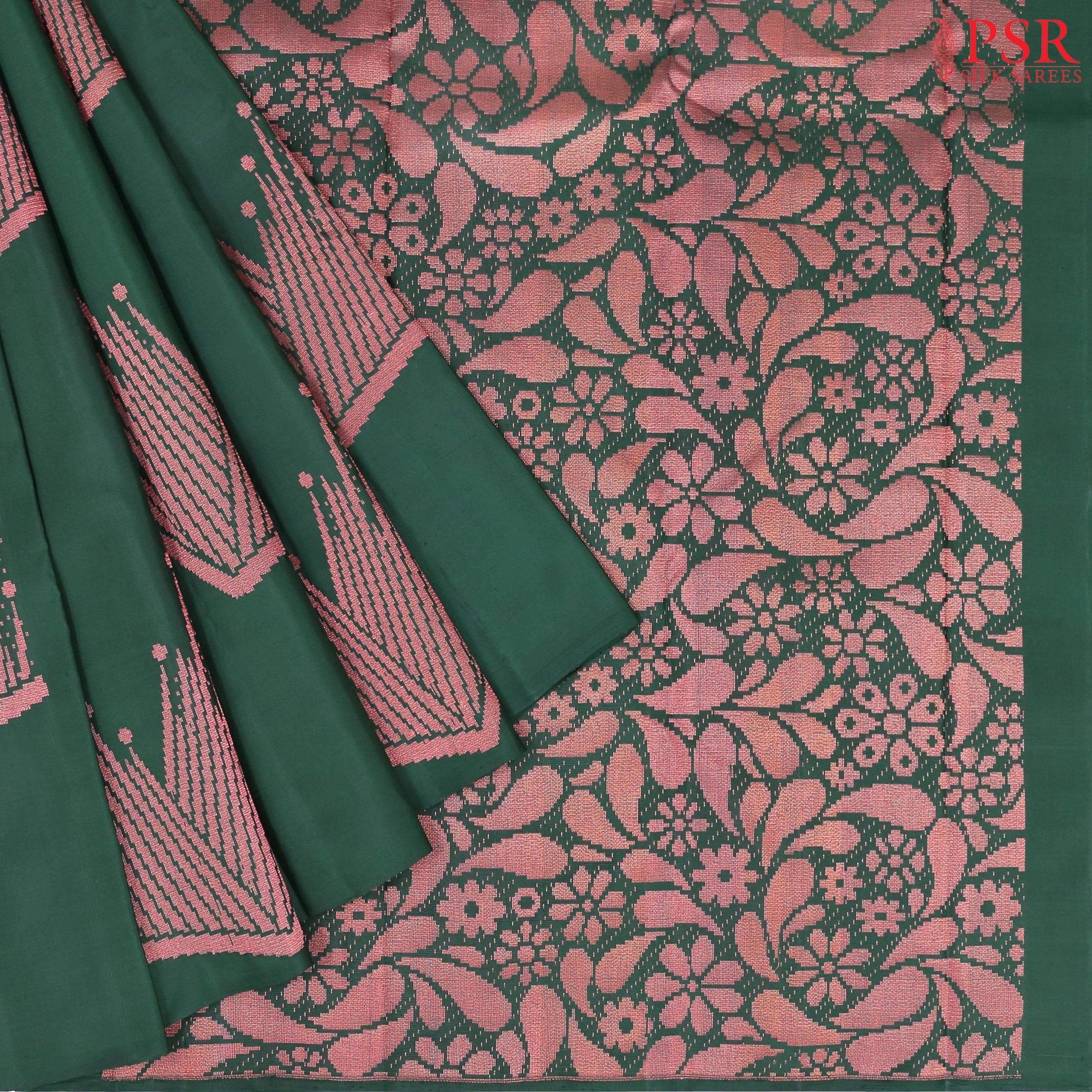 Dark Green Smartika Kanjivaram Silk Saree with designer zari motifs – PSR Silk Sarees