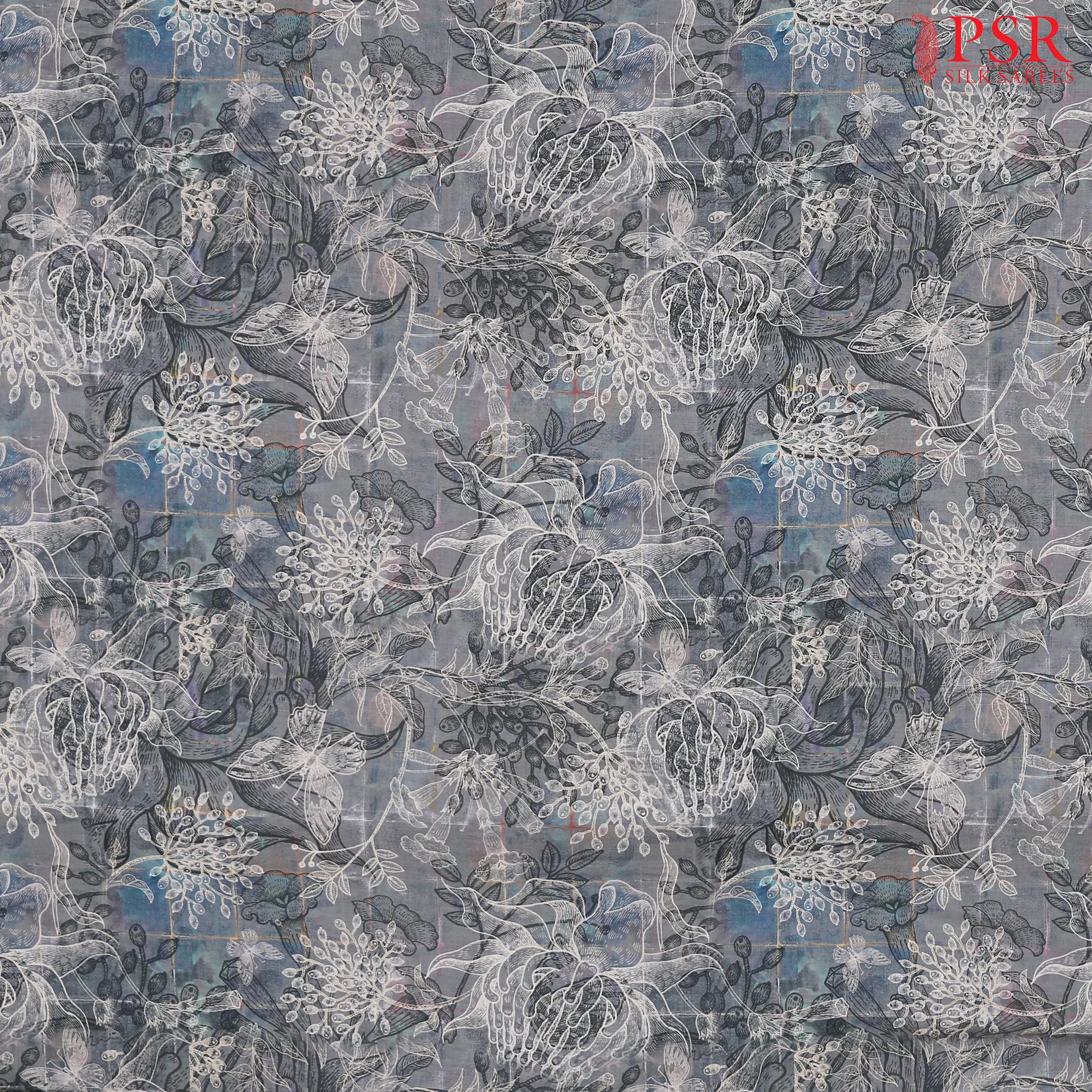 PSR Silk Sarees presents a Dark Grey Linen floral printed Running Material